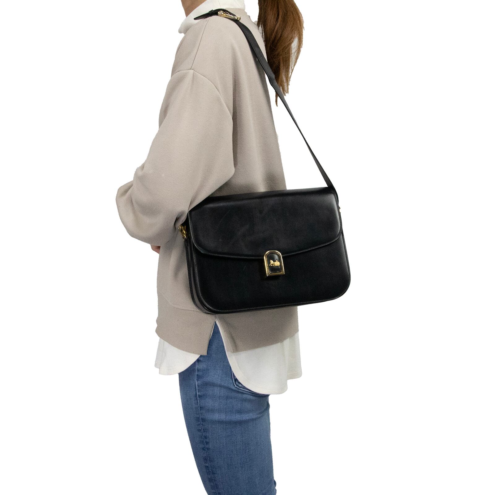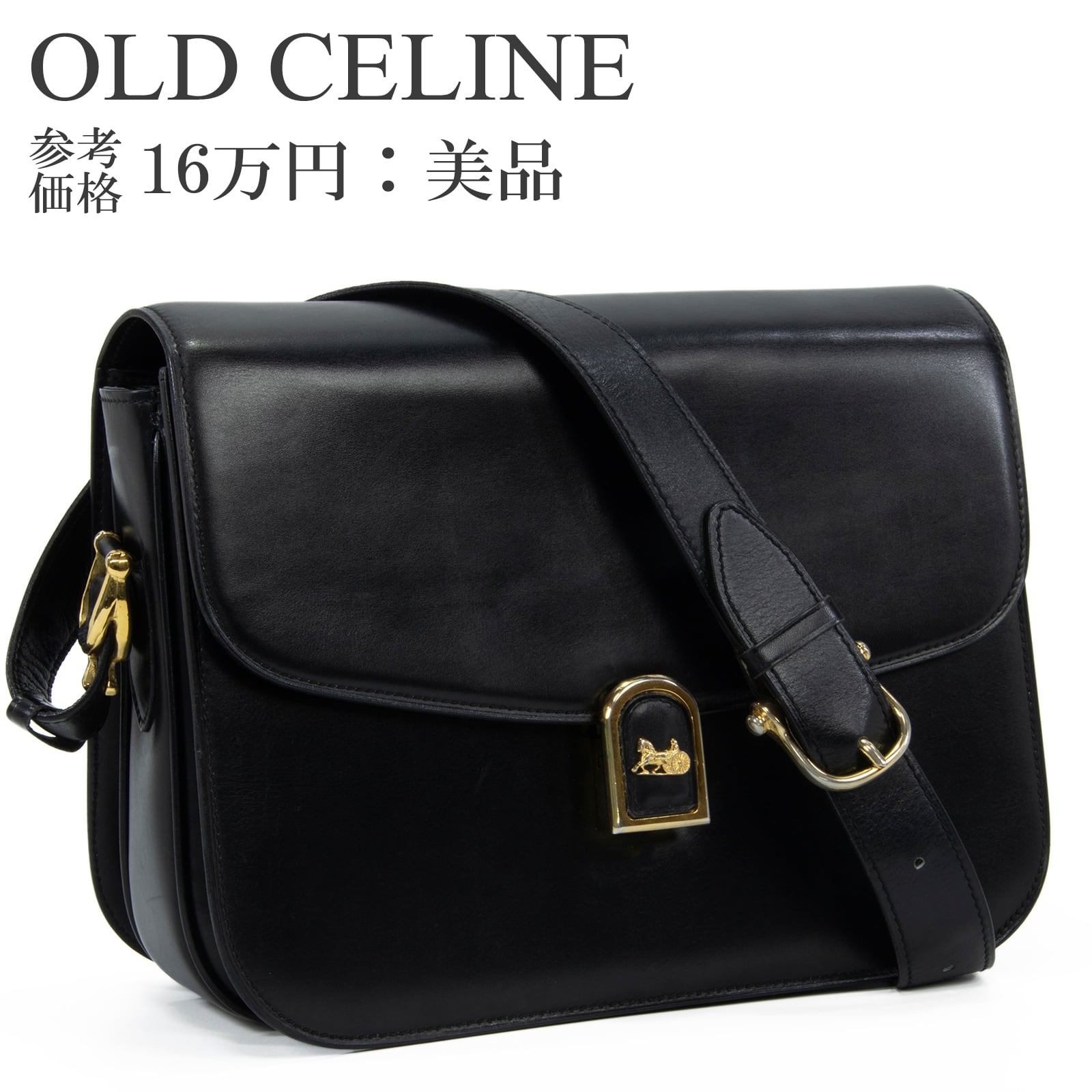 本物 送料無料 オールドセリーヌ ショルダーバッグ レディース 黒 ブラック 珍しい ヴィンテージ 馬車 本革 レザー 綺麗 鞄 バック A876