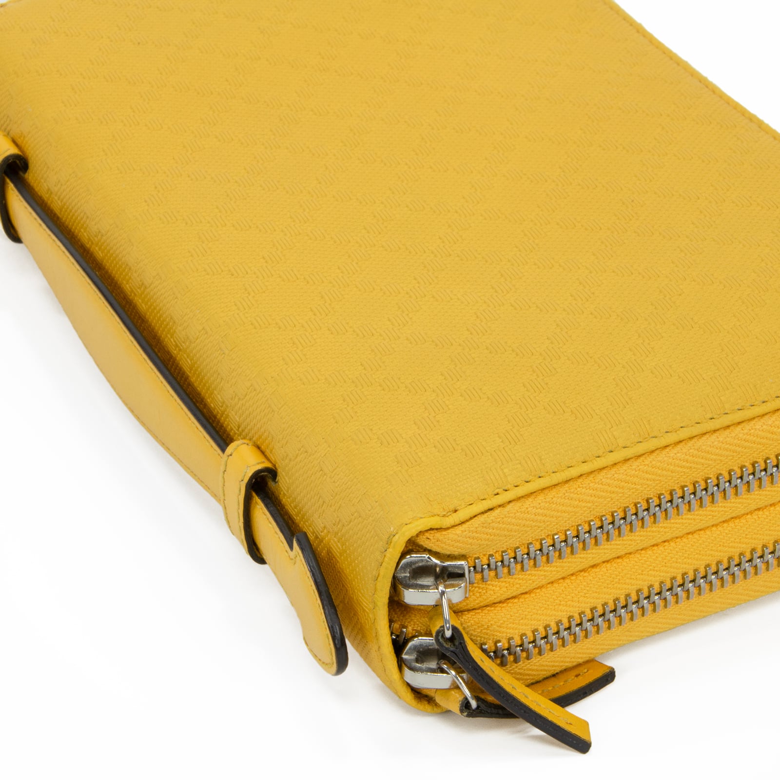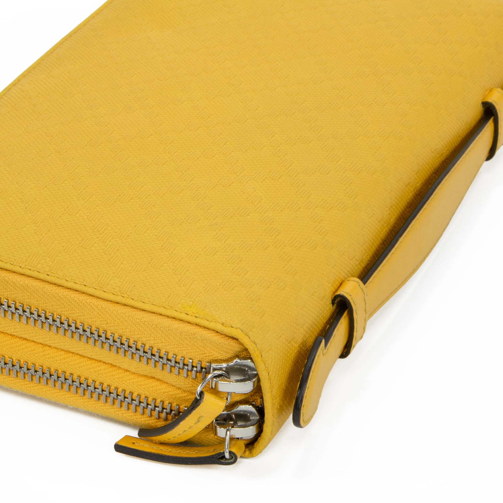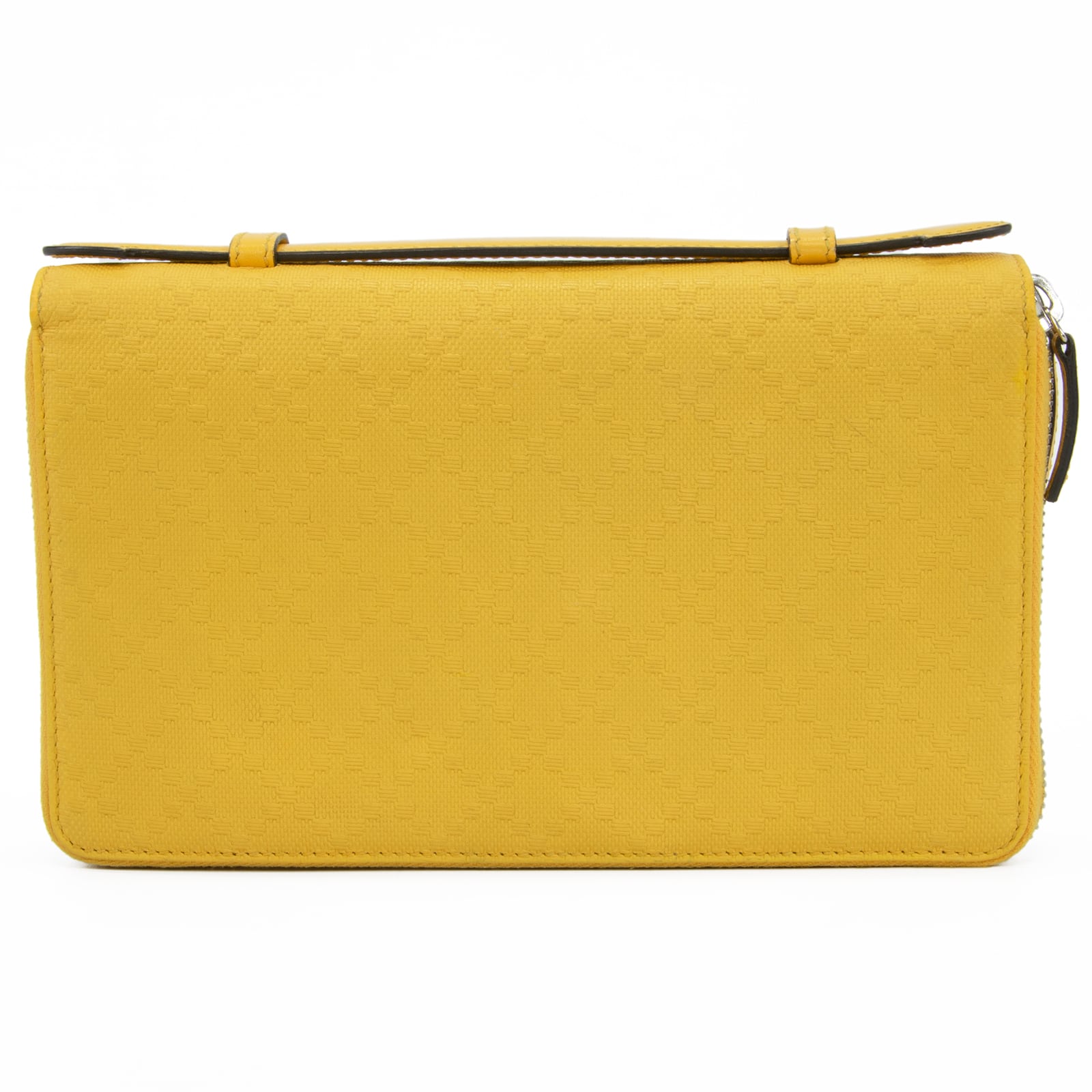 本物 送料無料 グッチ 長財布 ダブルファスナー トラベルケース メンズ レディース ディアマンテ 黄色 イエロー レア ハンドル 大きい H086