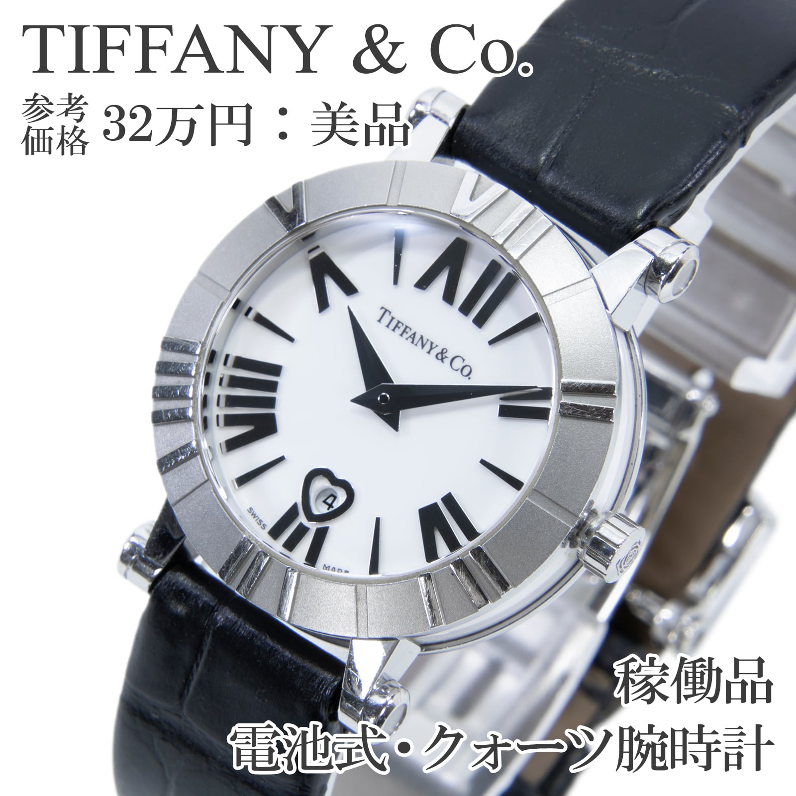 稼働品 送料無料 ティファニー 腕時計 クォーツ 2針 レディース アトラスハートデイト 白 ロゴ ハートマーク かわいい ハイブランド X502