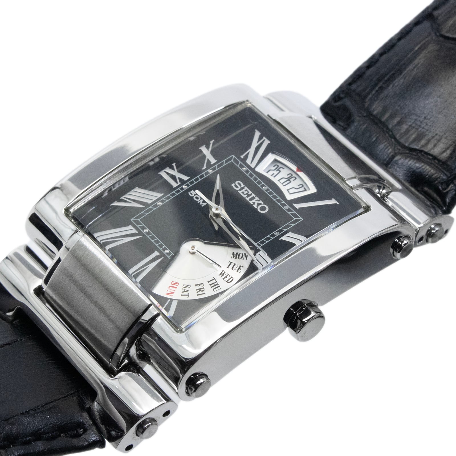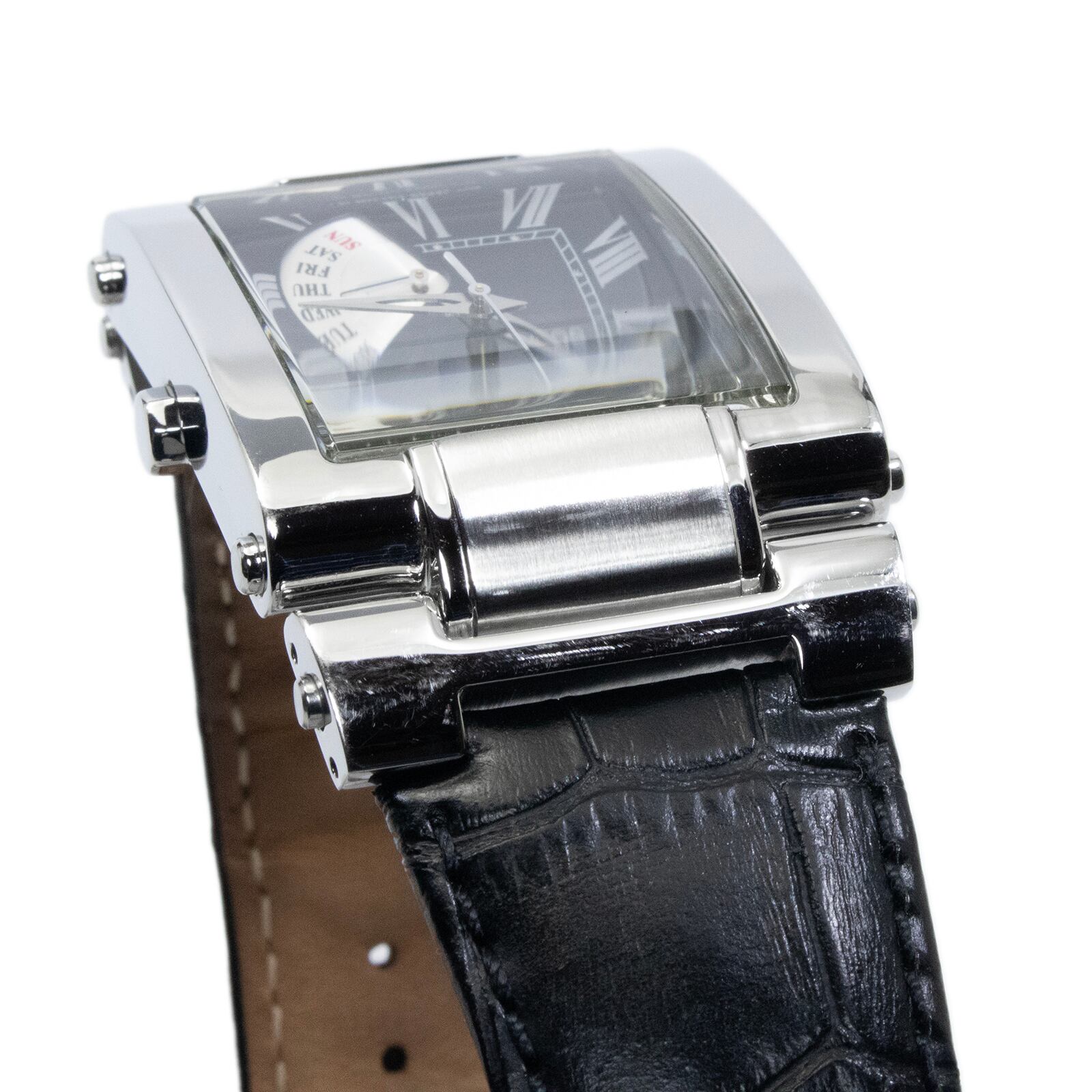 ケース・バンドの素材:ステンレススチール・クロコダイル型押しカーフレザー