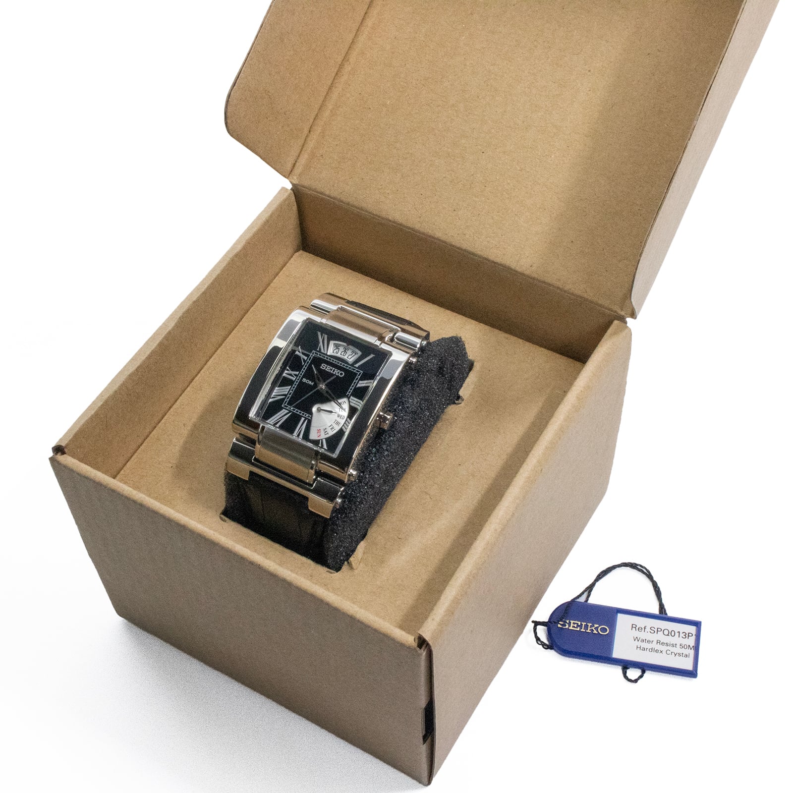 稼働品 送料無料 セイコー 腕時計 クォーツ 3針 メンズ 5Y63-0AC0 SPQ013P1 黒 レクタンギュラー ロゴ マーク ブランド 逆輸入モデル X504