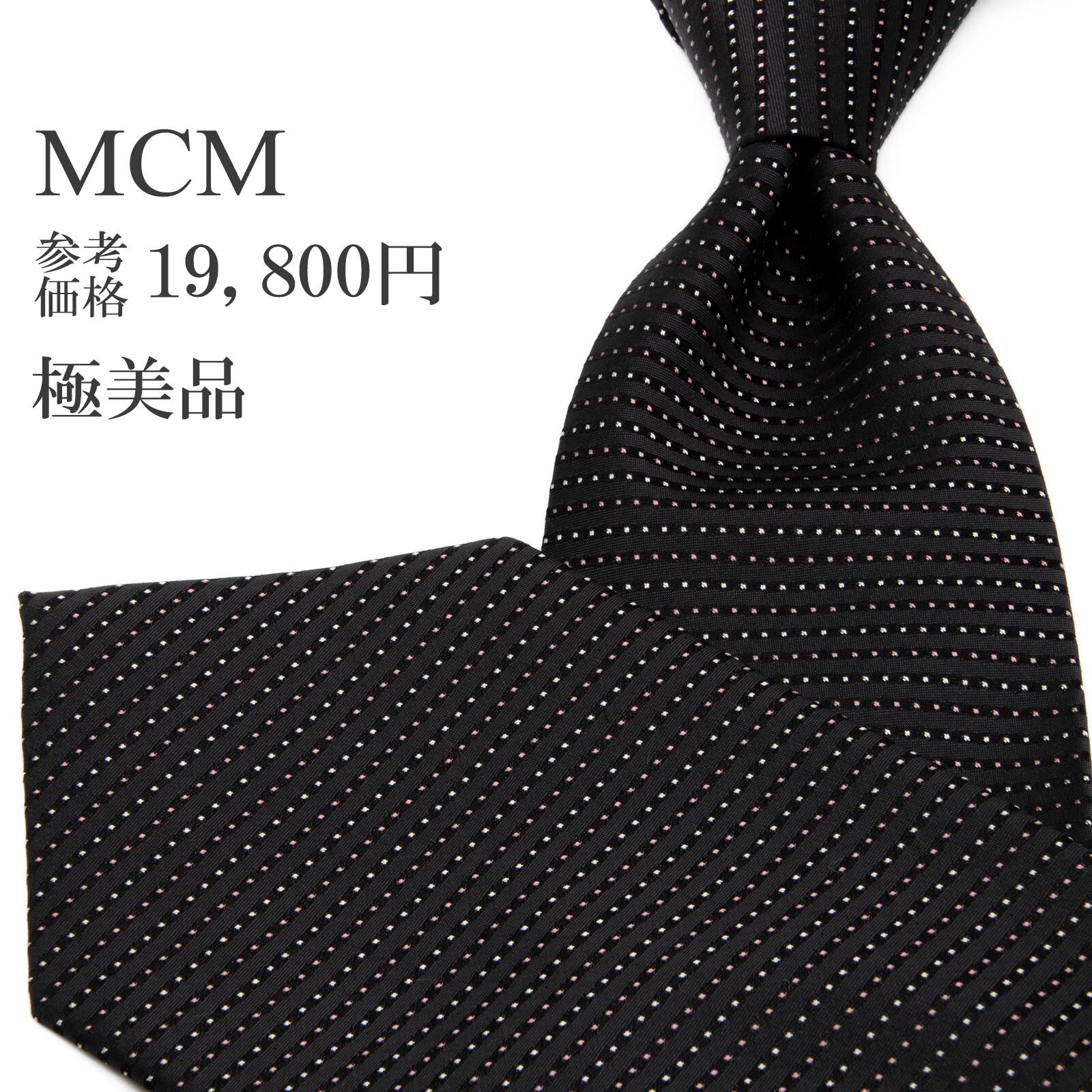 送料無料 MCM ネクタイ レギュラータイ ジャガードタイ シルク 黒 ブラック ピンク 白 ストライプ ドット シンプル ハイブランド 綺麗 P578
