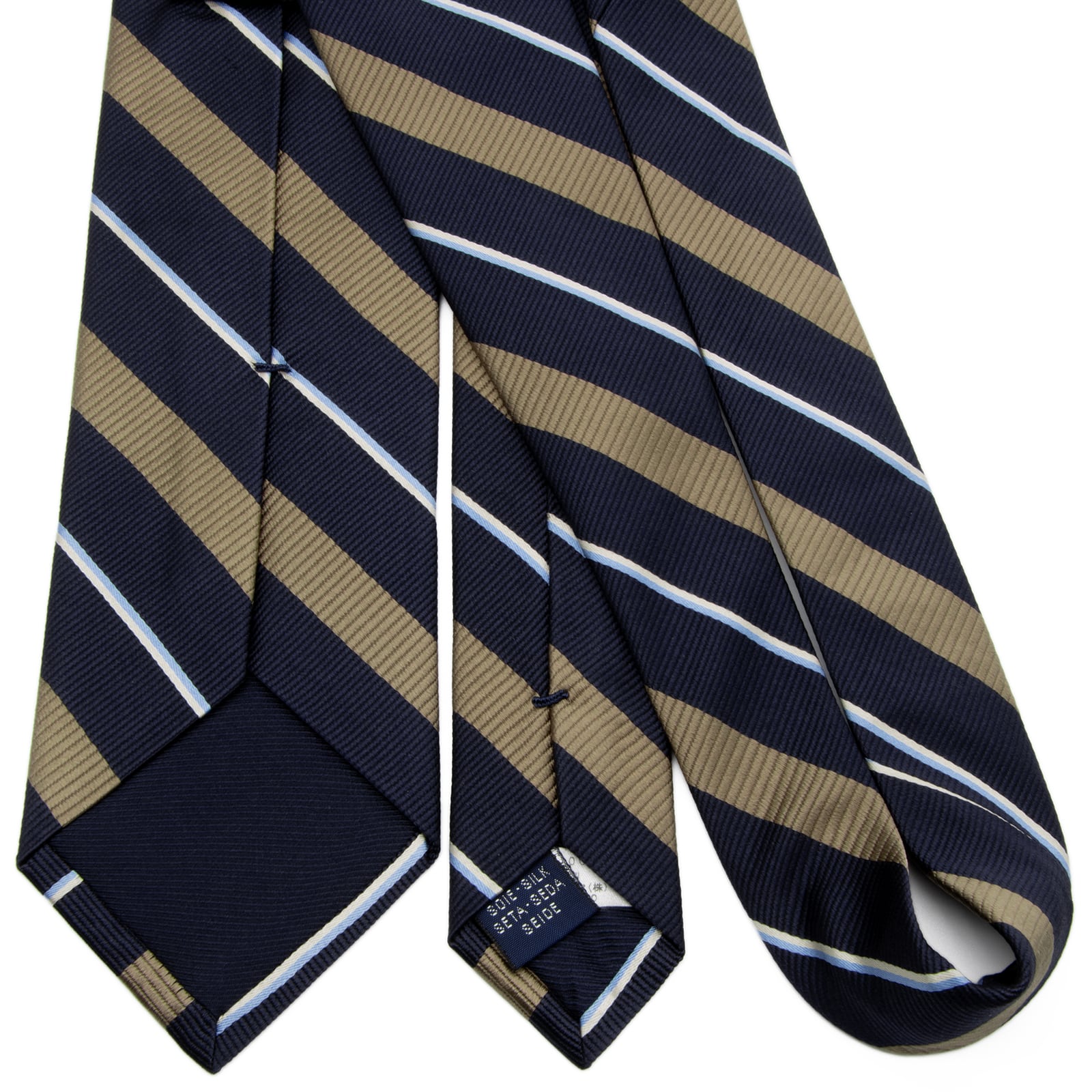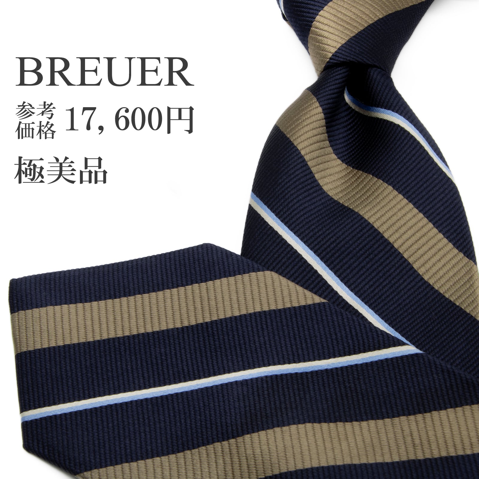 送料無料 ブリューワー ネクタイ レギュラータイ ジャガード ネイビーブルー シャンパンゴールド 水色 白 ストライプ ハイブランド P582