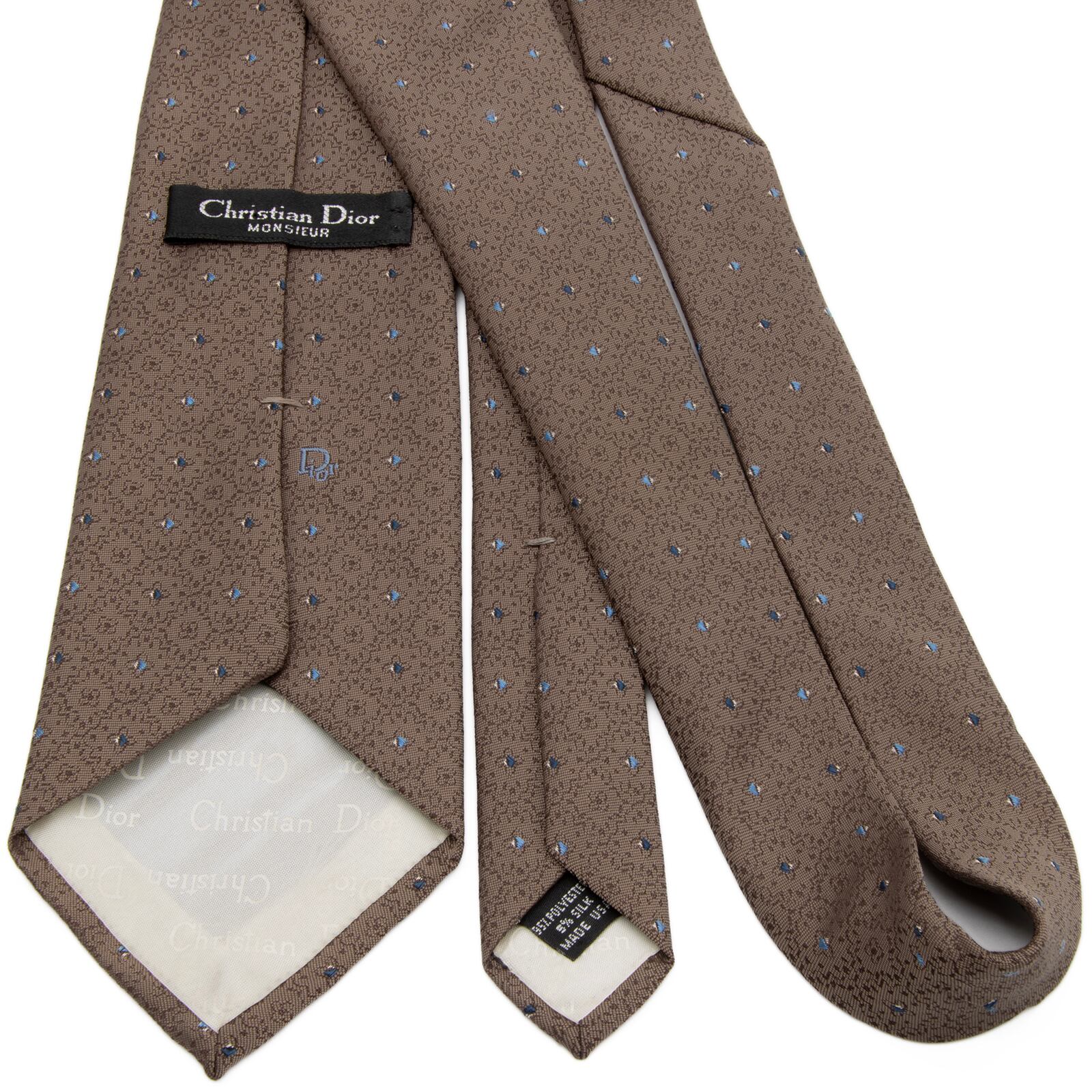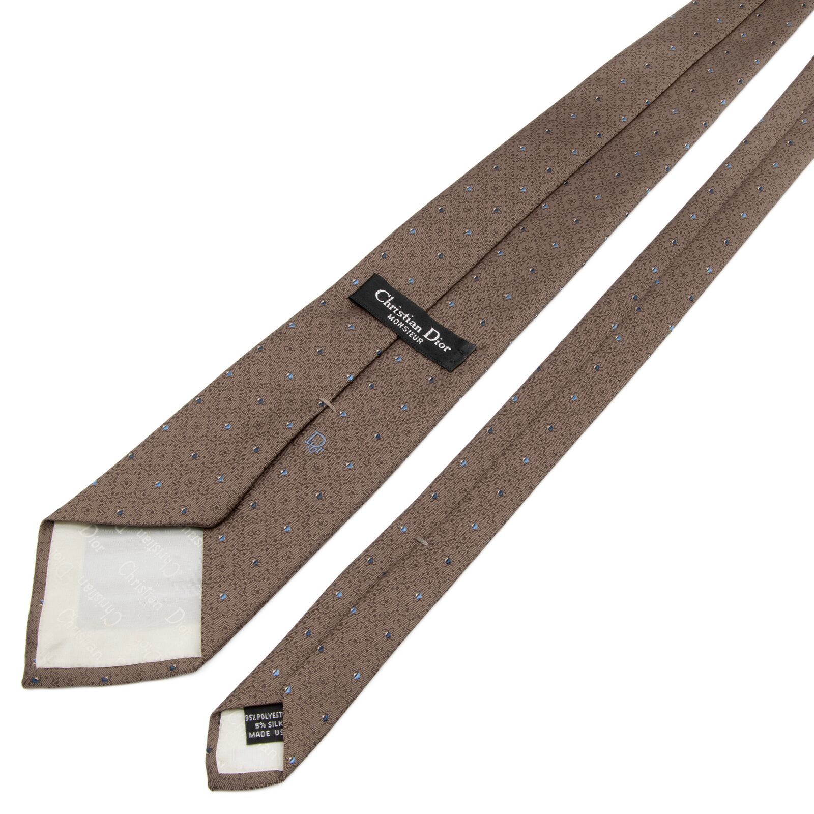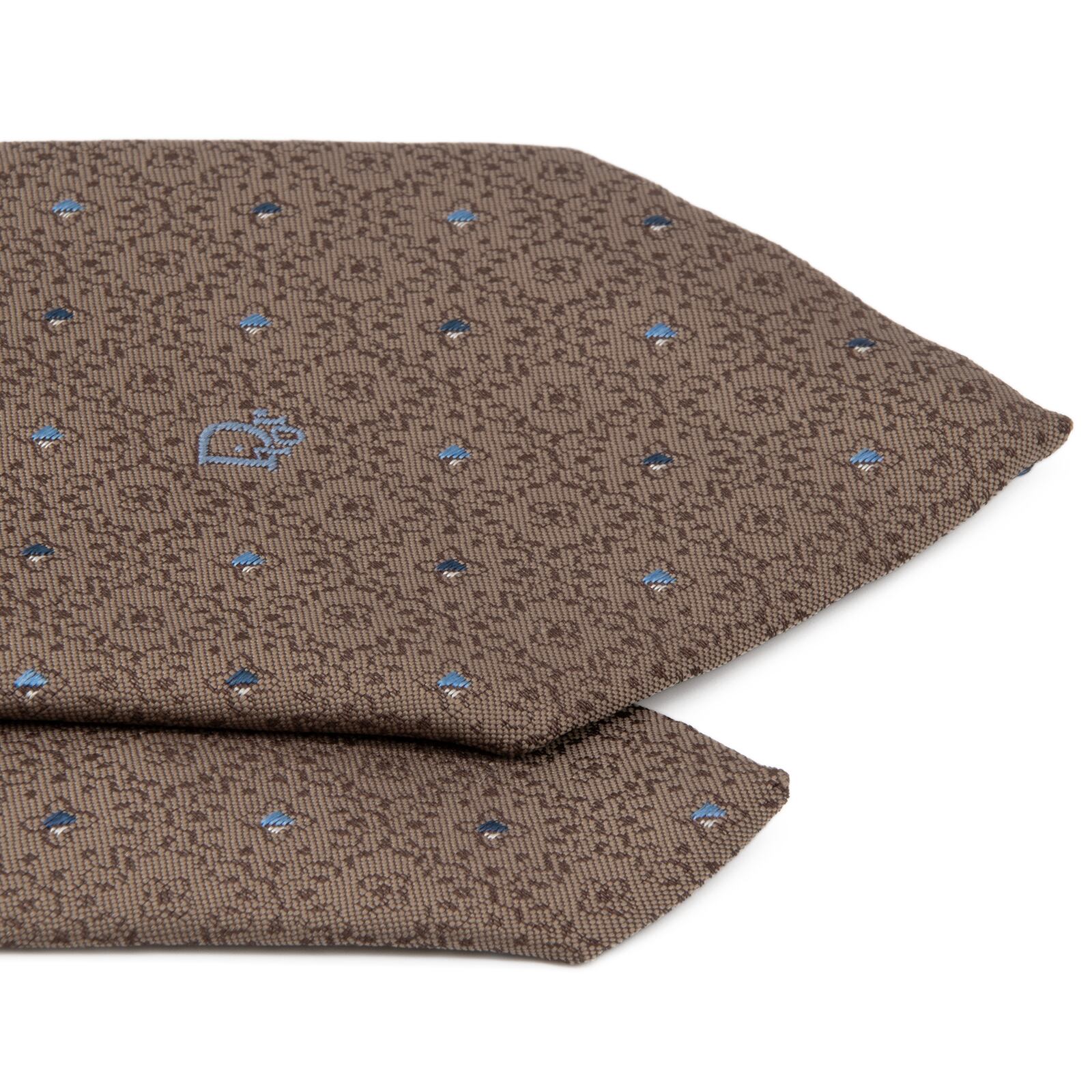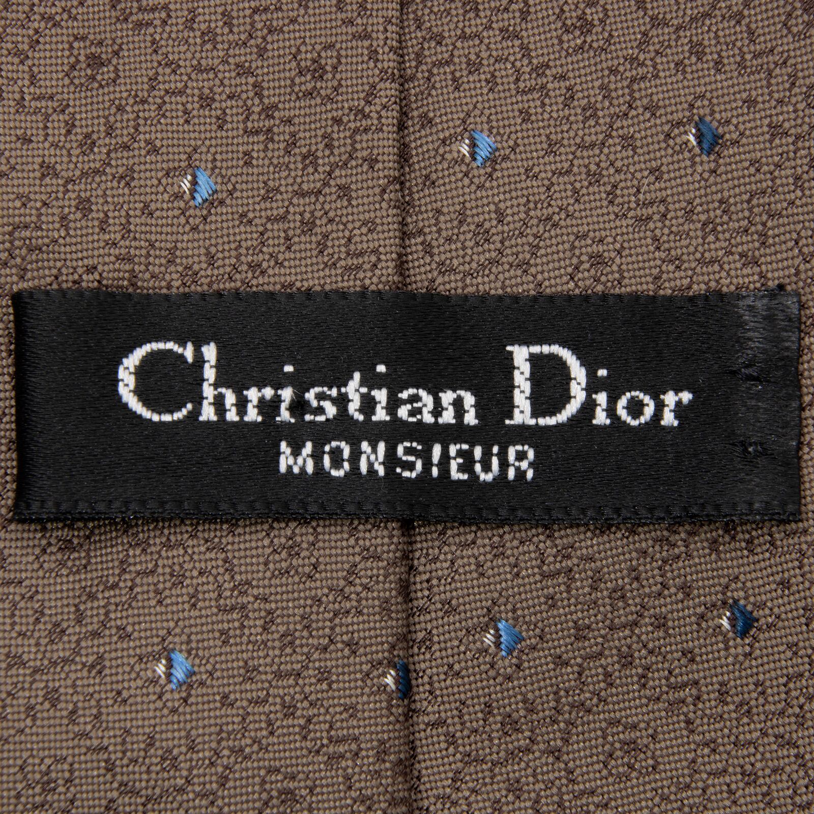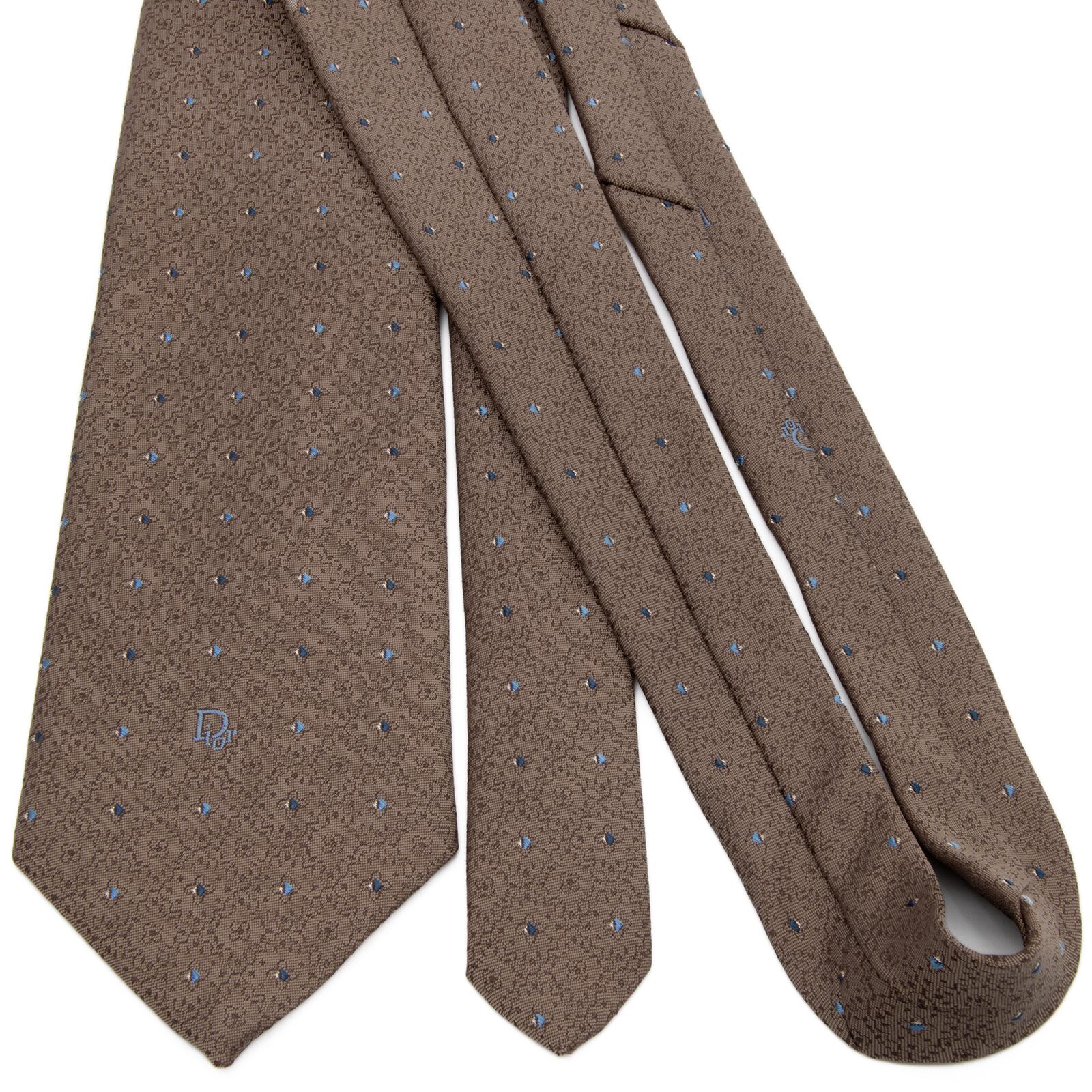 新品同様 送料無料 ディオール ネクタイ レギュラータイ ジャガード 茶色 ブラウン 水色 青 白 総柄 ドット Y2K ロゴ ハイブランド P590