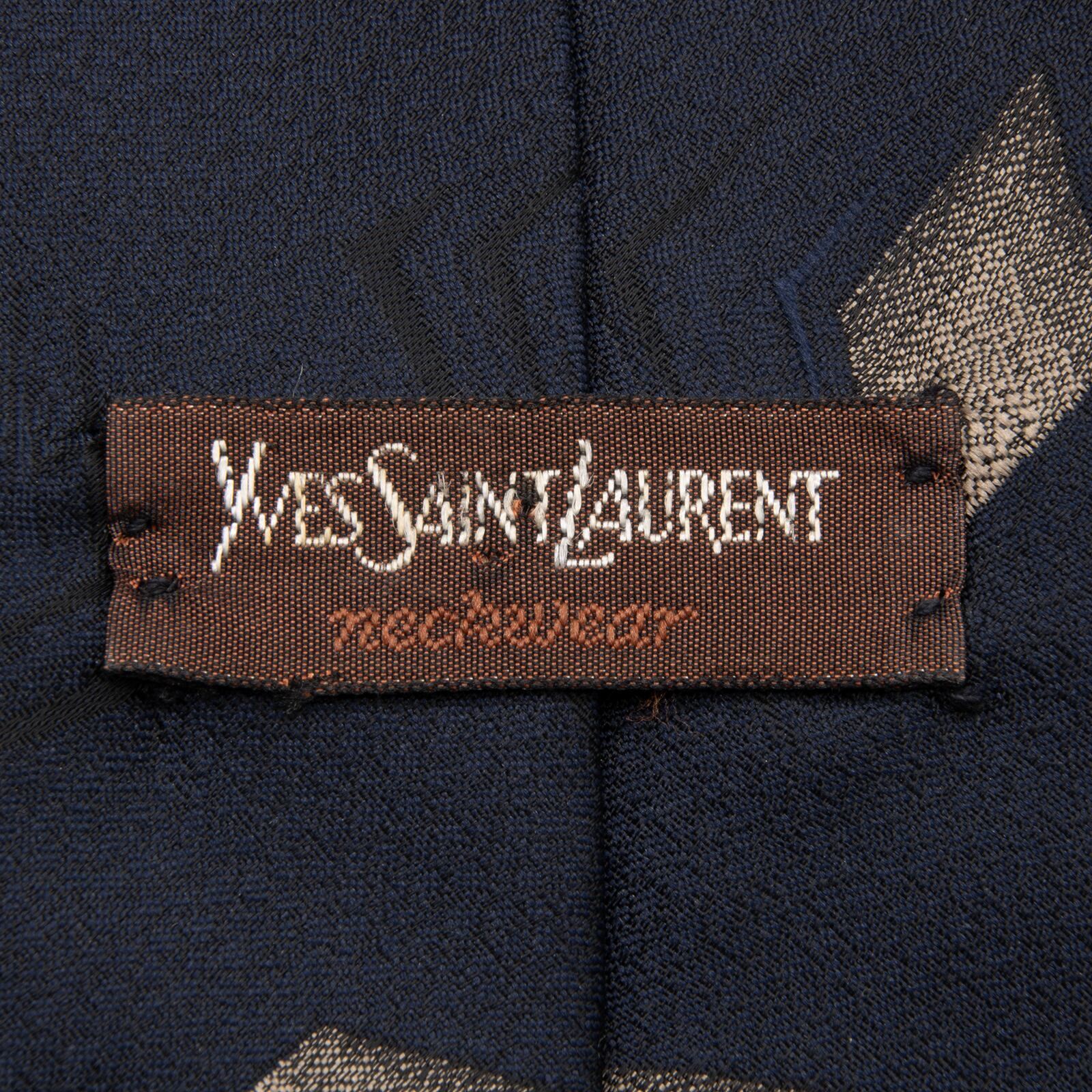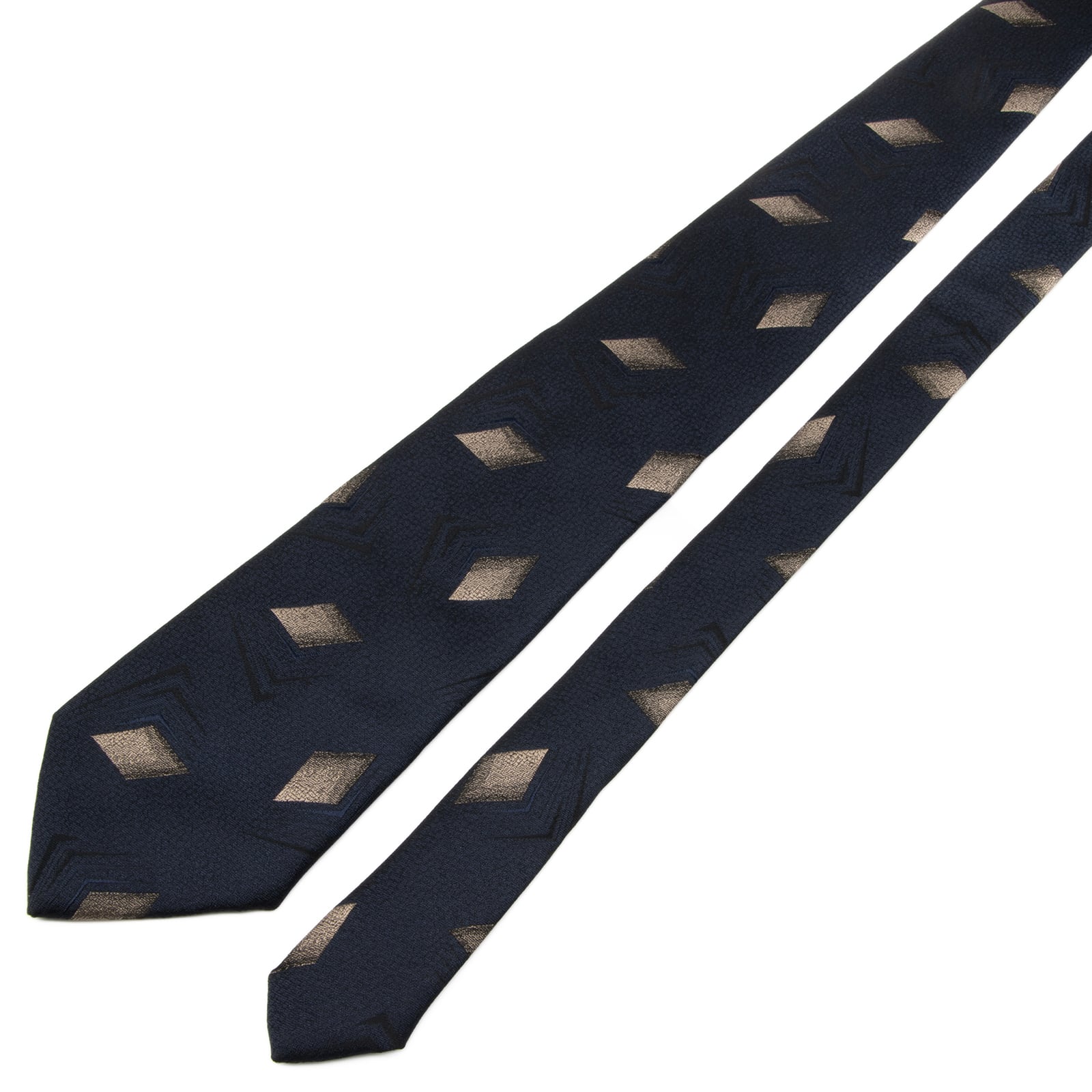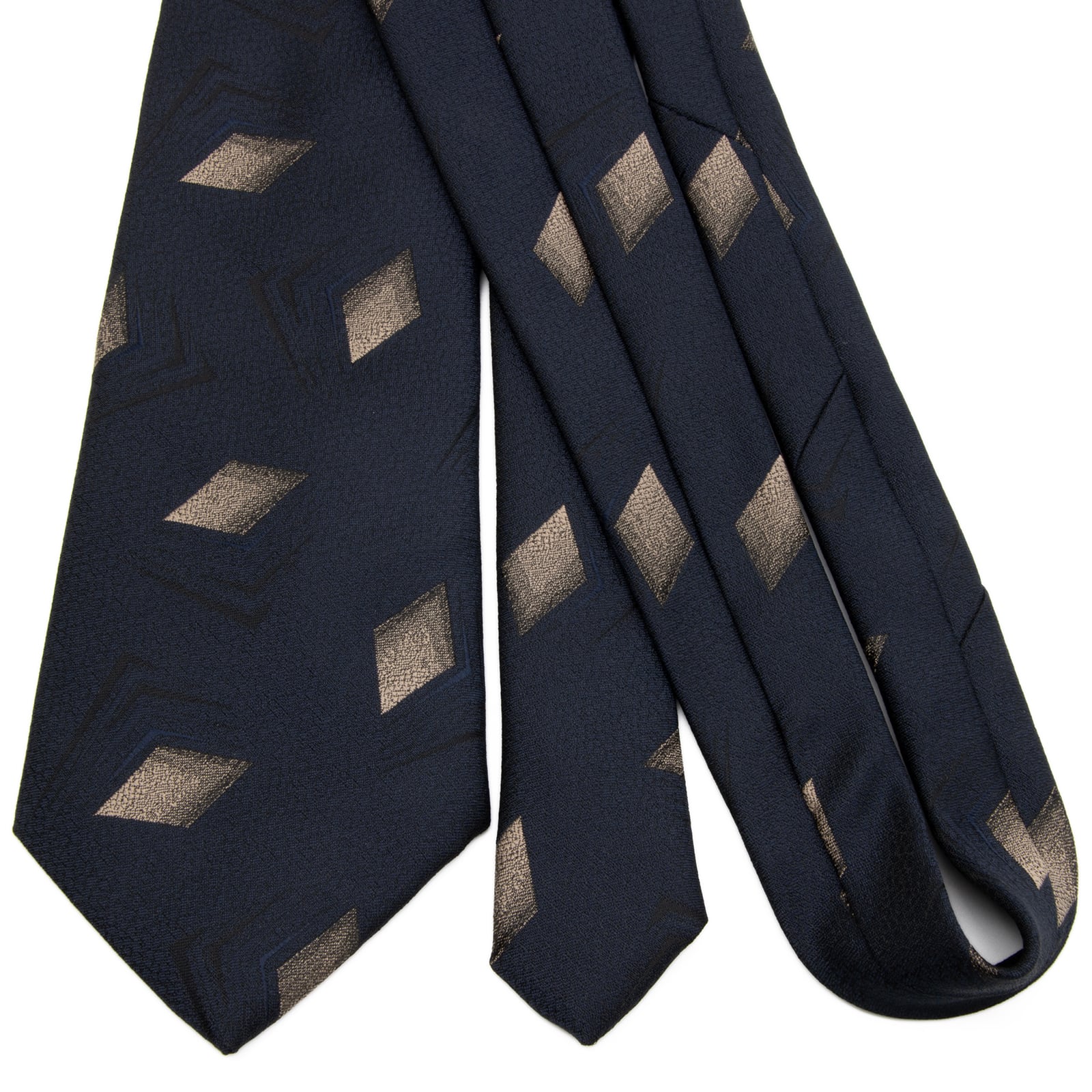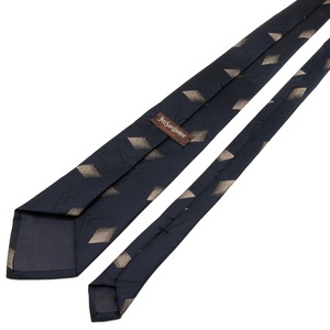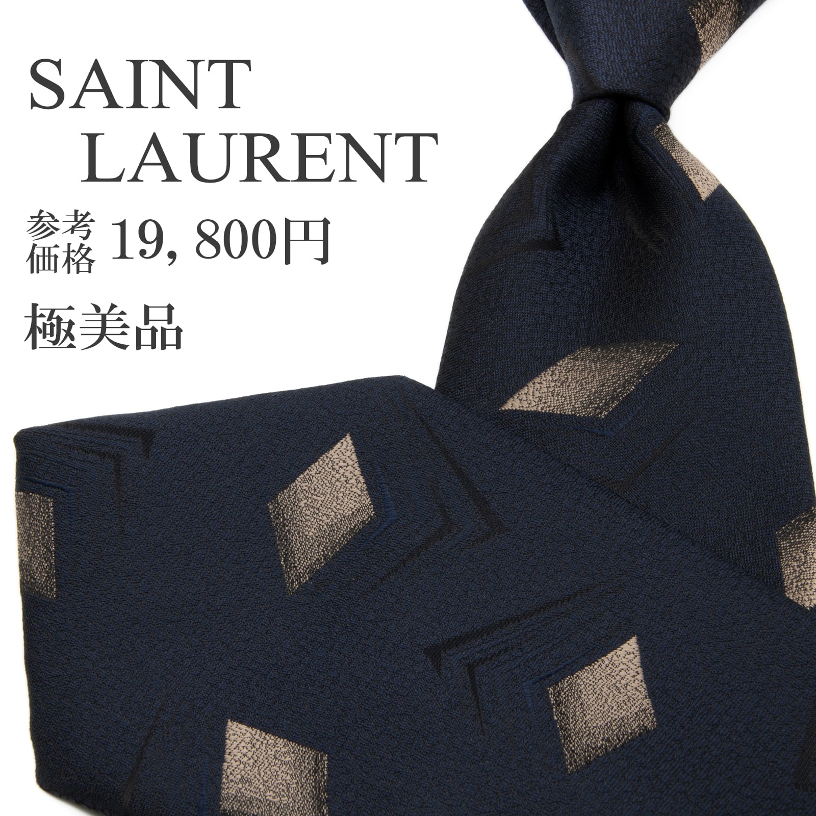 送料無料 サンローラン ネクタイ レギュラータイ ジャガード シルク ネイビーブルー ブロンズ 黒 総柄 四角 ひし形 ハイブランド 綺麗 P595