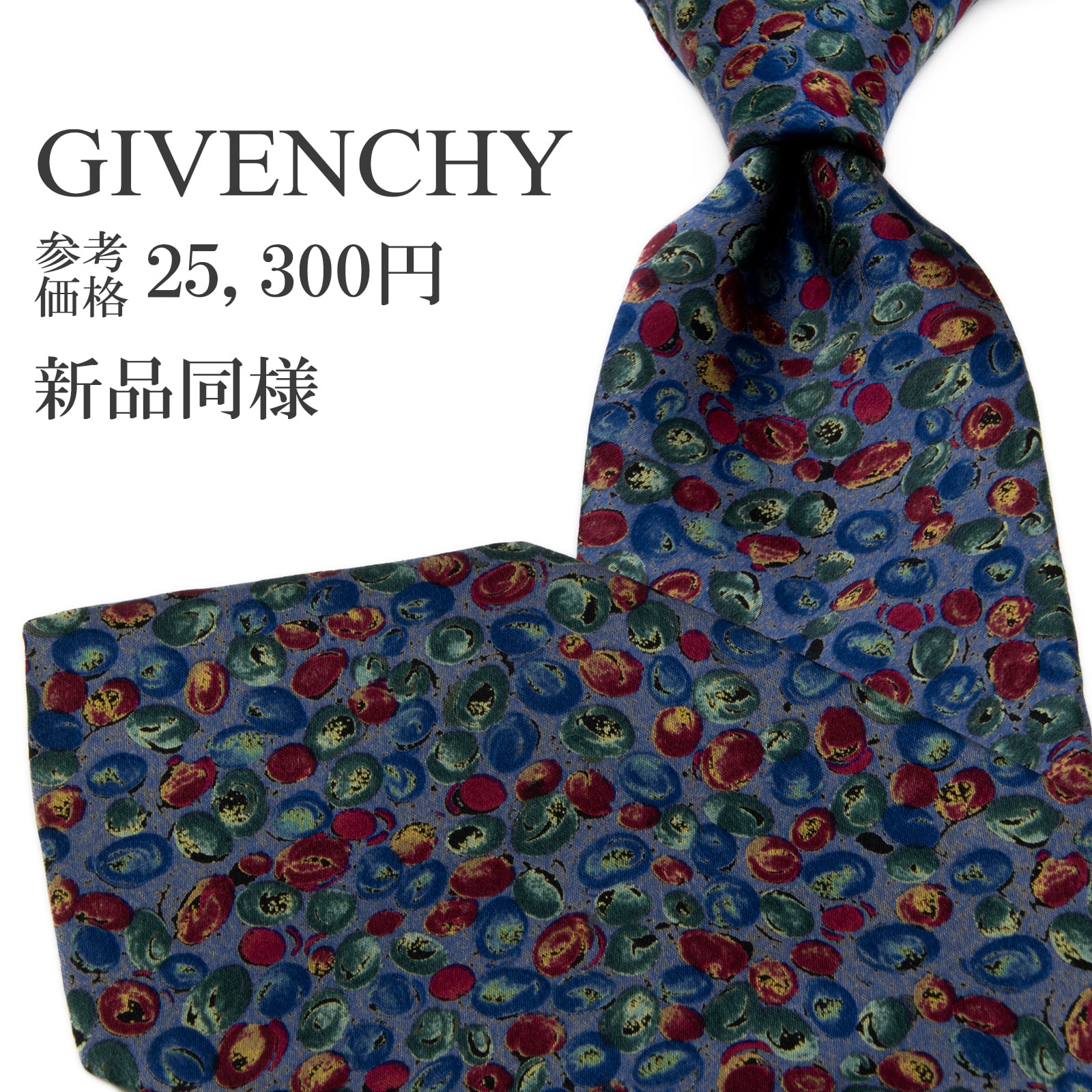 新品同様 送料無料 ジバンシー ネクタイ レギュラータイ 青 ブルー 赤 緑 黒 ジェントルメン 総柄 Y2K 00s 花 つぼみ ハイブランド P742