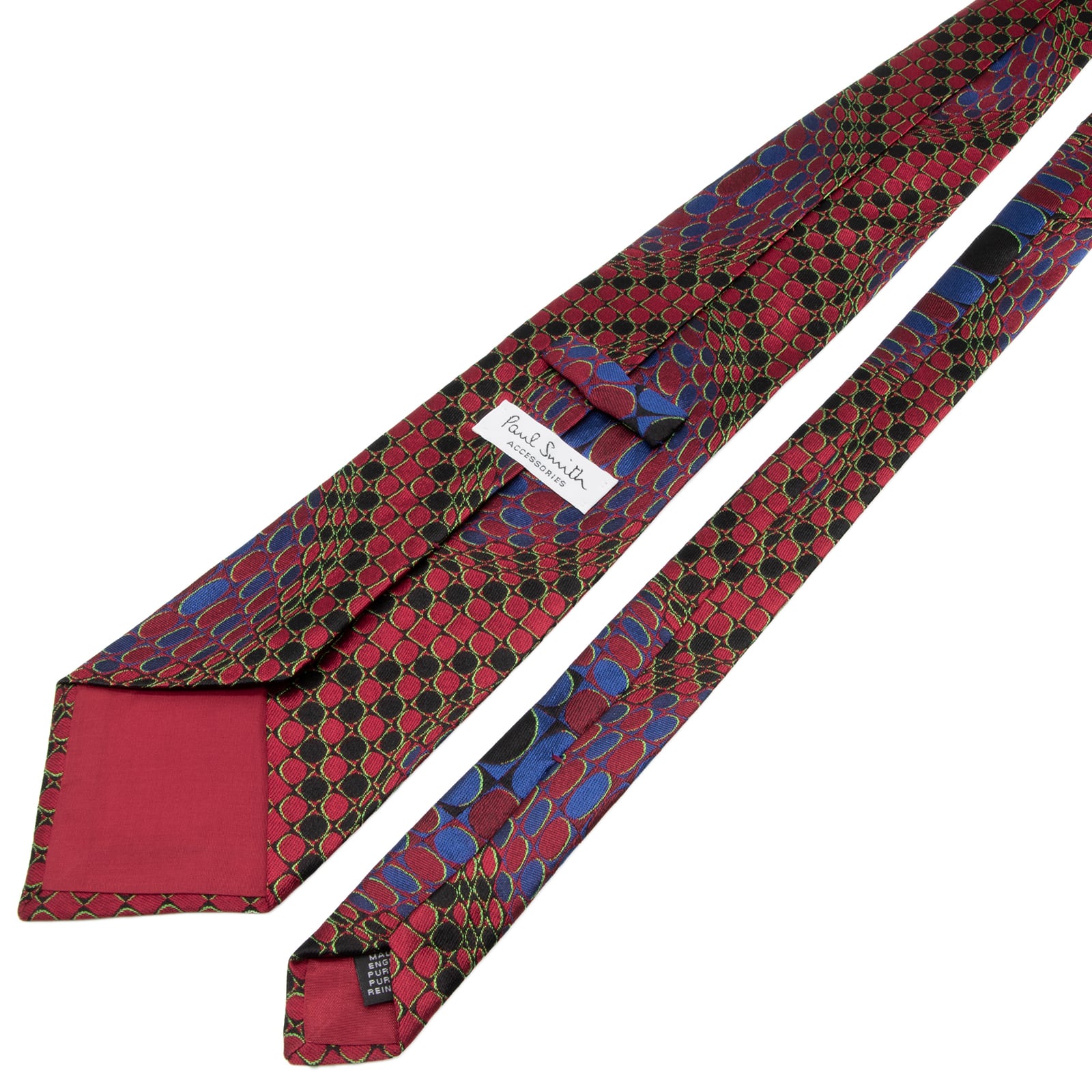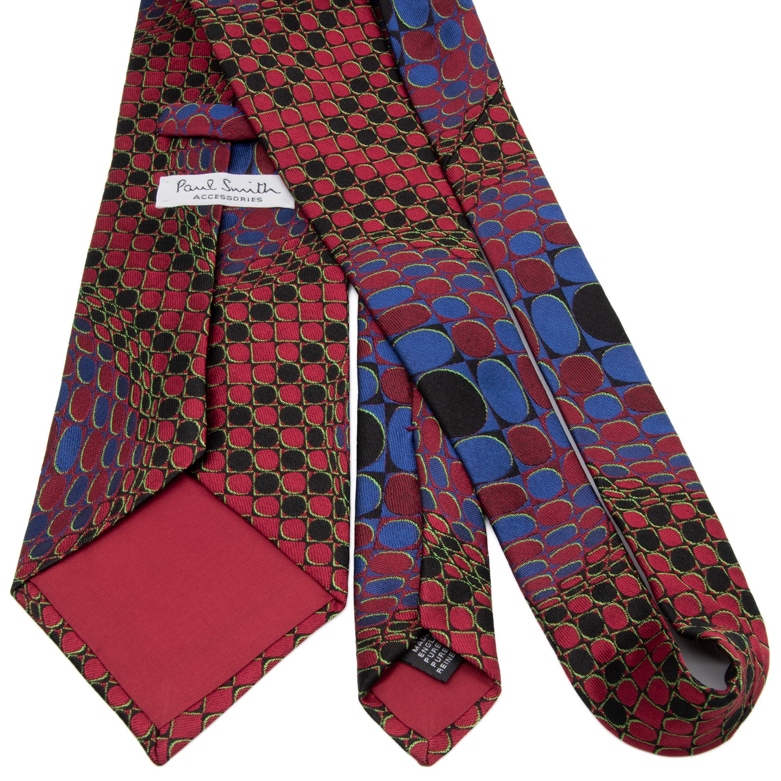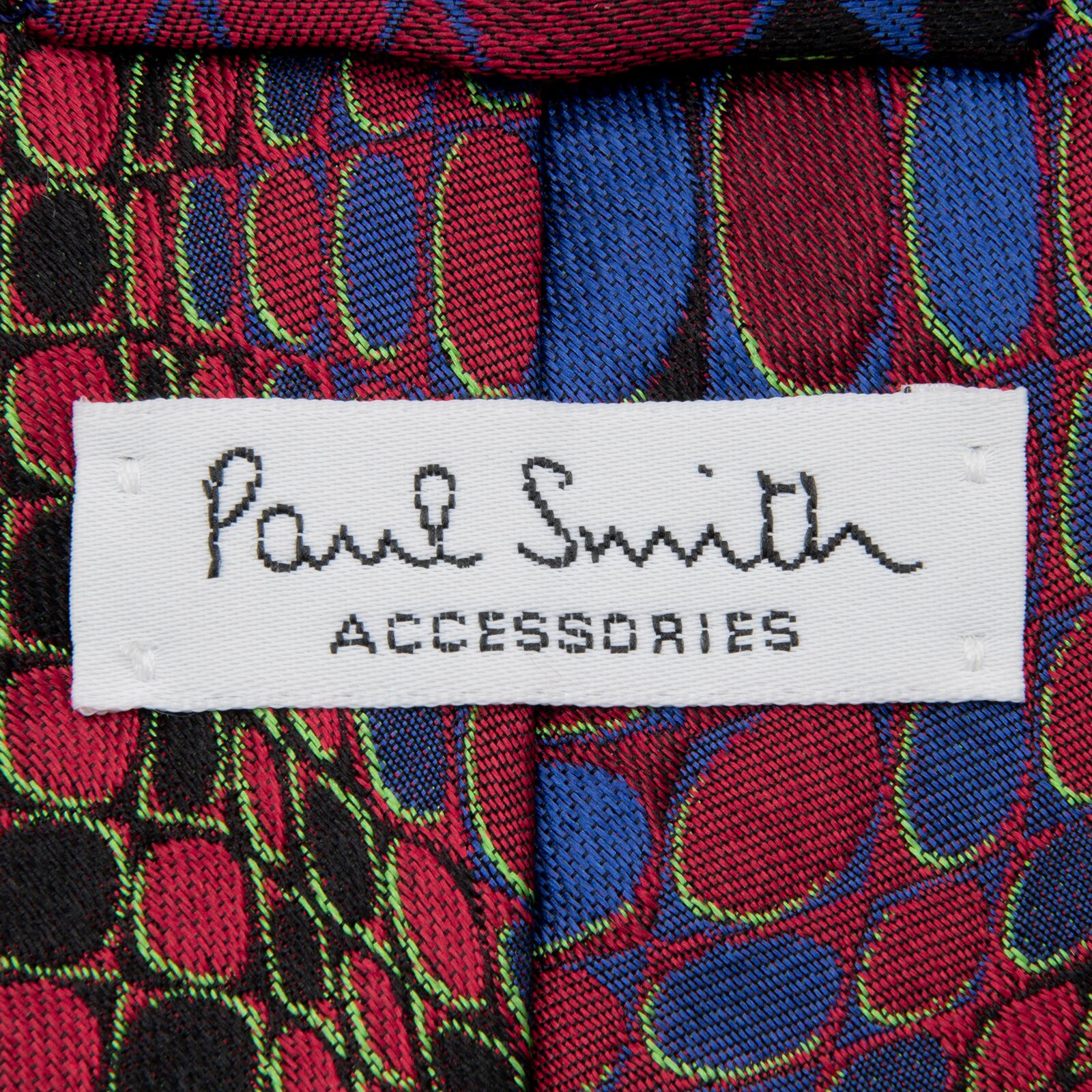 送料無料 ポールスミス ネクタイ ジャガードタイ シルク 赤 レッド 黒 青 総柄 Y2K 00s 光沢 円 サークル 立体 3D ハイブランド 綺麗 P805