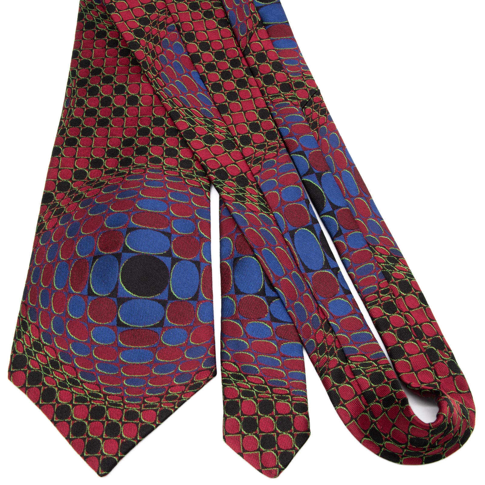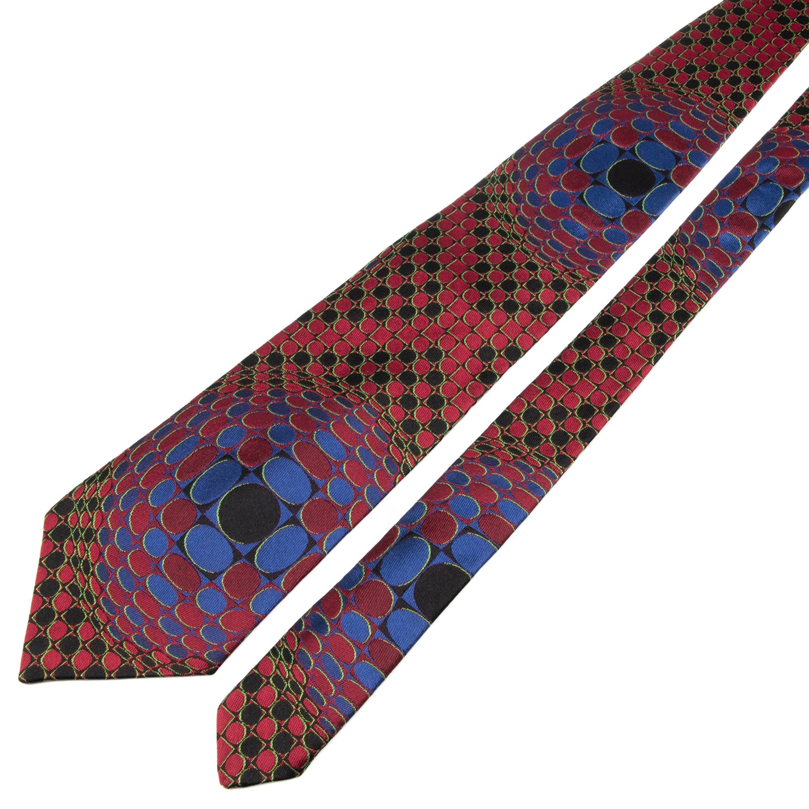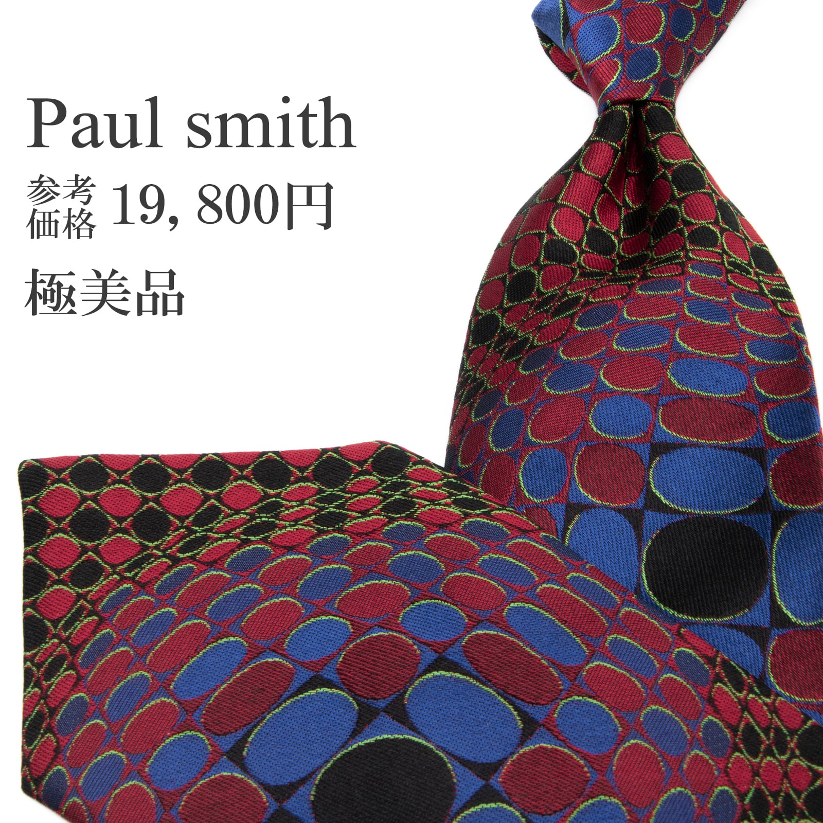 送料無料 ポールスミス ネクタイ ジャガードタイ シルク 赤 レッド 黒 青 総柄 Y2K 00s 光沢 円 サークル 立体 3D ハイブランド 綺麗 P805