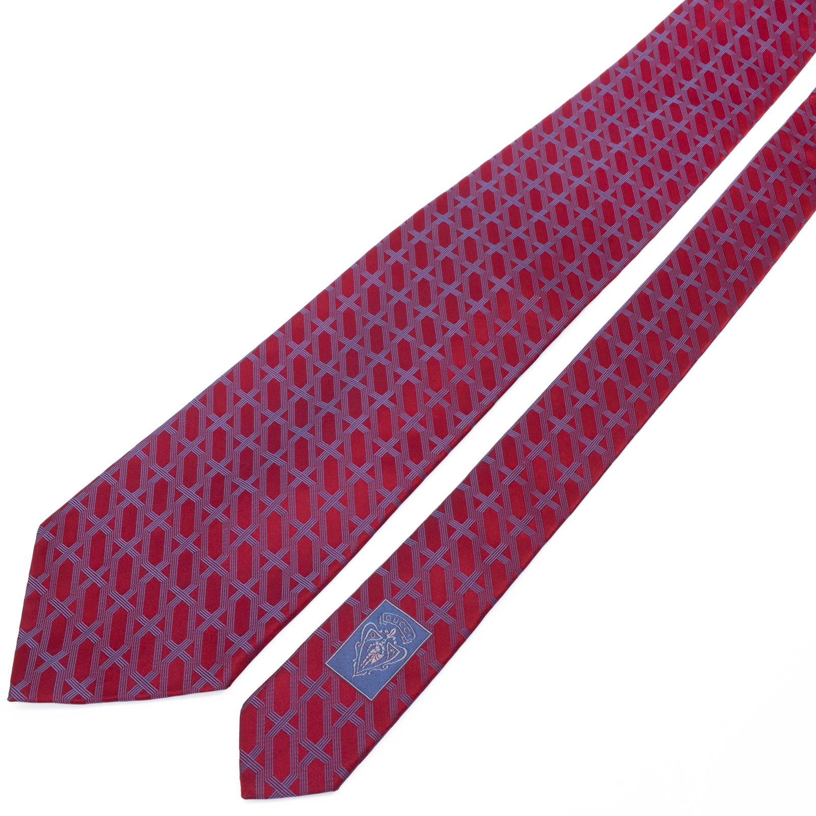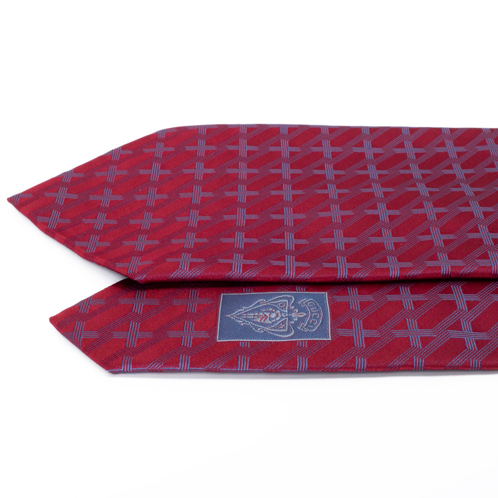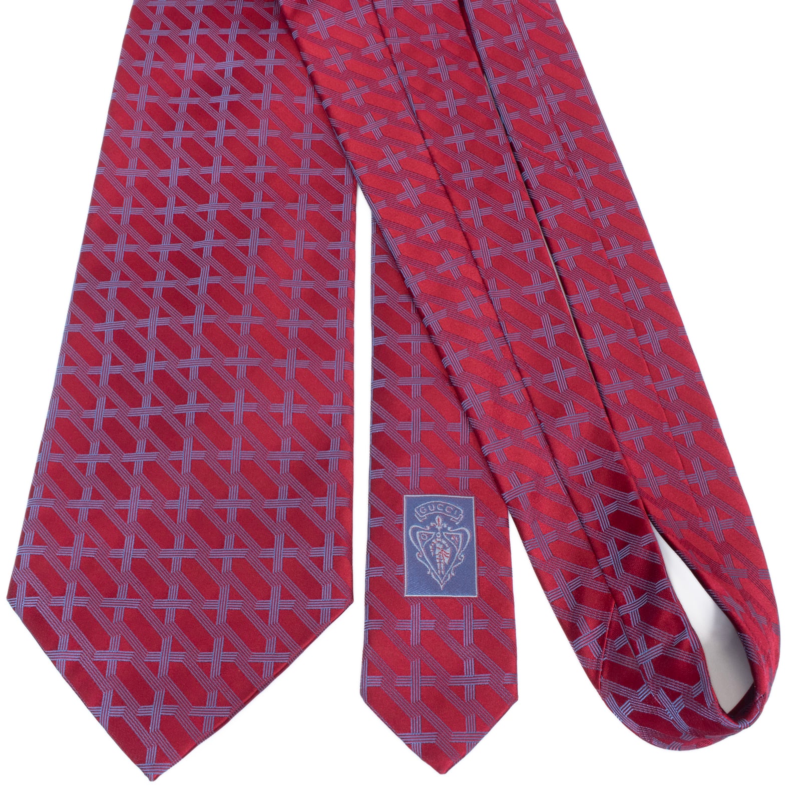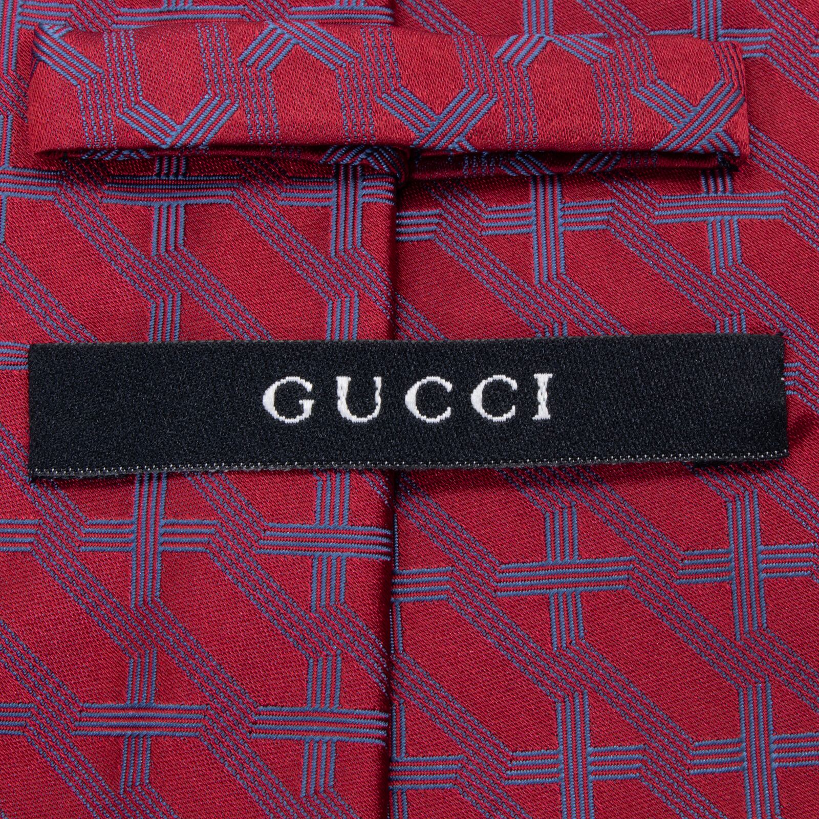 新品同様 送料無料 グッチ ネクタイ ジャガード シルク 赤 レッド ネイビーブルー 総柄 Y2K 格子 チェック 幾何学模様 ハイブランド S602