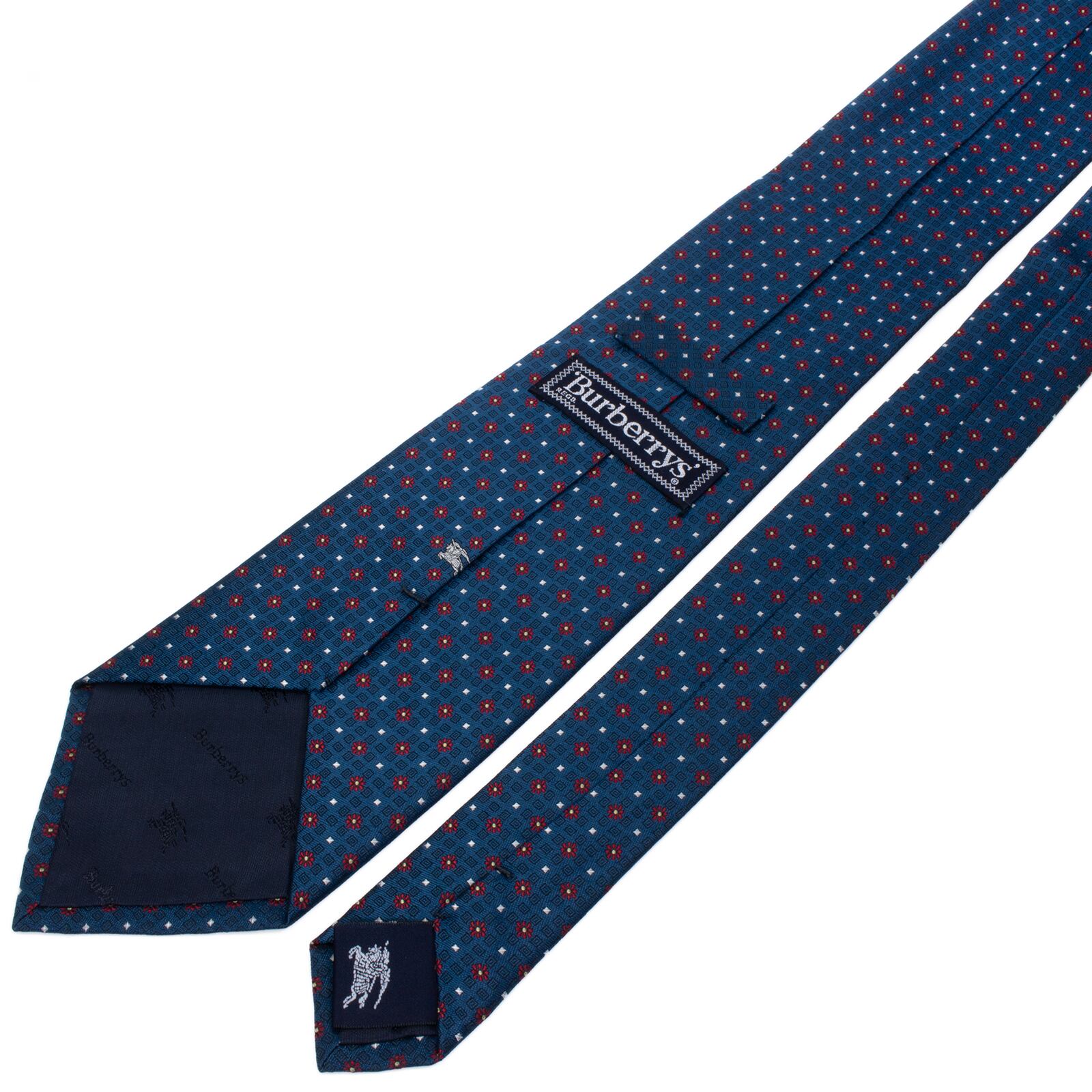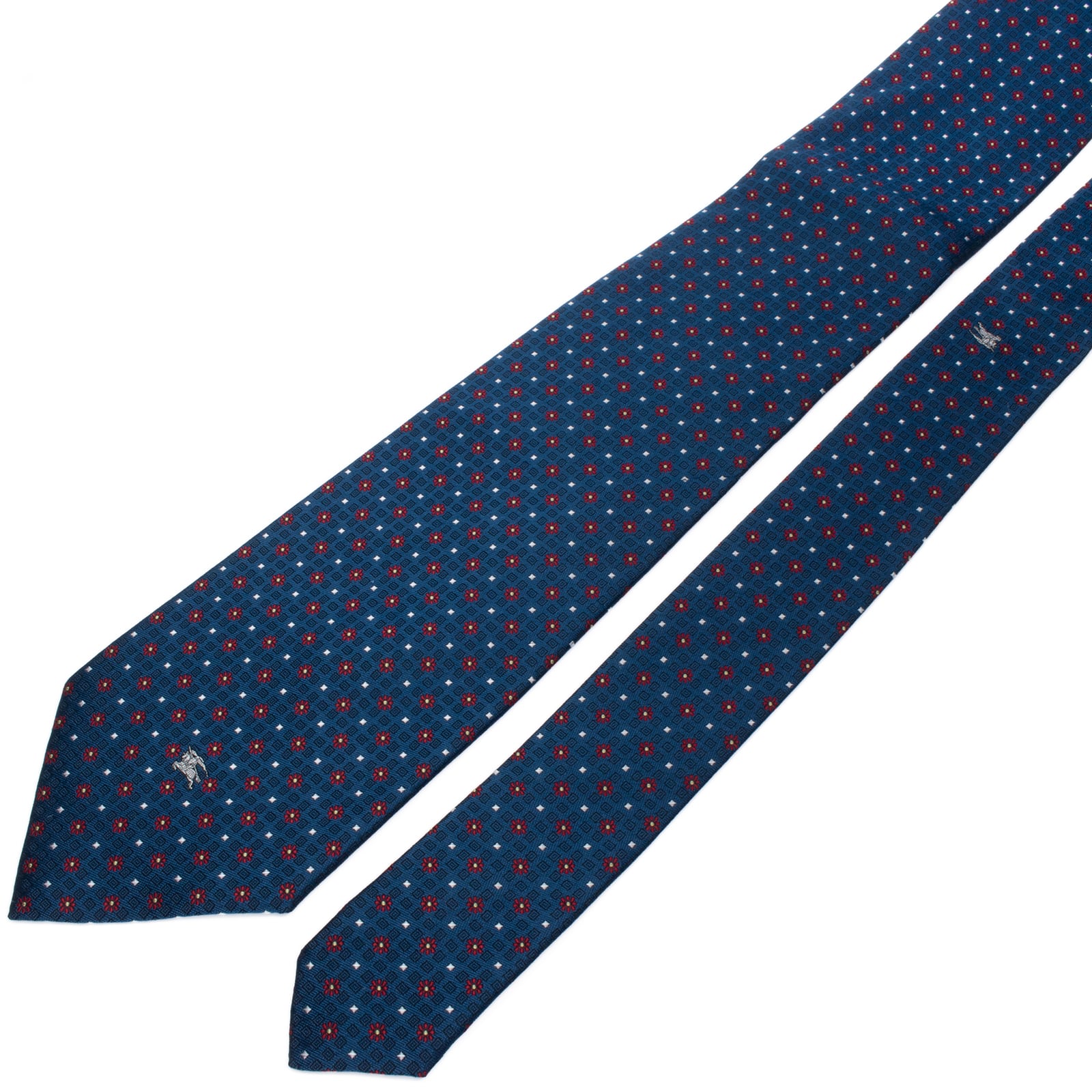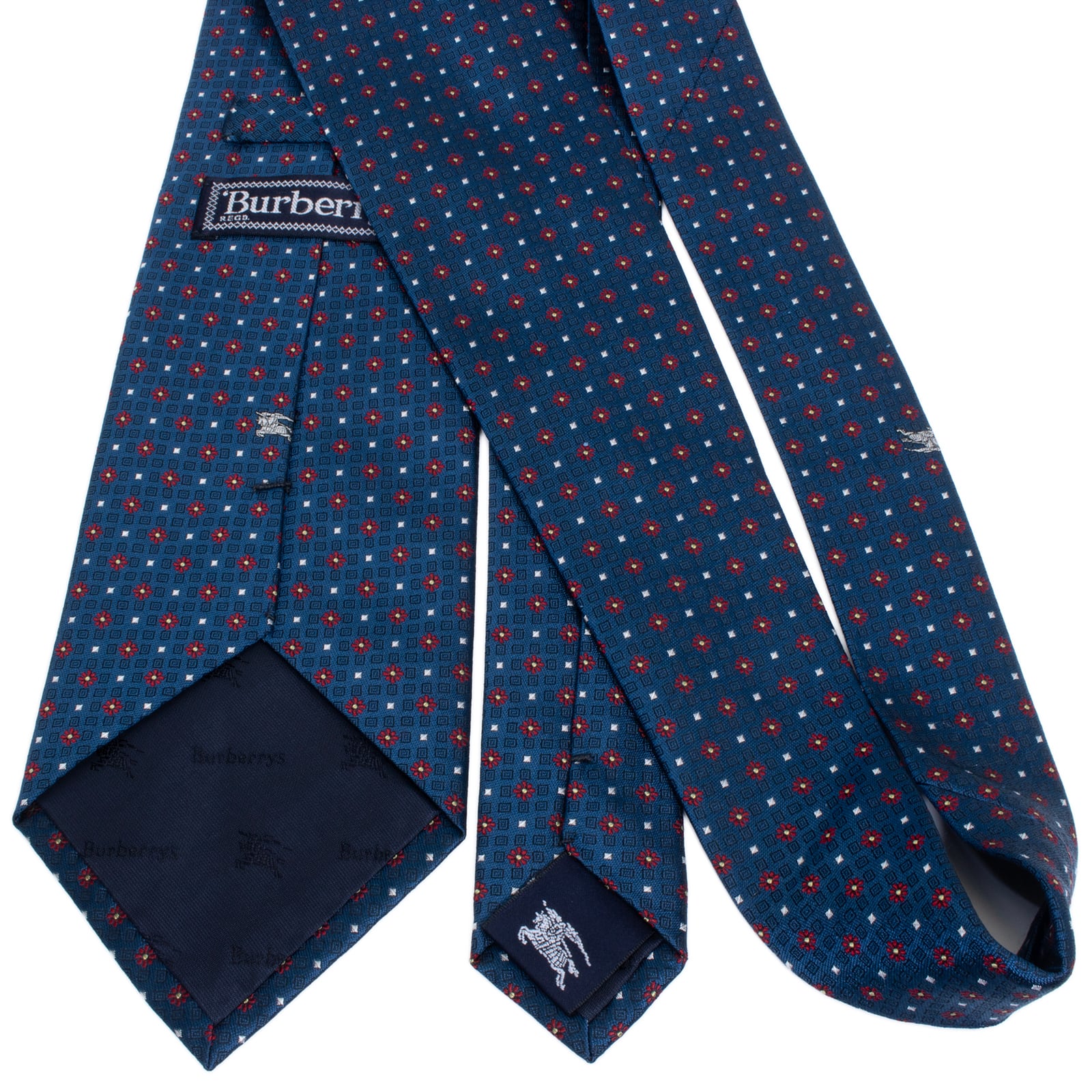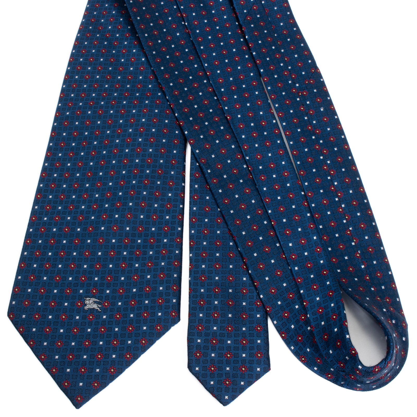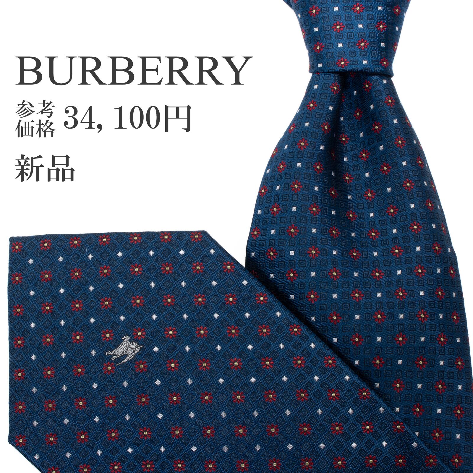 新品 送料無料 バーバリー ネクタイ ジャガード 青 ブルー 赤 シルバー ゴールド 小紋 総柄 馬 ホースロゴ マーク 花 ハイブランド S605