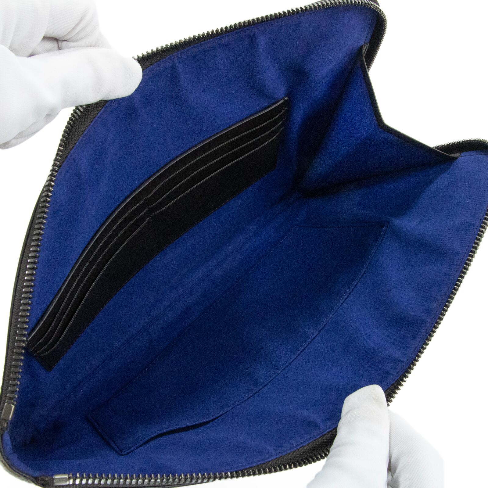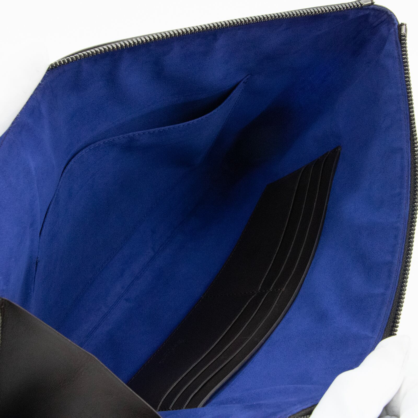スリムな見た目ながら内側にはカード入れやポケットも備わり、機能性にも大変秀でております。