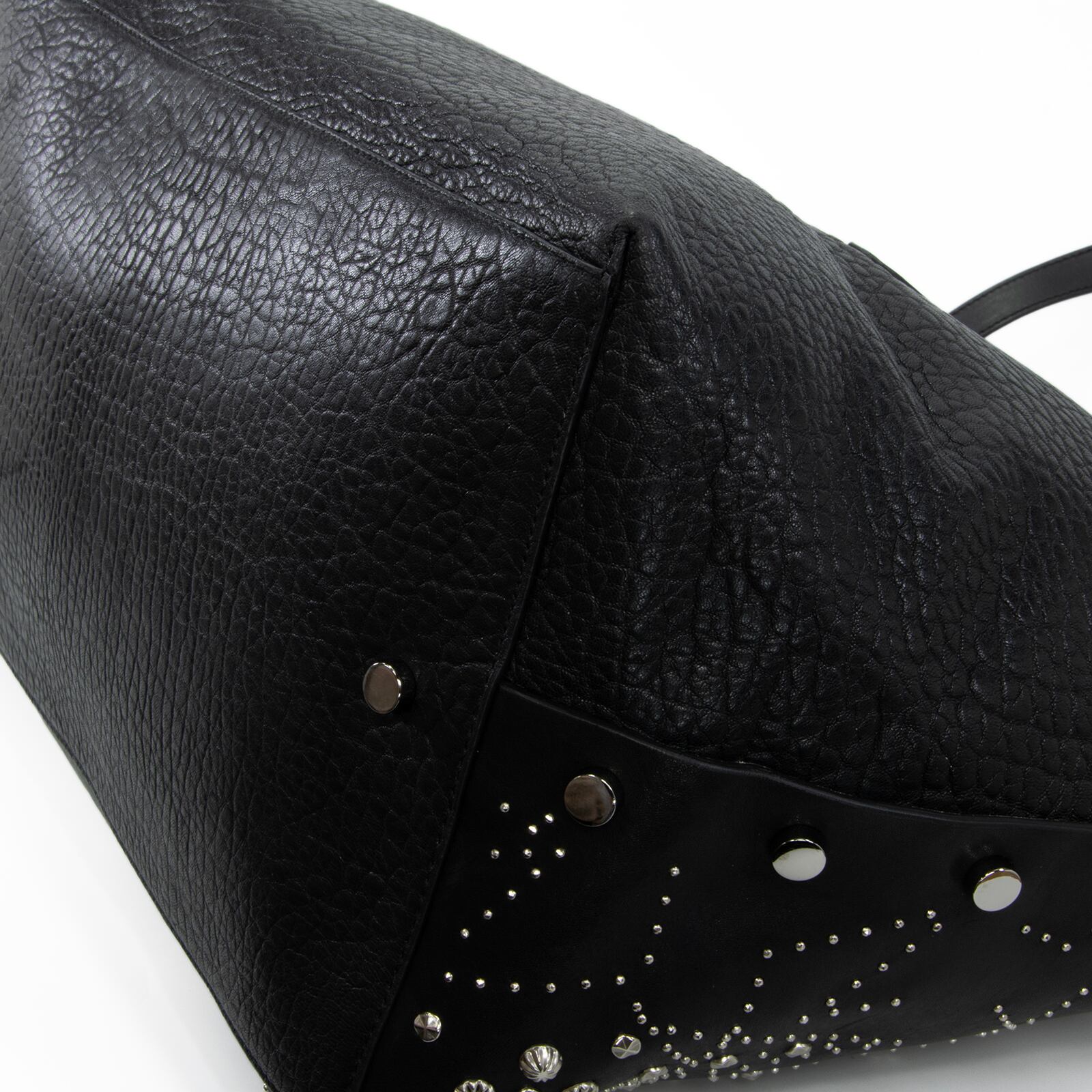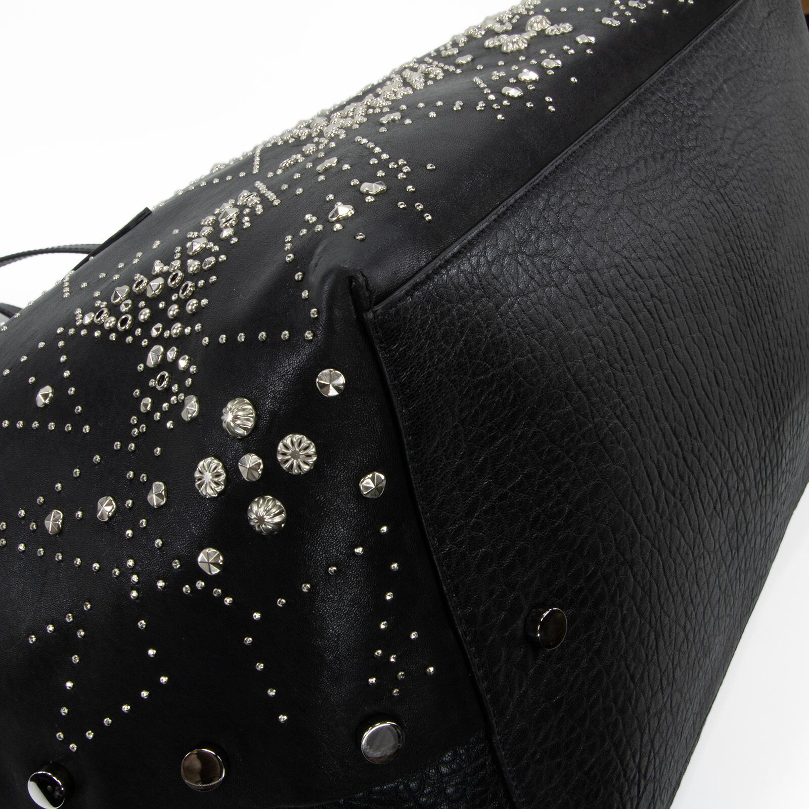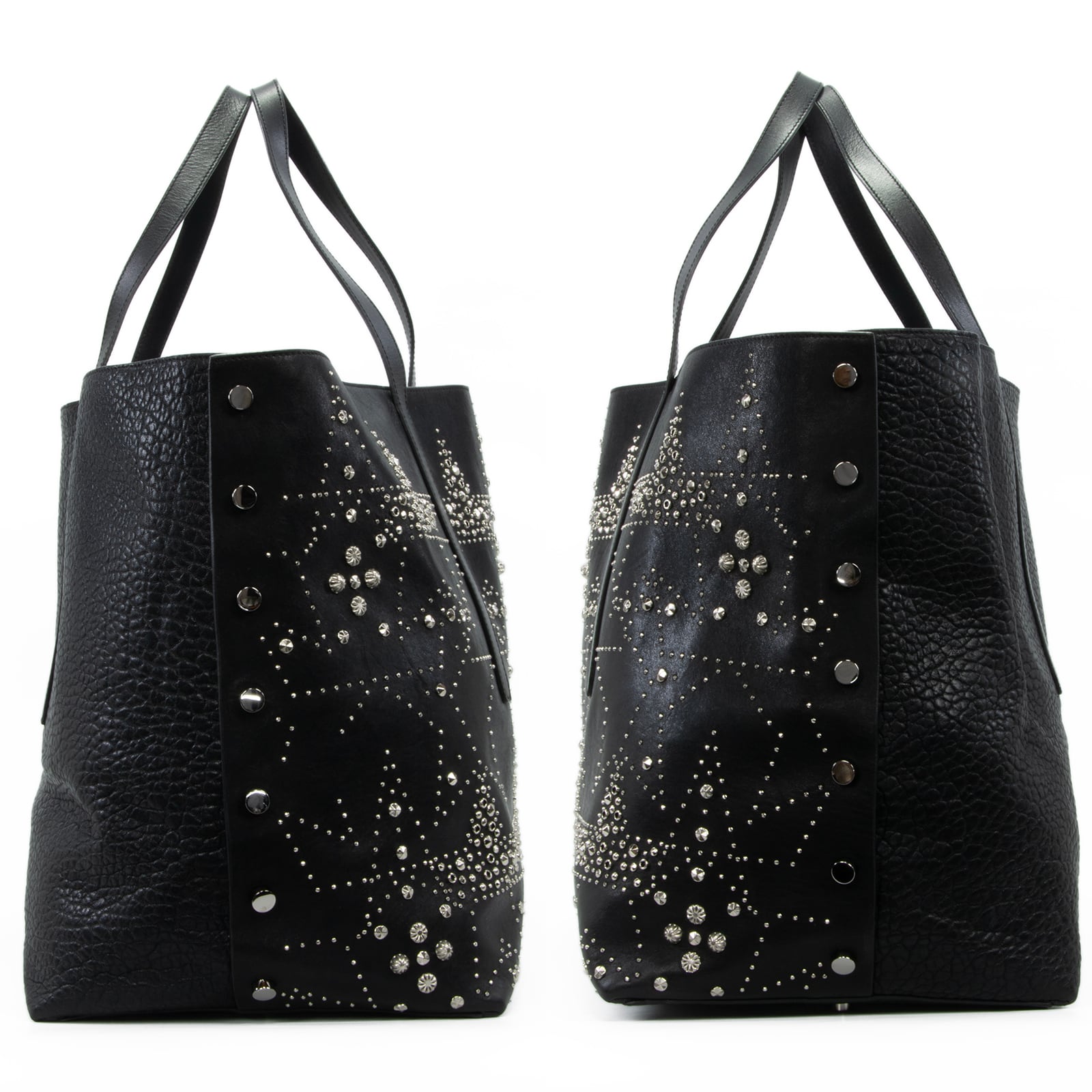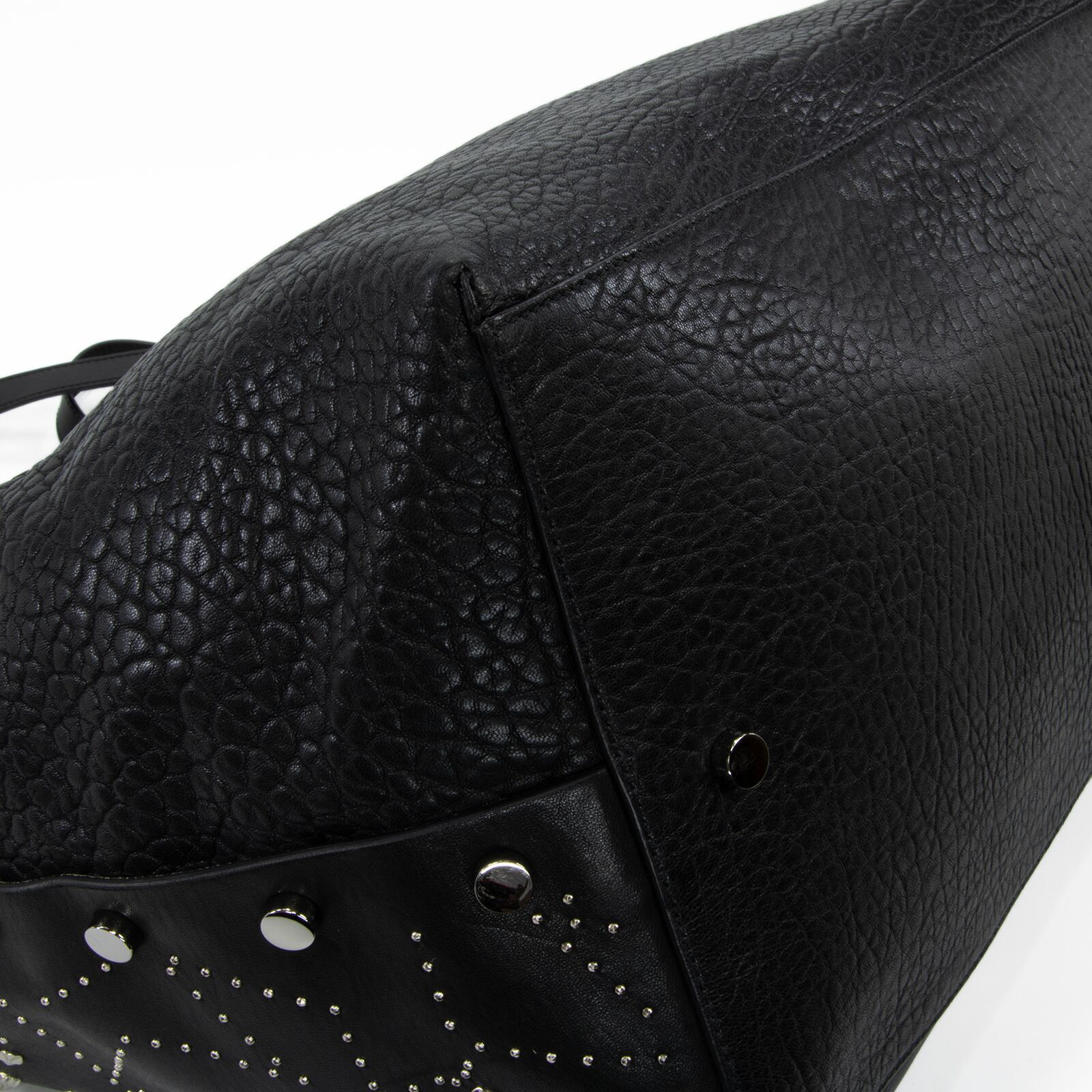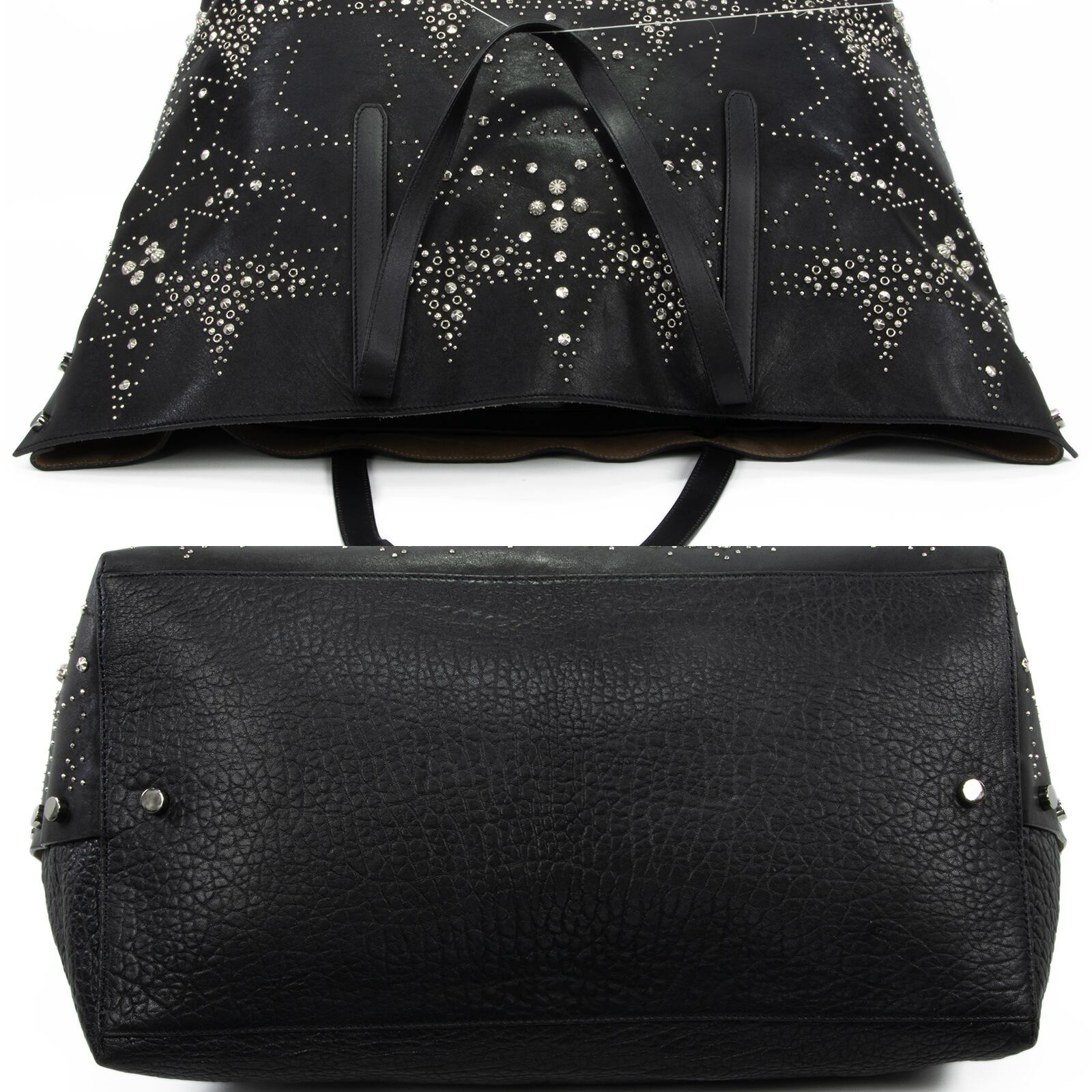 こちらは、満天の星空を思わせる繊細なスタッズが輝きを放つ、ジミーチュウの2017年プレフォールコレクション限定モデル・ツイスト イースト ウェスト・トートバッグでございます。