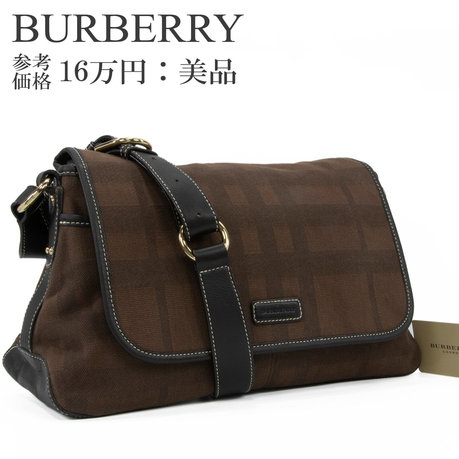 本物 送料無料 バーバリー ショルダーバッグ メンズ レディース 茶色 ブラウン 珍しい 斜め掛け チェック ロゴ 本革 レザー 鞄 バック I295