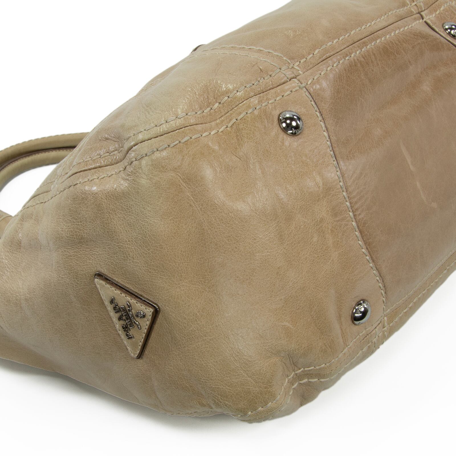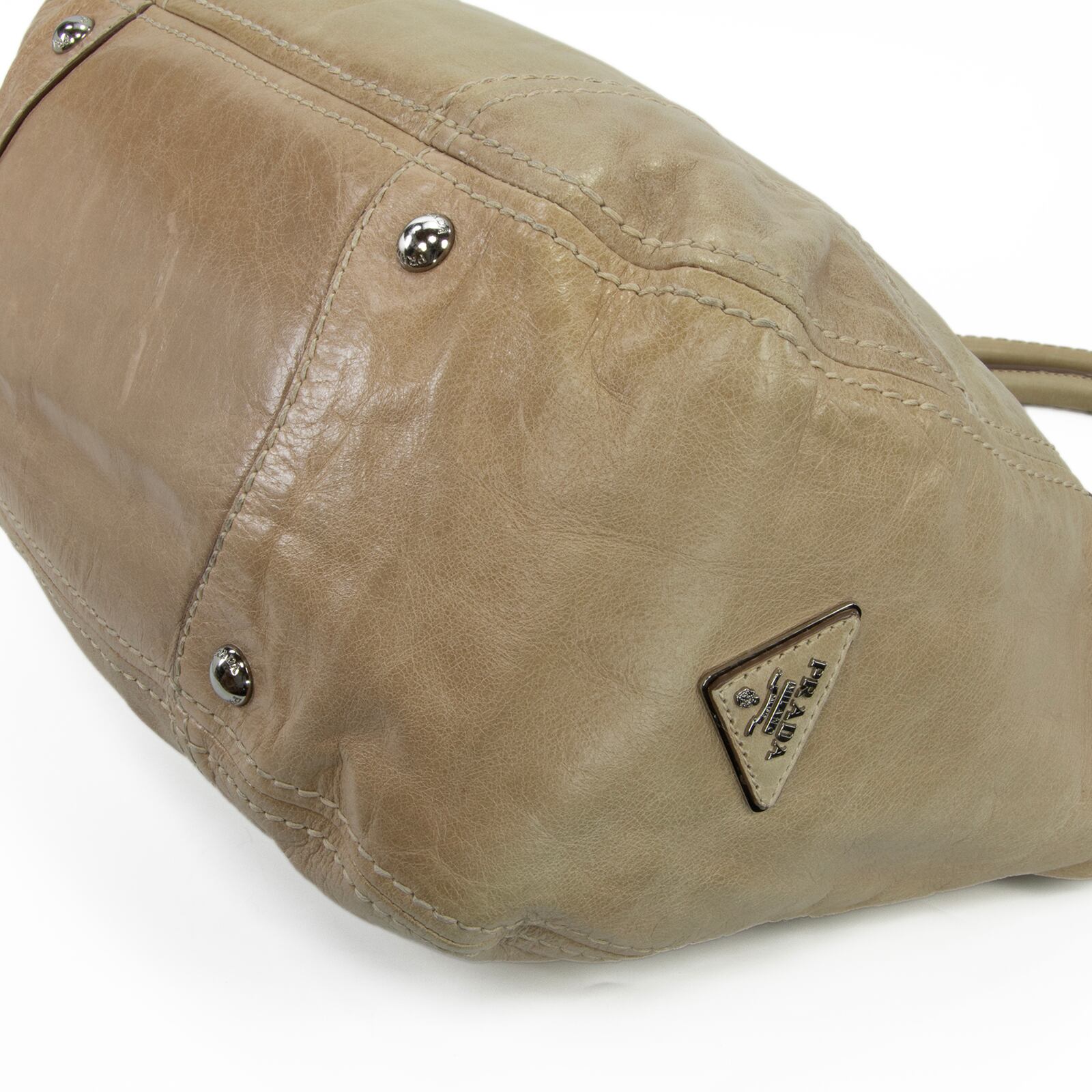 こちらは、柔らかなカーフスキンにヴィンテージ加工が施されました、プラダのヴィッテロ シャイン・ハンドバッグでございます。