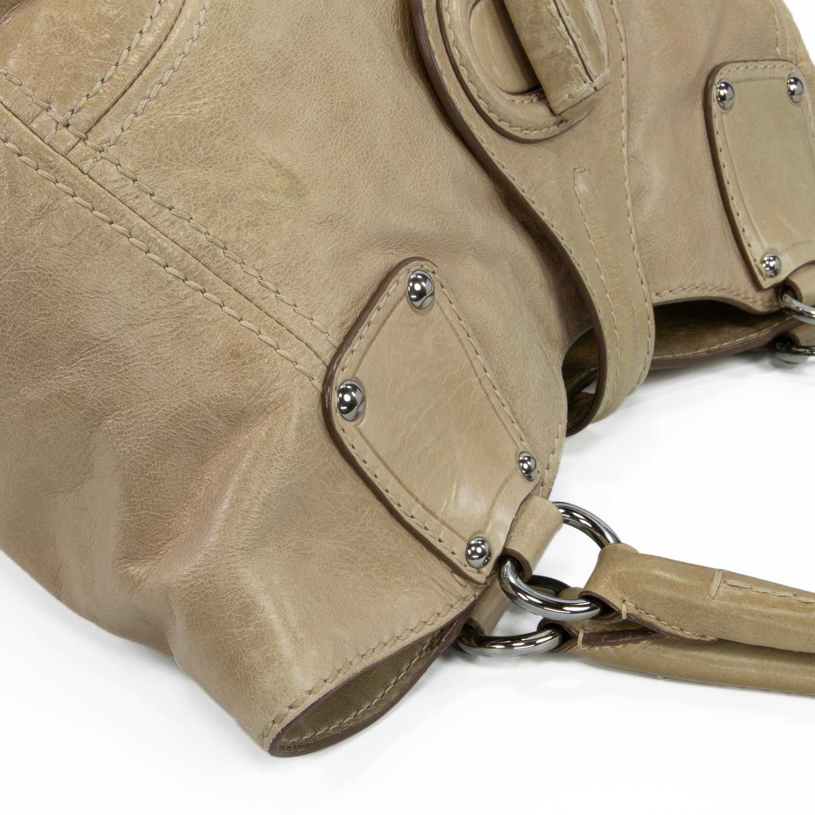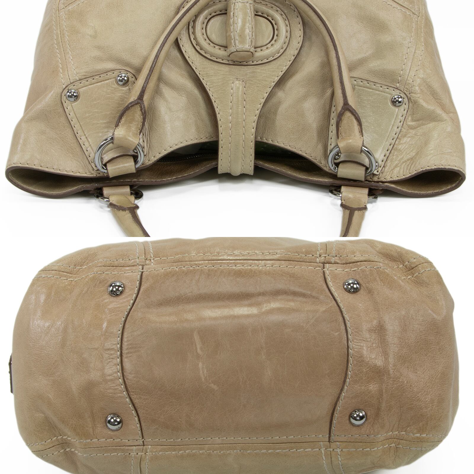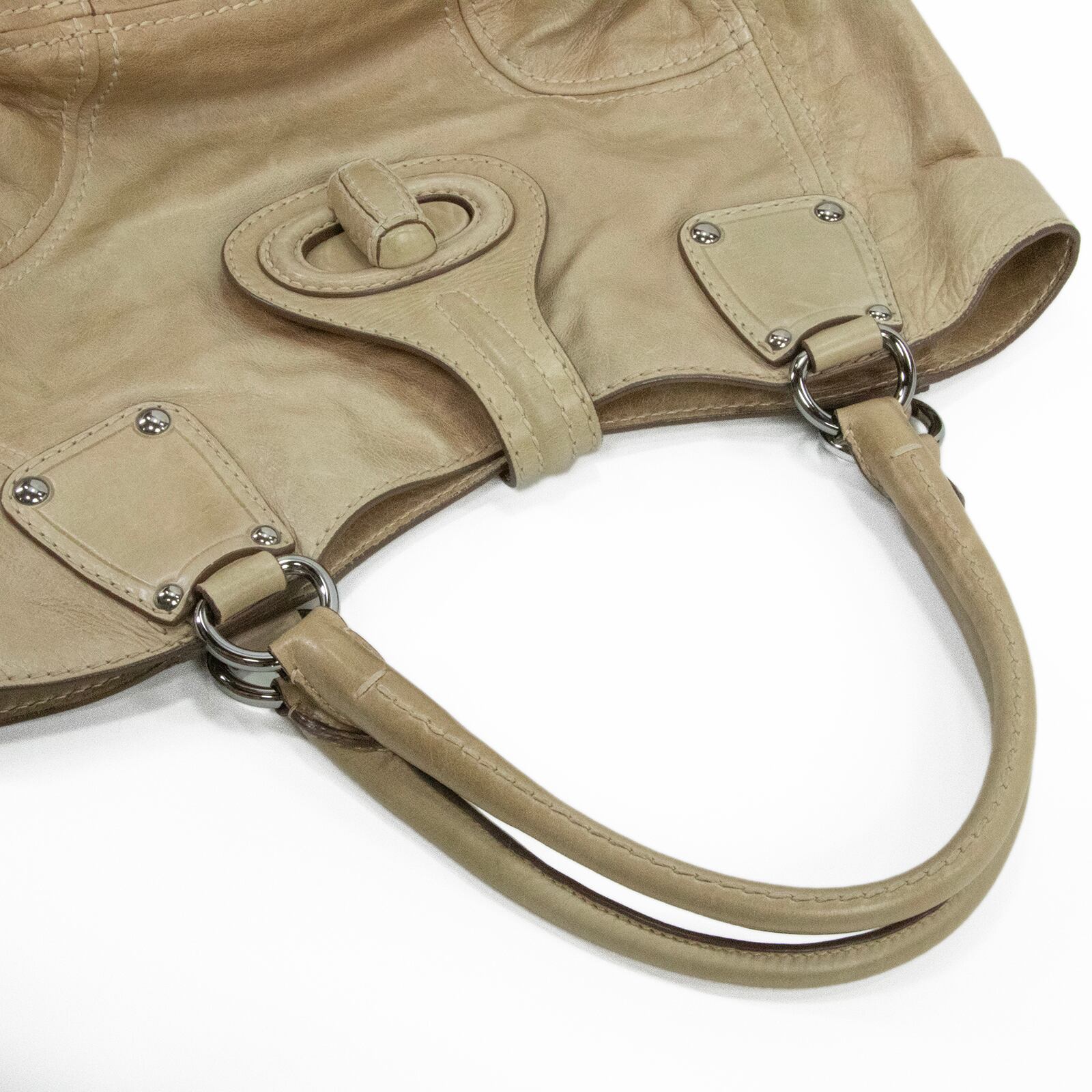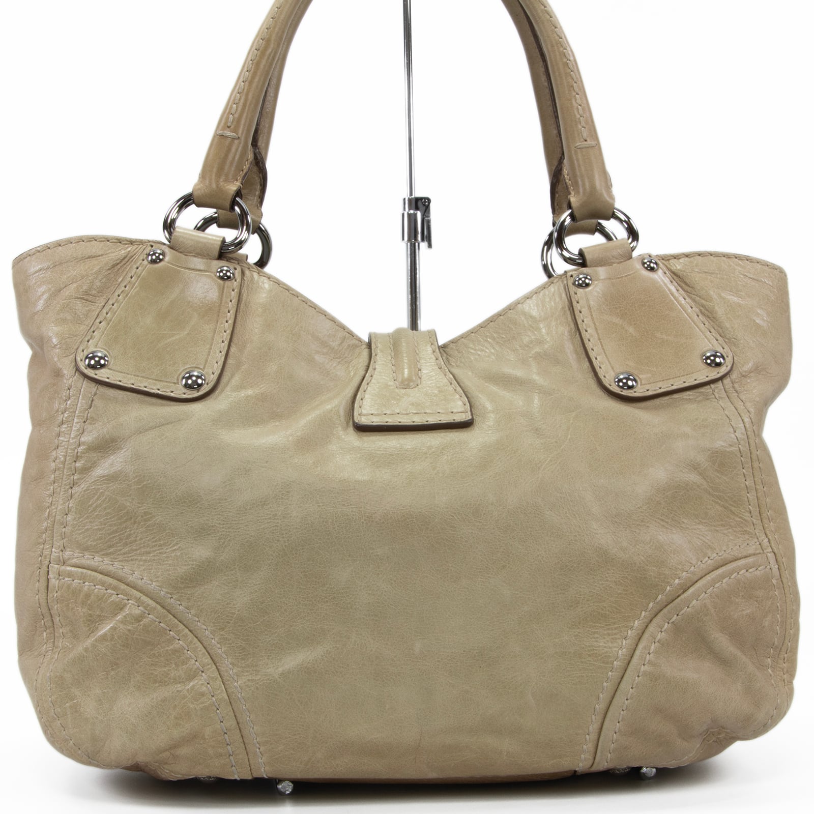 特徴:珍しい・レアモデル・A4対応・ターンロック・スタッズ・三角ロゴ・マーク・本革・レザー・シルバー金具・ハイブランド・おしゃれ