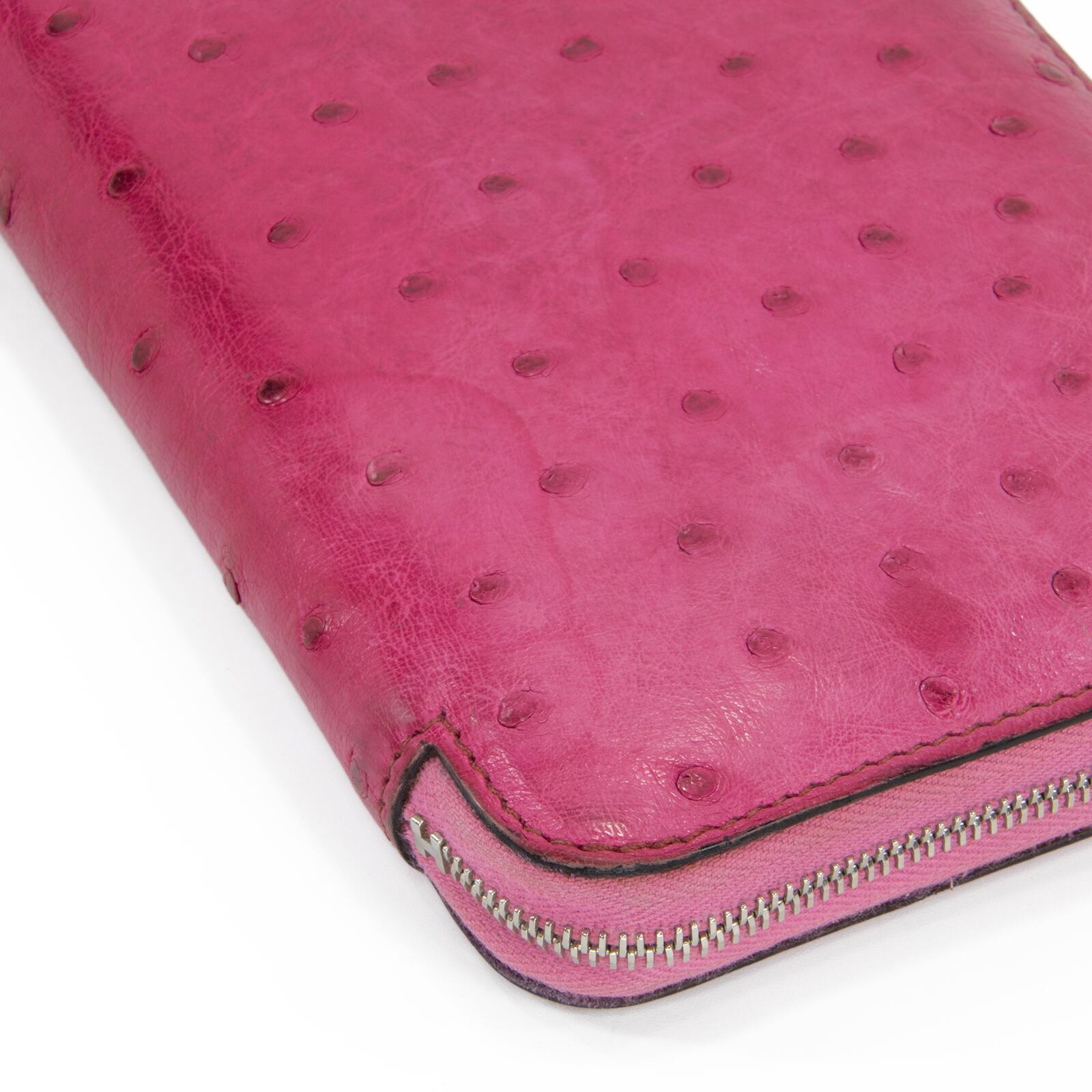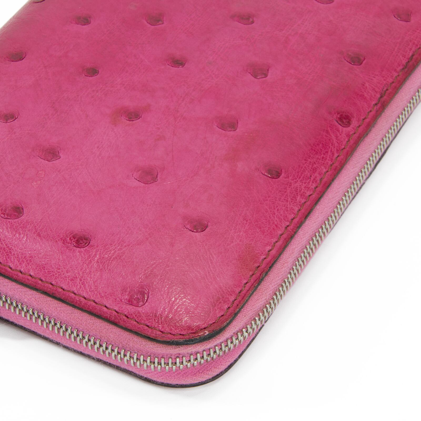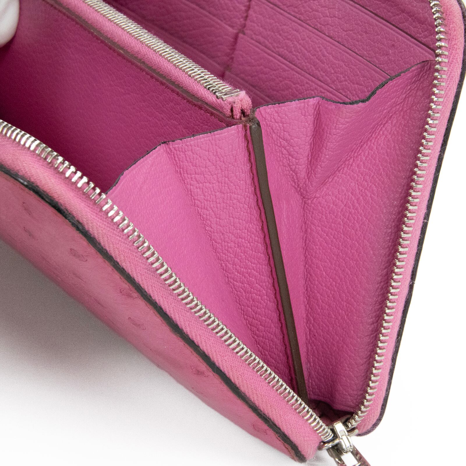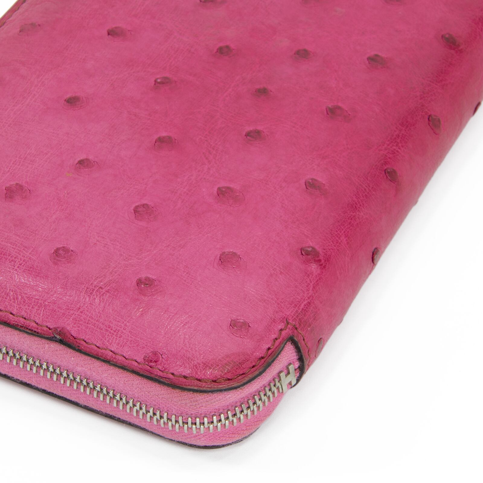 本物 送料無料 エルメス 長財布 ラウンドファスナー レディース オーストリッチ アザップ ロング クラシック ピンク オールレザー 革 H089