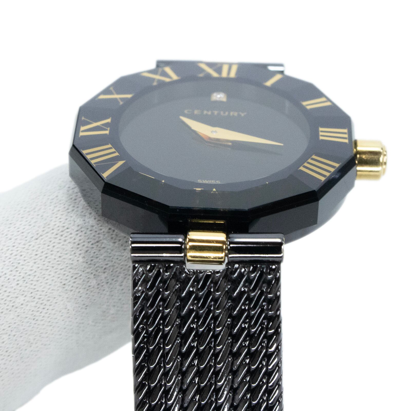 稼働品 送料無料 センチュリー 腕時計 クォーツ 2針 レディース タイムジェム ラテンドリーマー 黒 ゴールド ダイヤモンド ロゴ 綺麗 X509