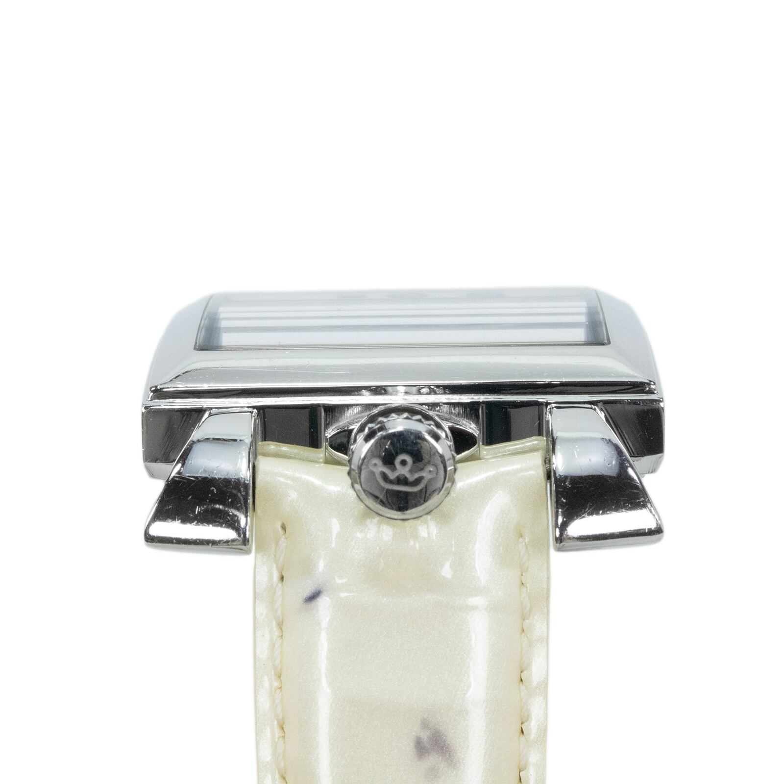スクエア型のケースと可愛らしいアラビア数字が、遊び心のある大人のスタイルを演出しております。