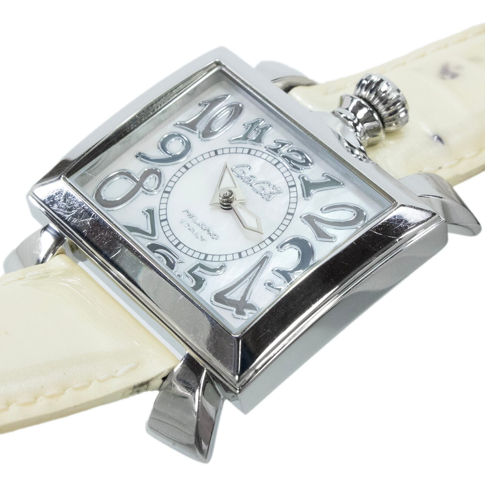稼働品 送料無料 ガガミラノ 腕時計 クォーツ 2針 レディース ナポレオーネ 6030.5 白 シェル盤 白蝶貝 スクエア型 Y2K ロゴ おしゃれ X510
