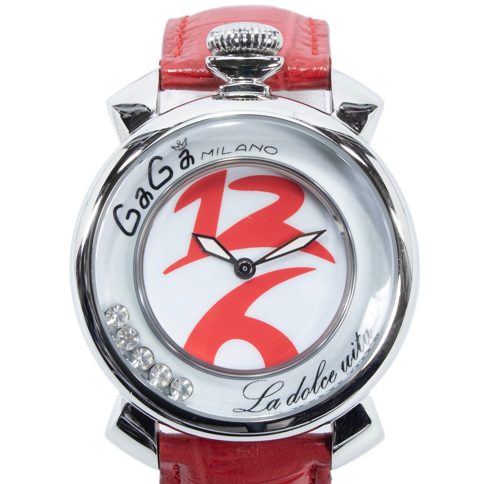 稼働品 送料無料 ガガミラノ 腕時計 クォーツ 2針 メンズ レディース マヌアーレ40mm ラ ドルチェヴィータ 白 赤 Y2K 00s ロゴ 綺麗 X511