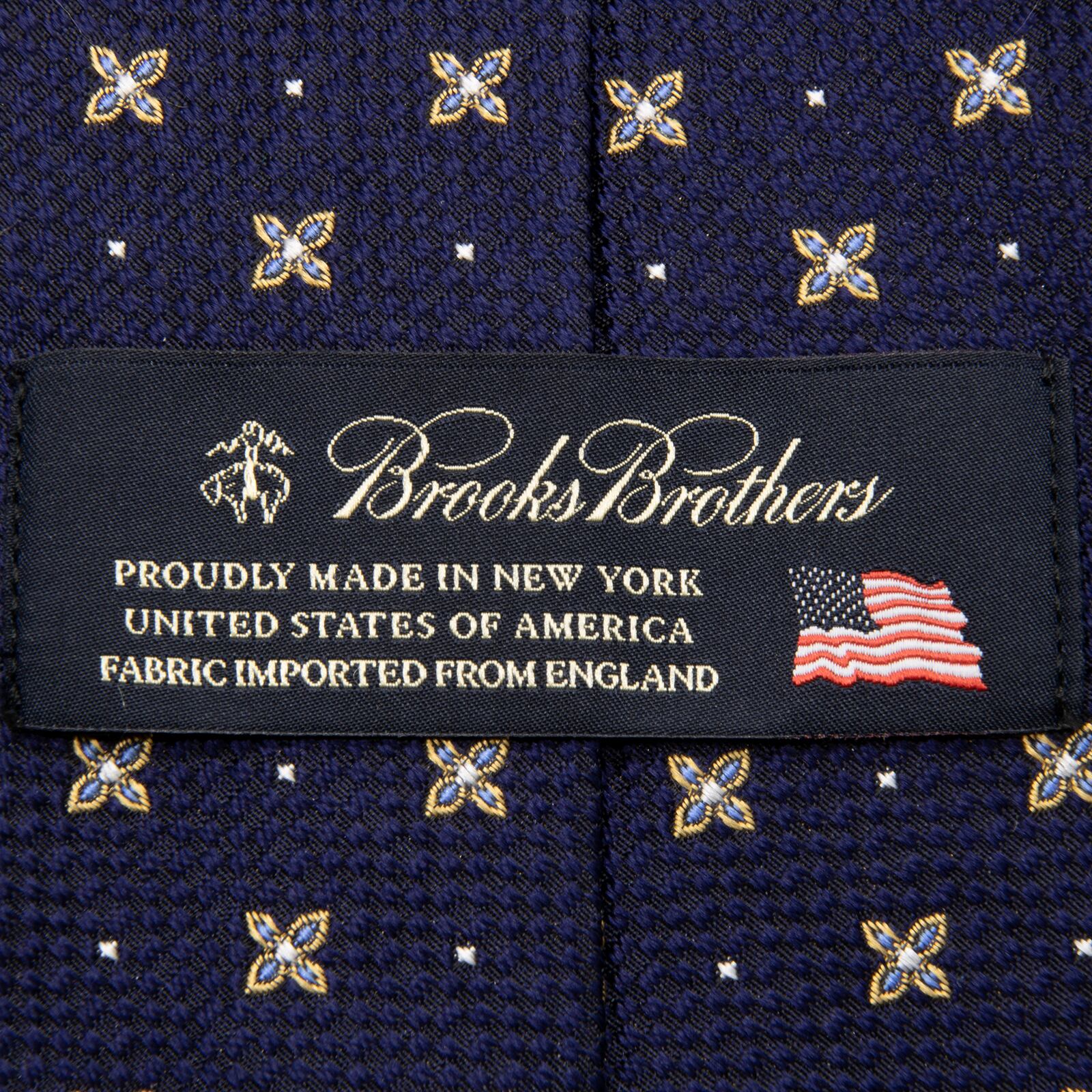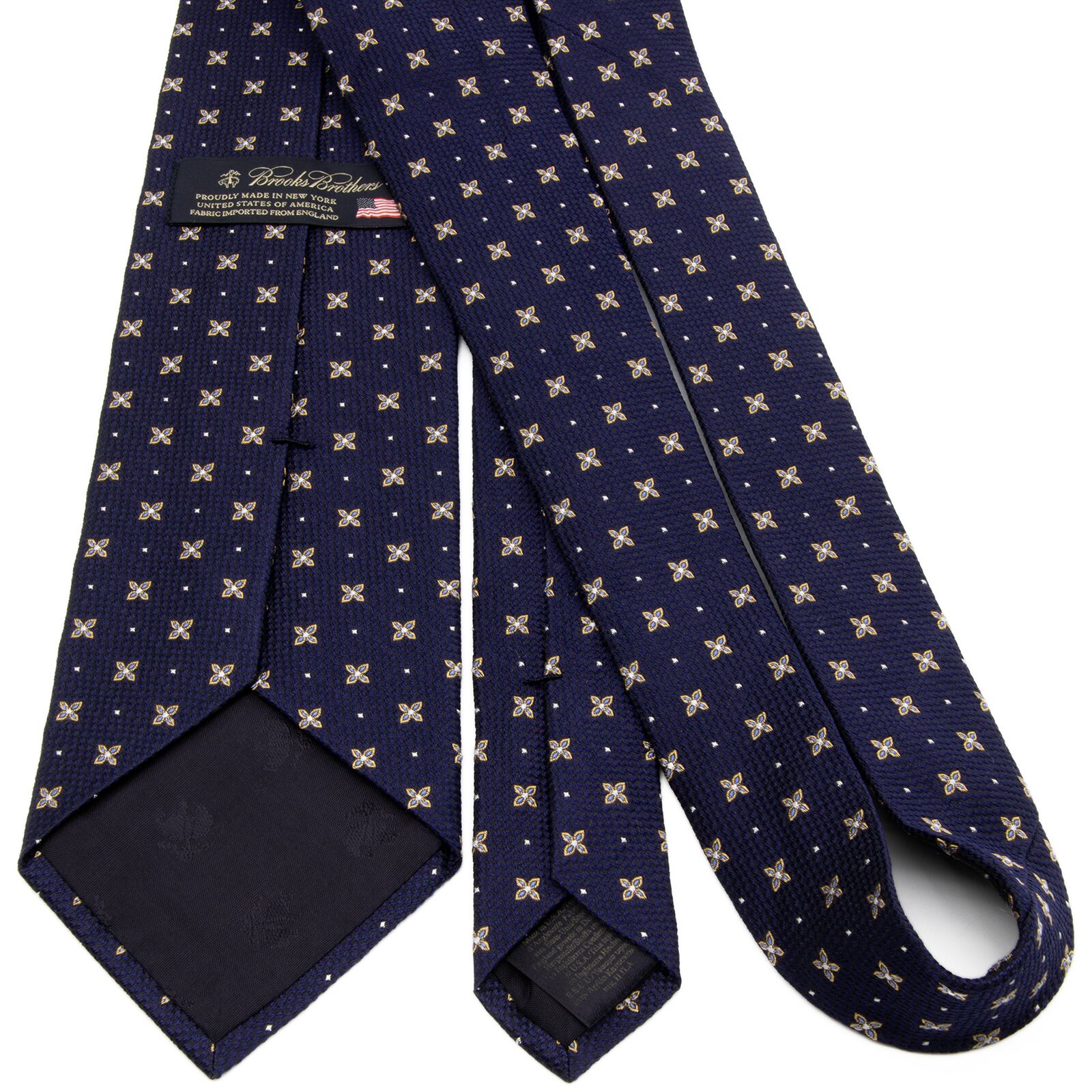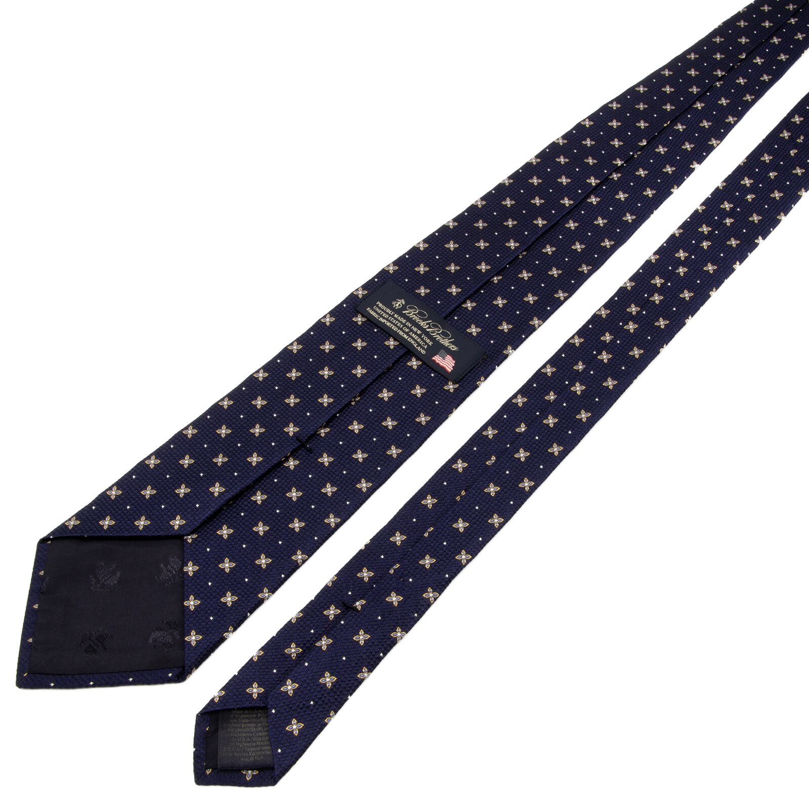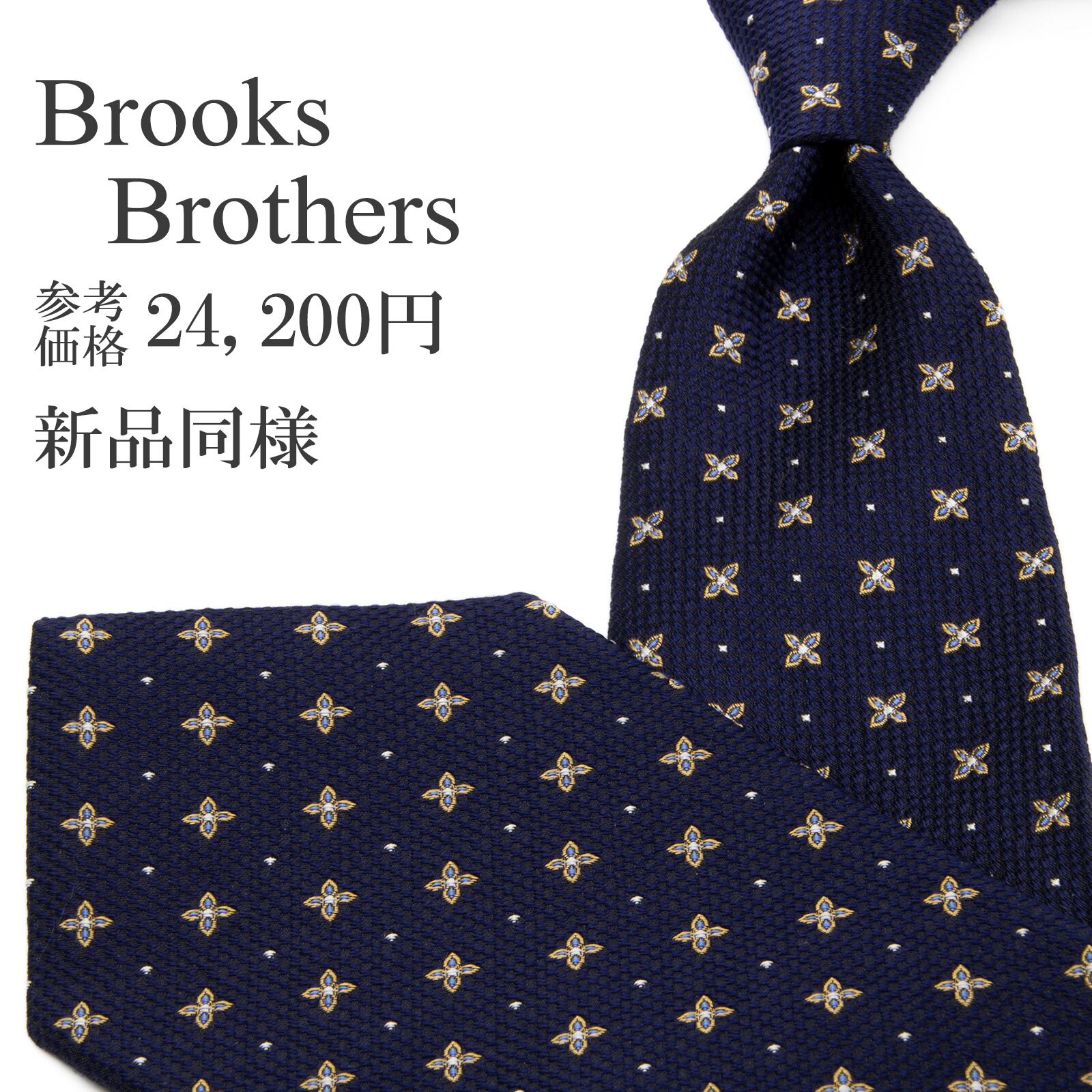 新品同様 送料無料 ブルックスブラザーズ ネクタイ レギュラータイ ジャガード ネイビーブルー ゴールド 白 水色 小紋 ドット 花 綺麗 P385
