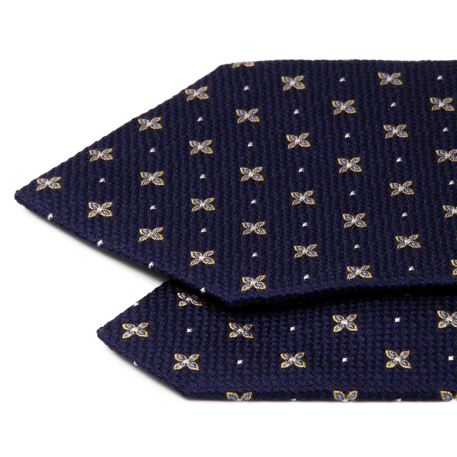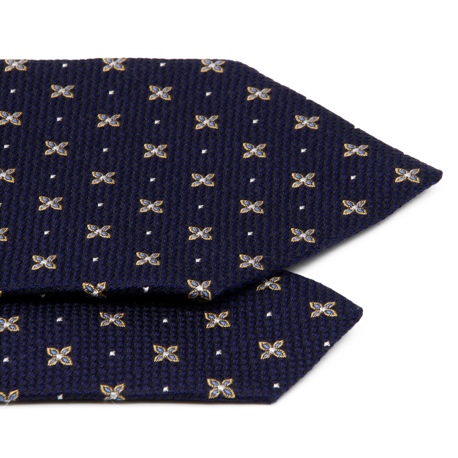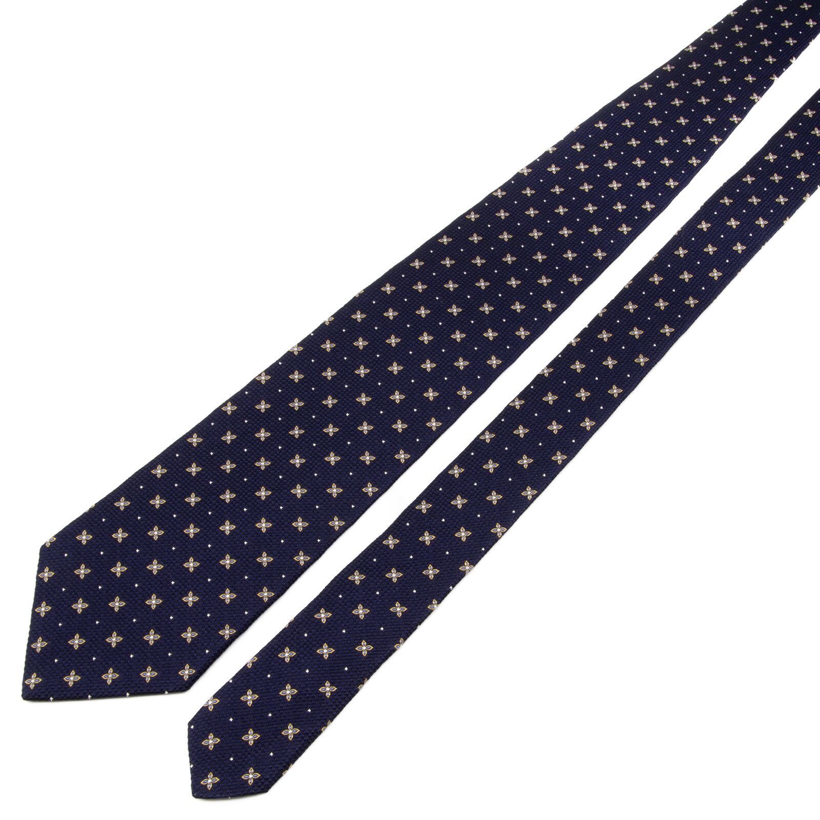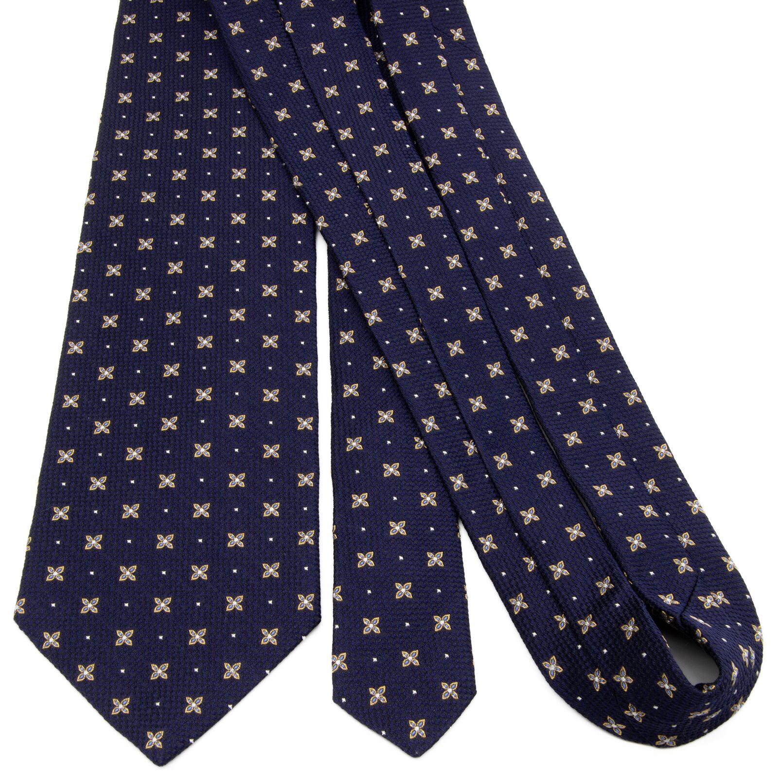 新品同様 送料無料 ブルックスブラザーズ ネクタイ レギュラータイ ジャガード ネイビーブルー ゴールド 白 水色 小紋 ドット 花 綺麗 P385