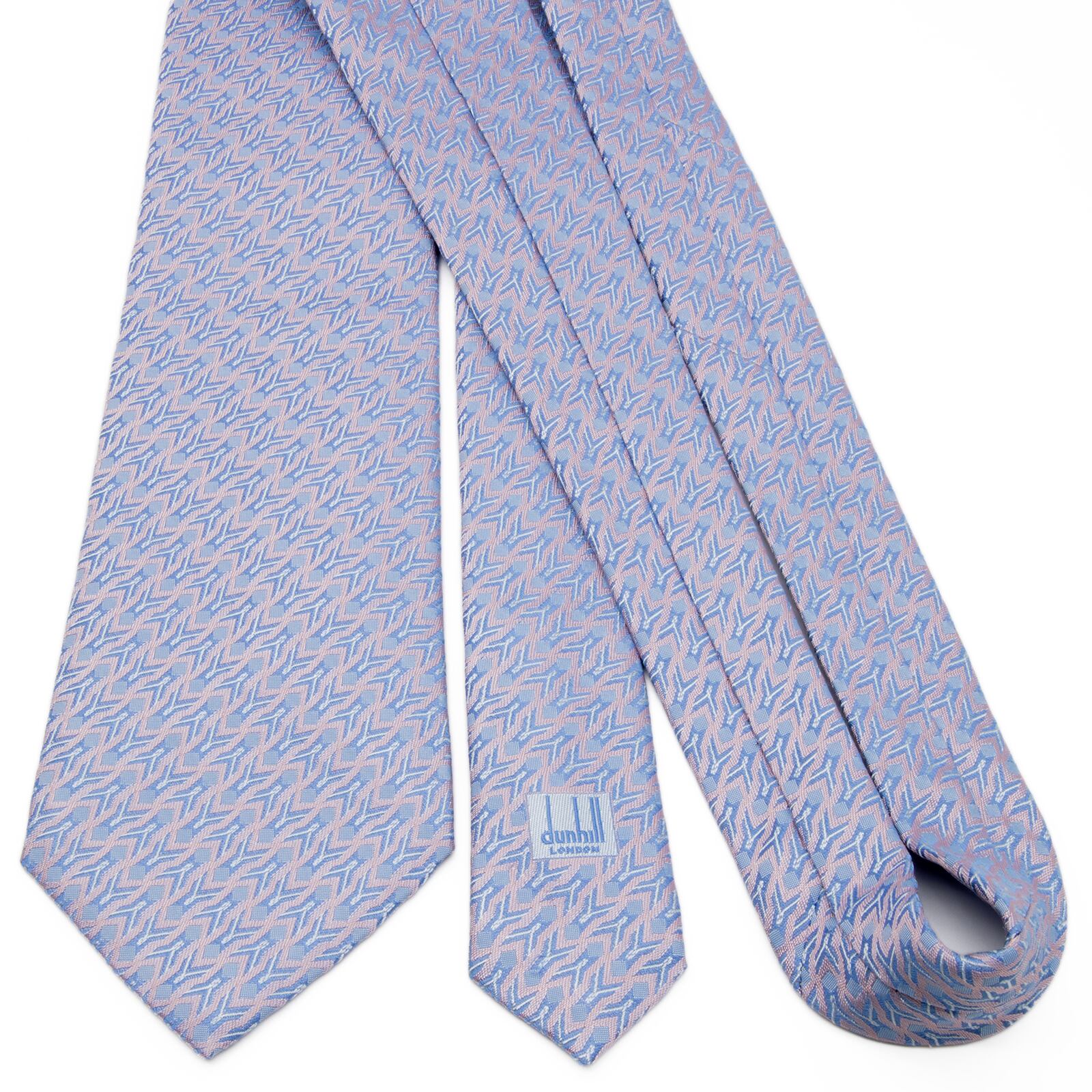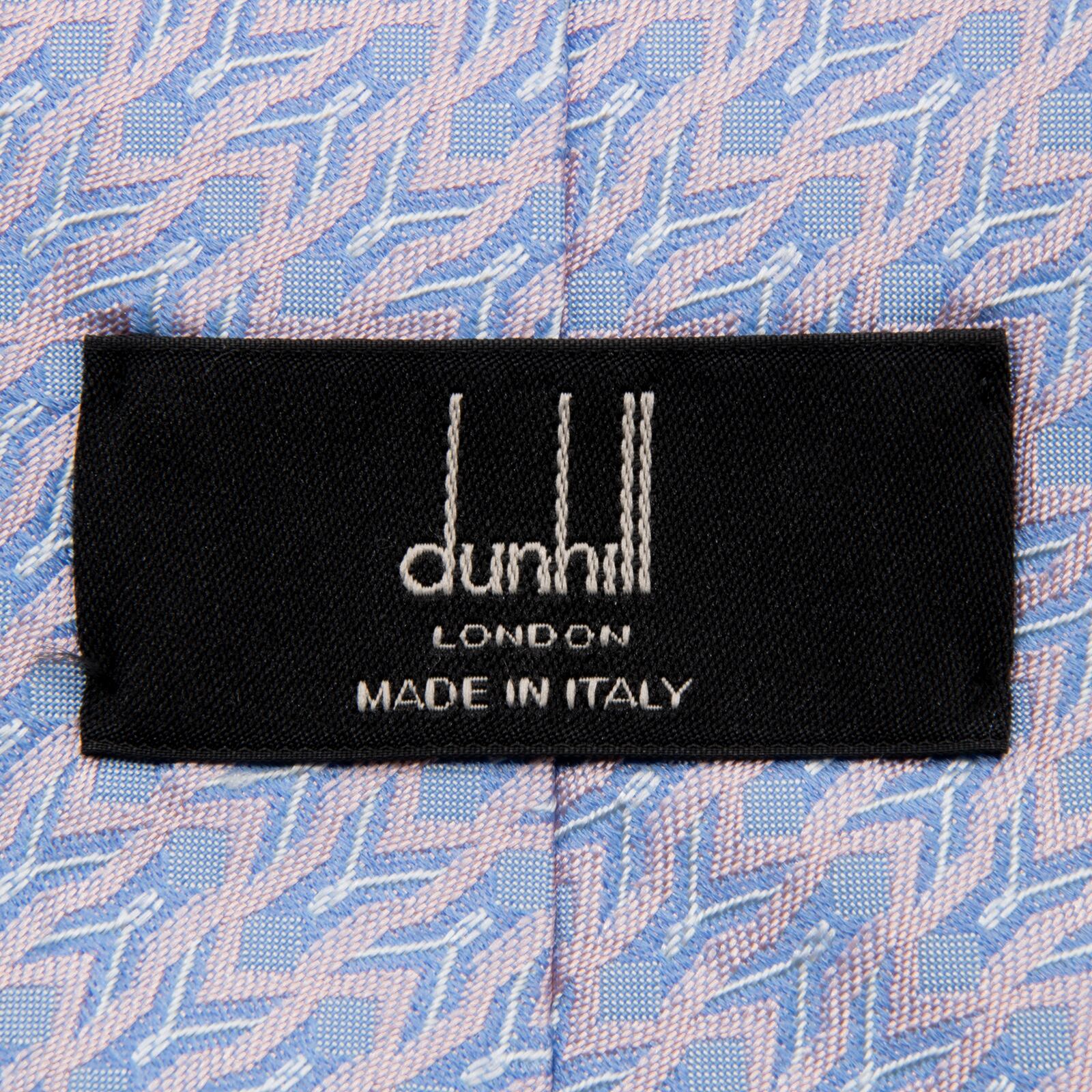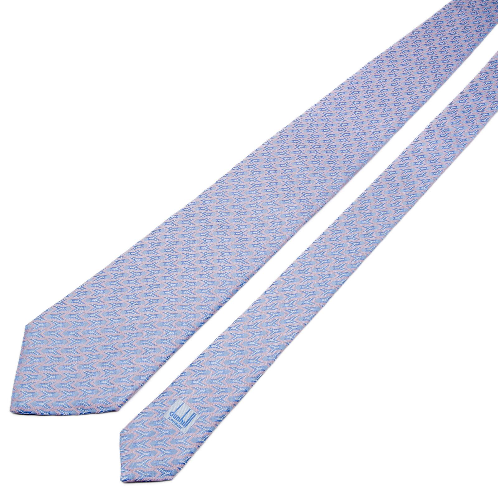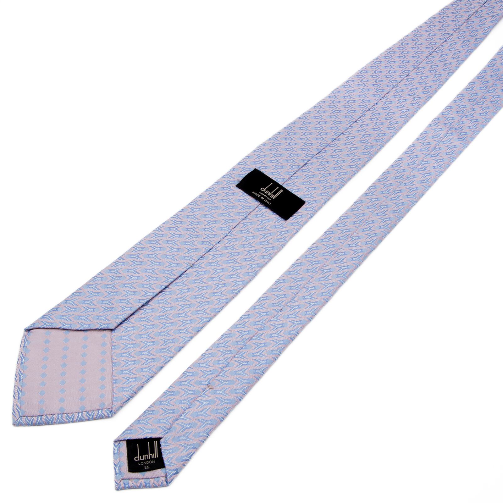 新品同様 送料無料 ダンヒル ネクタイ レギュラータイ ジャガード シルク 水色 パープル シルバー 総柄 光沢 幾何学模様 ハイブランド P523