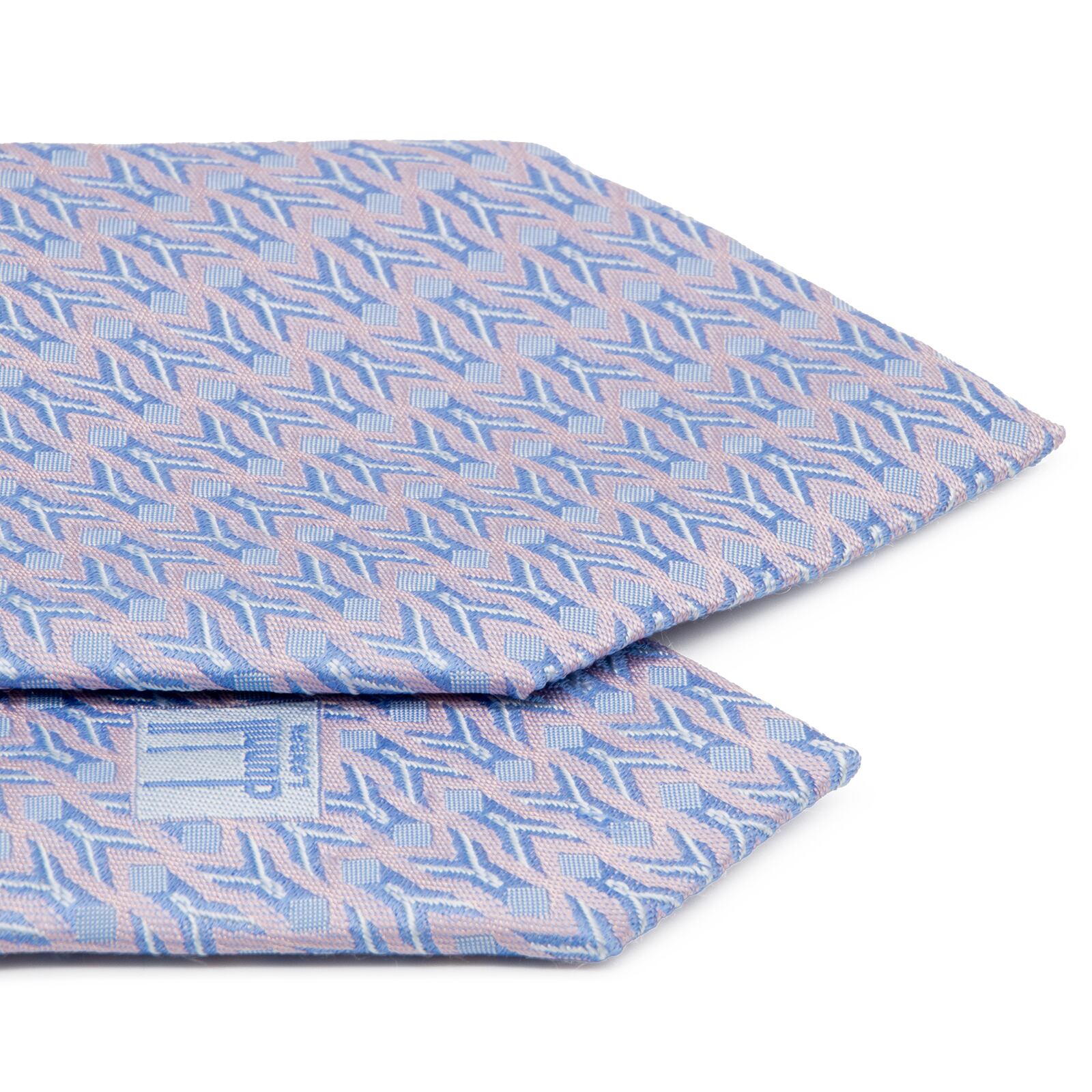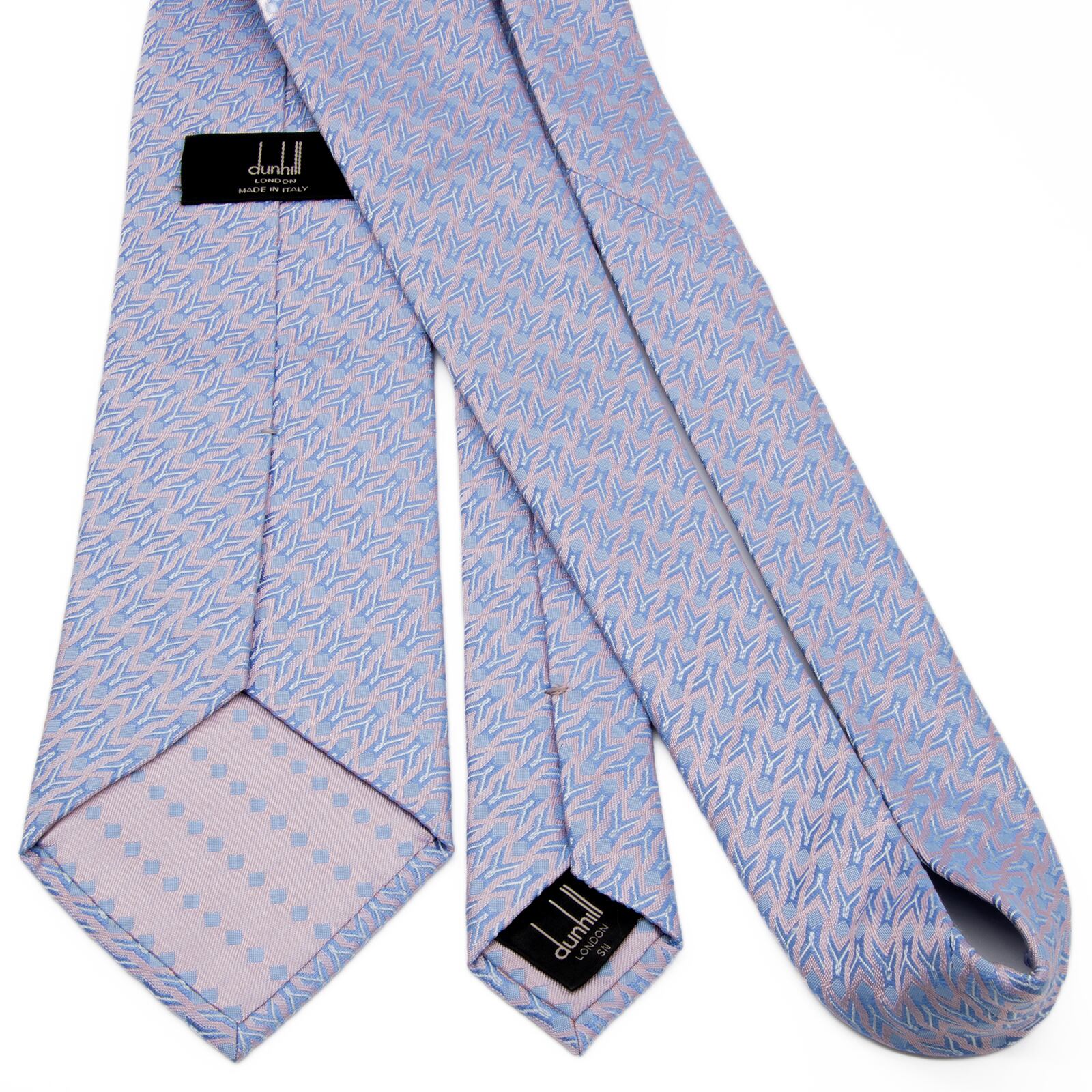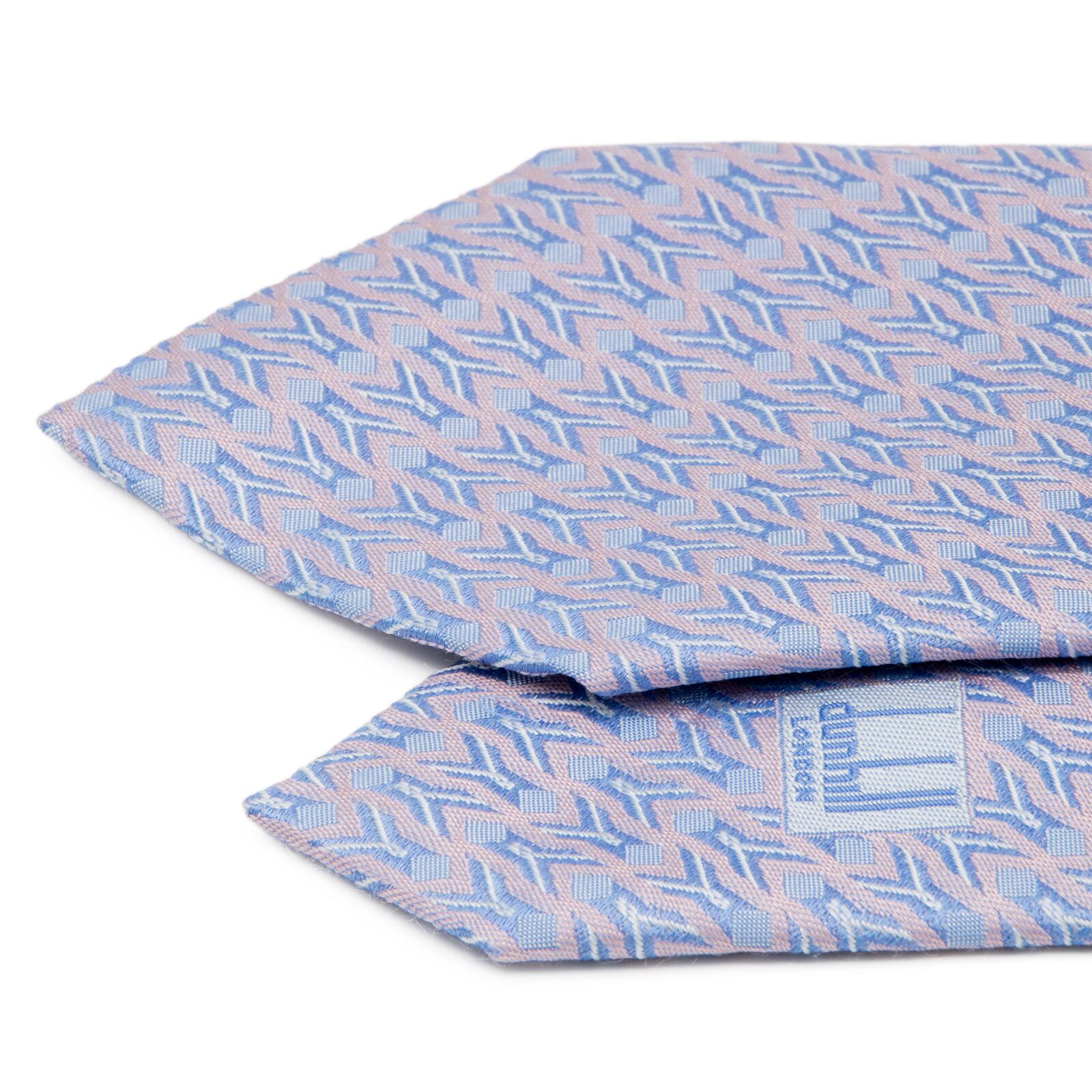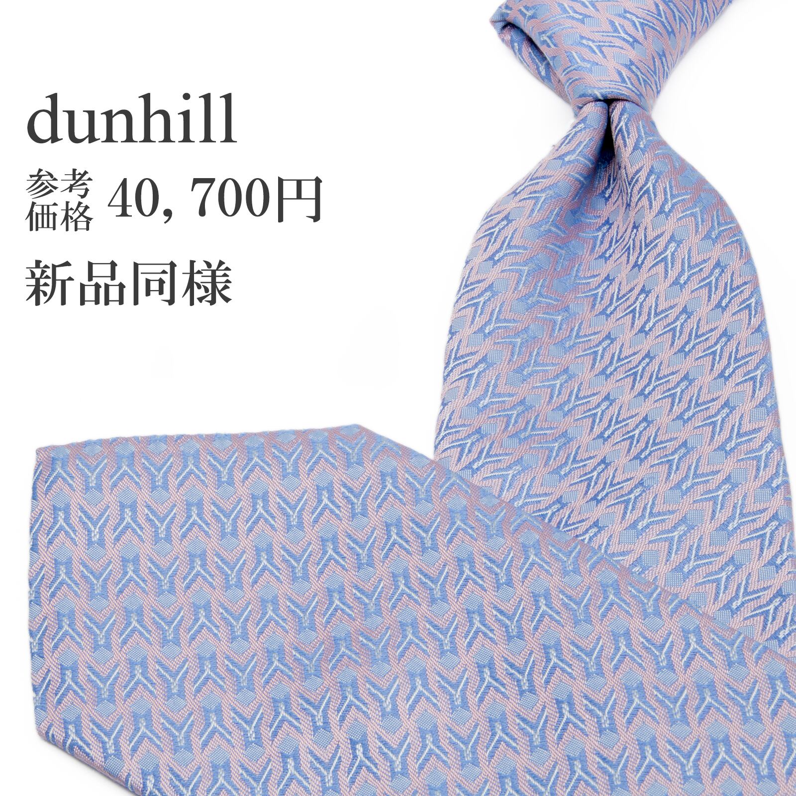 新品同様 送料無料 ダンヒル ネクタイ レギュラータイ ジャガード シルク 水色 パープル シルバー 総柄 光沢 幾何学模様 ハイブランド P523