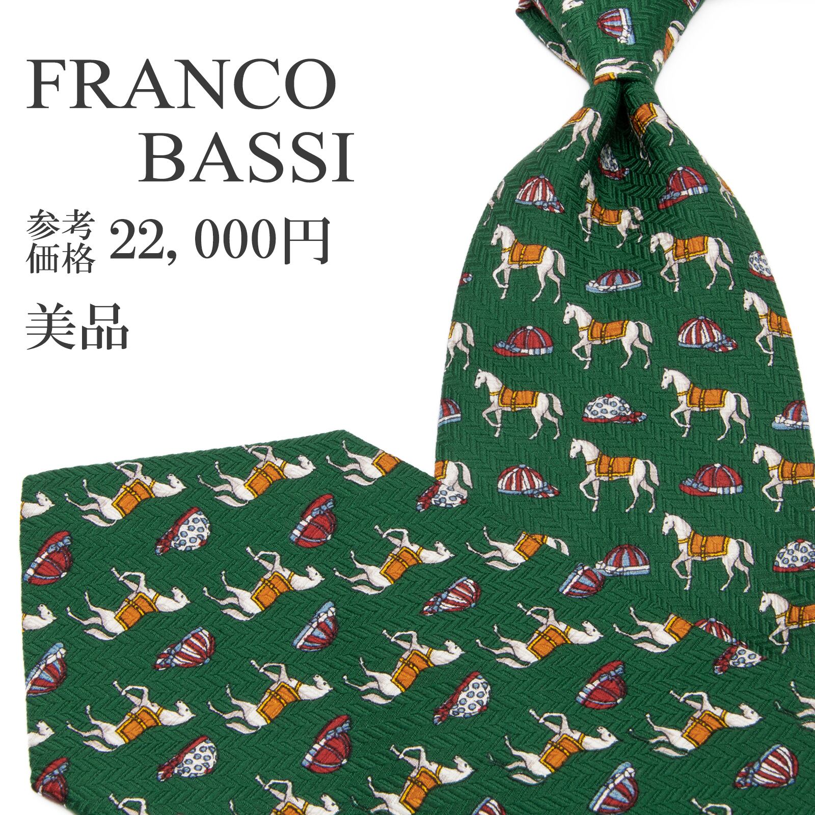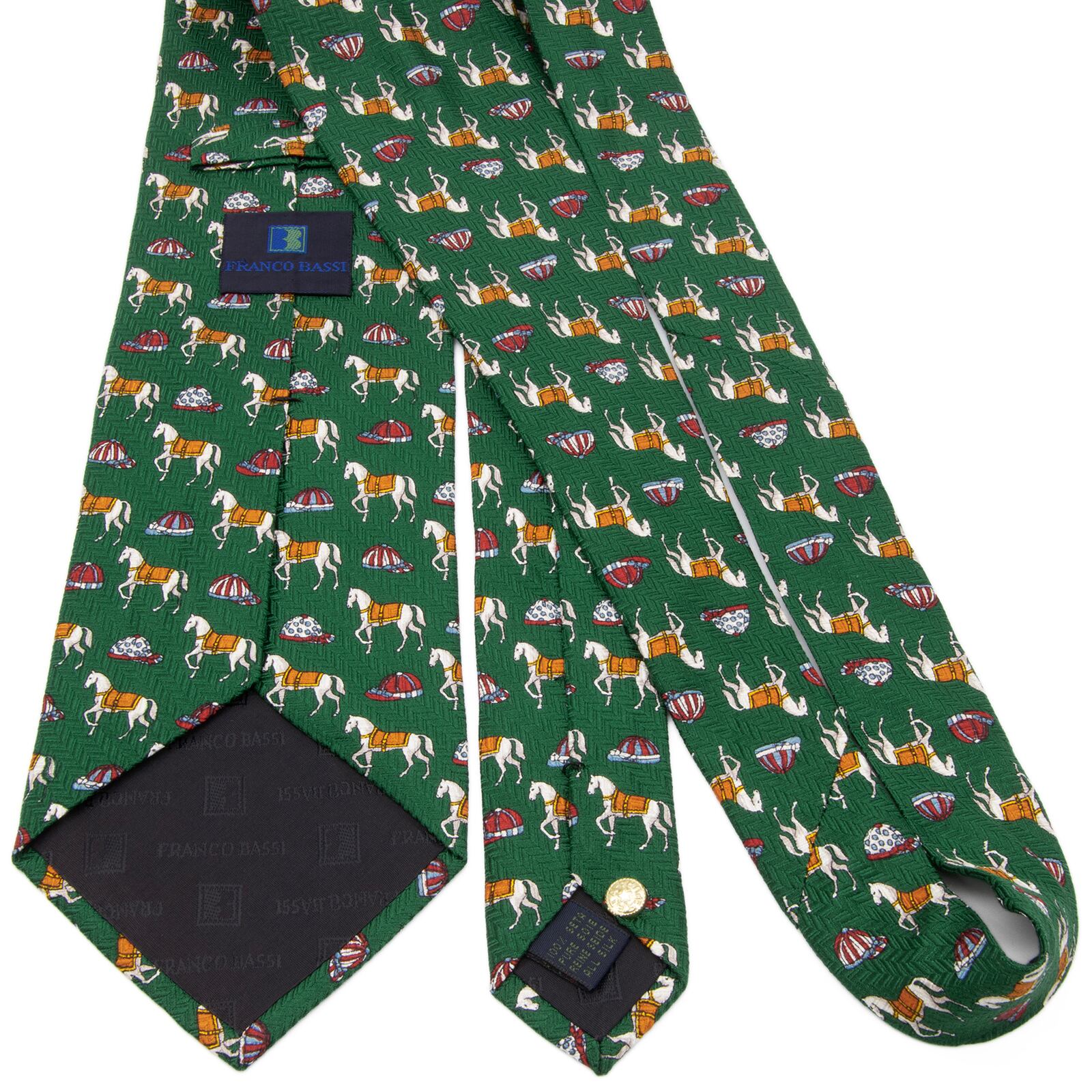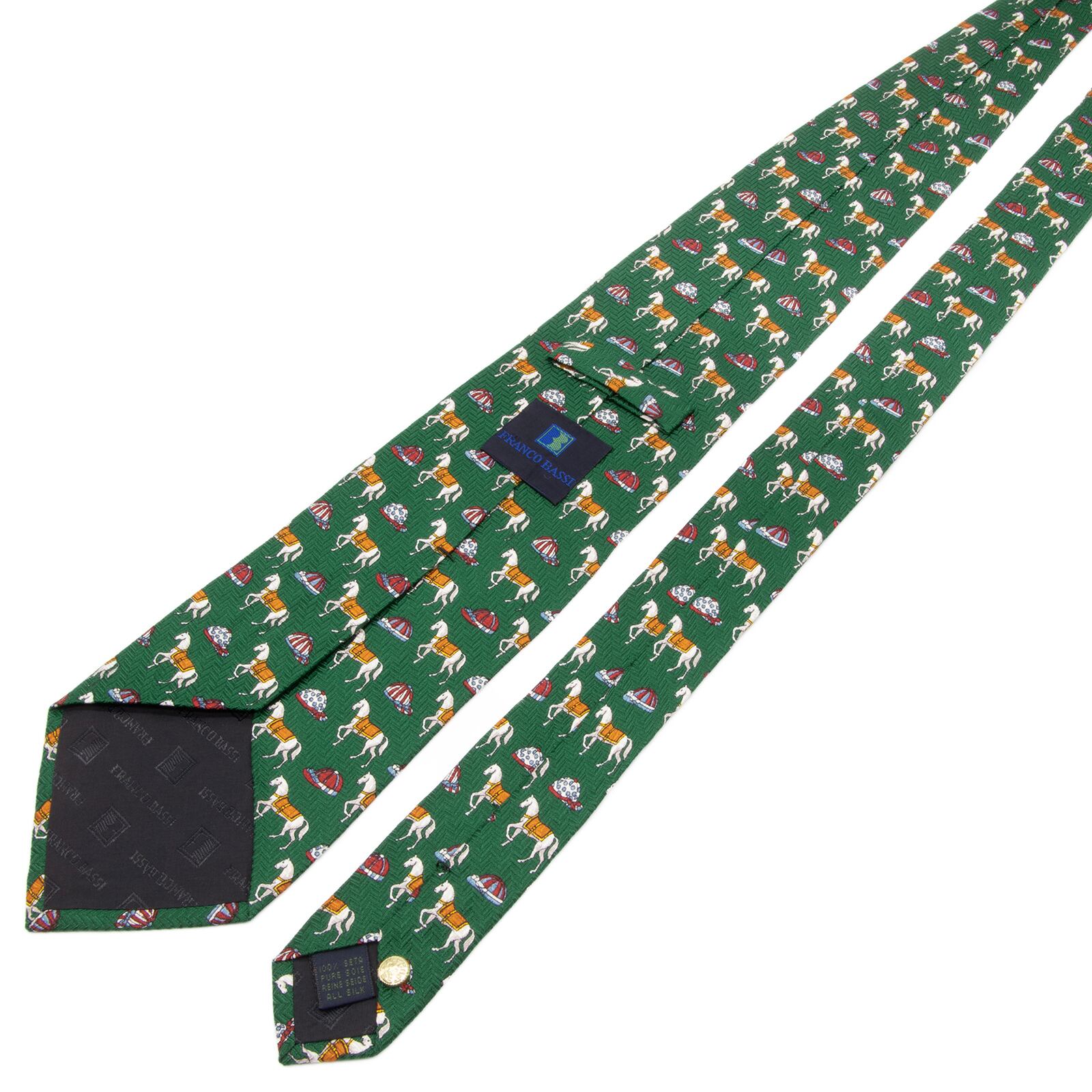 送料無料 フランコバッシ ネクタイ ジャガード 緑 グリーン オレンジ 赤 白 水色 小紋 総柄 Y2K 馬 ホース 帽子 ハイブランド 綺麗 P576