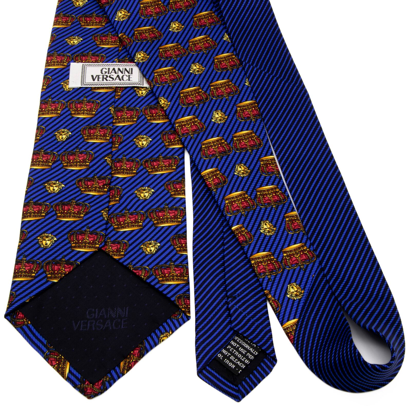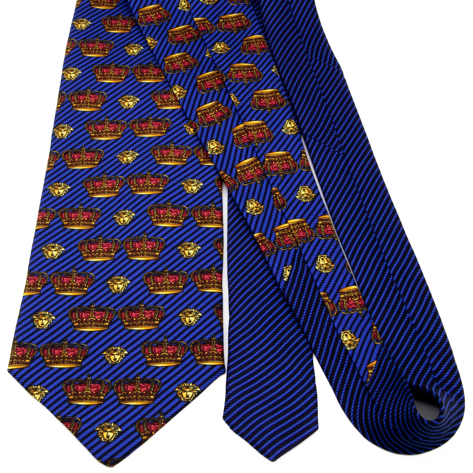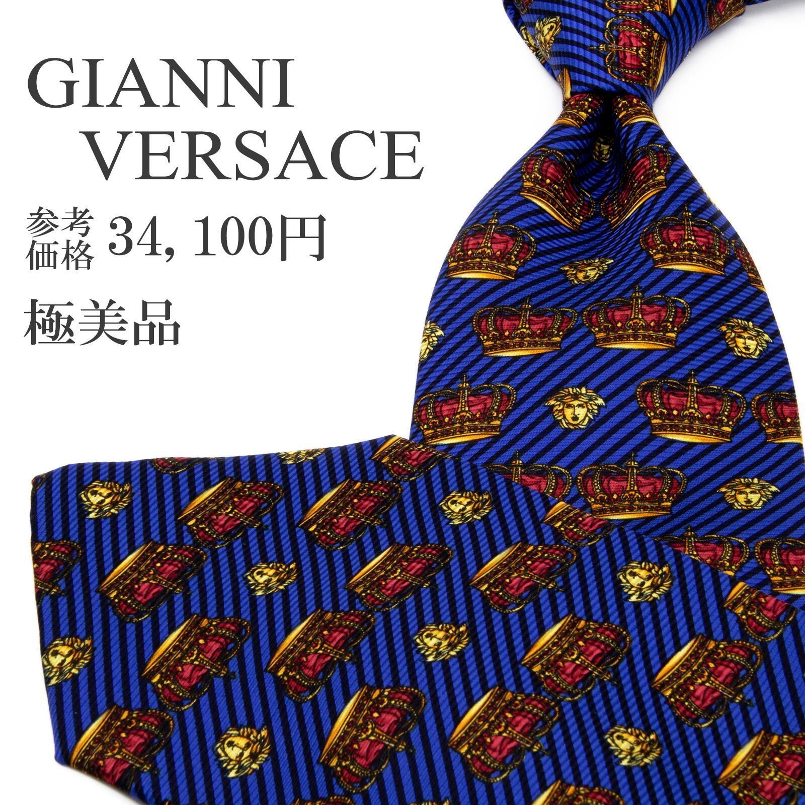 送料無料 ジャンニヴェルサーチェ ネクタイ ジャガードタイ クレリックタイ 青 ブルー 黒 赤 黄色 小紋 Y2K メドゥーサロゴ 王冠 綺麗 P696