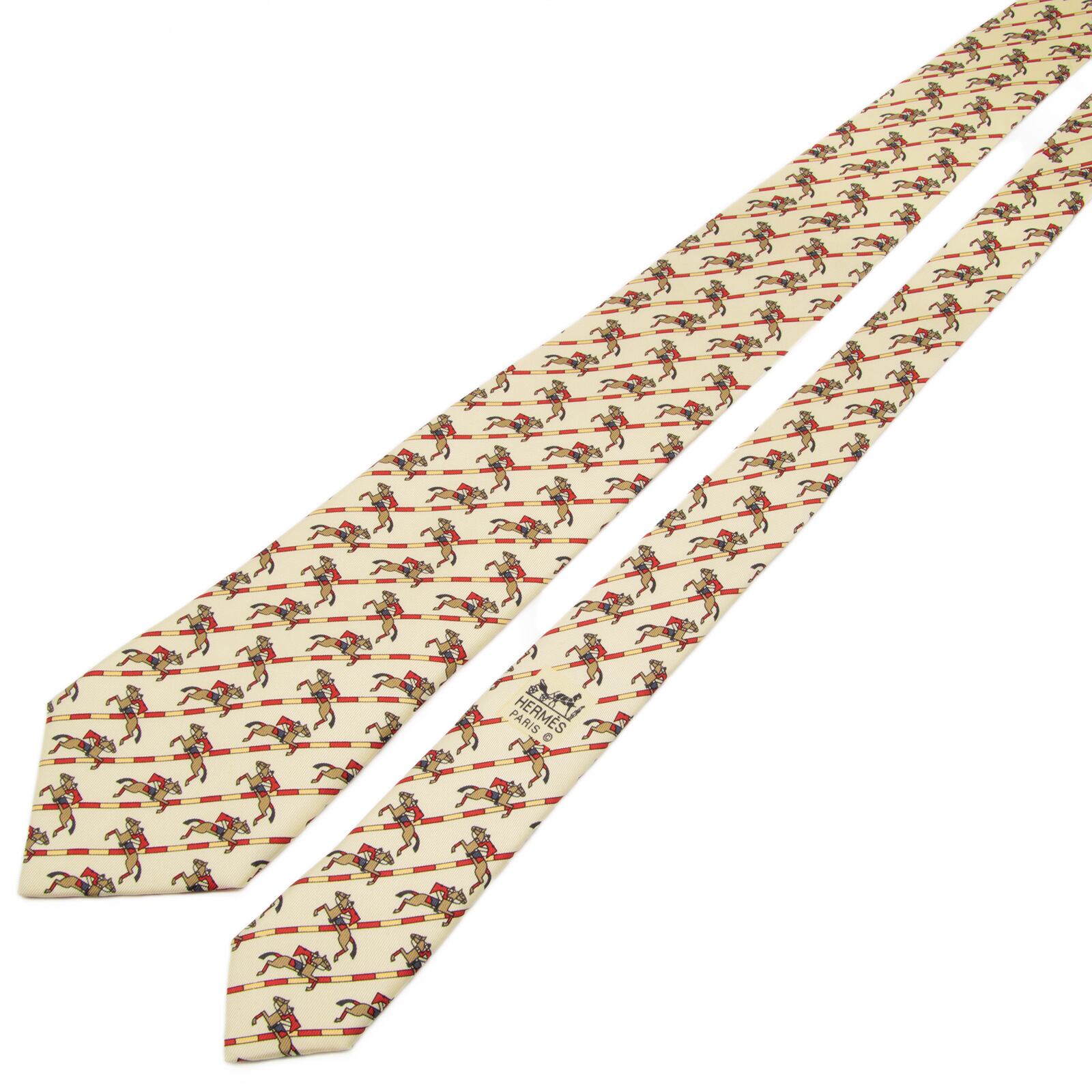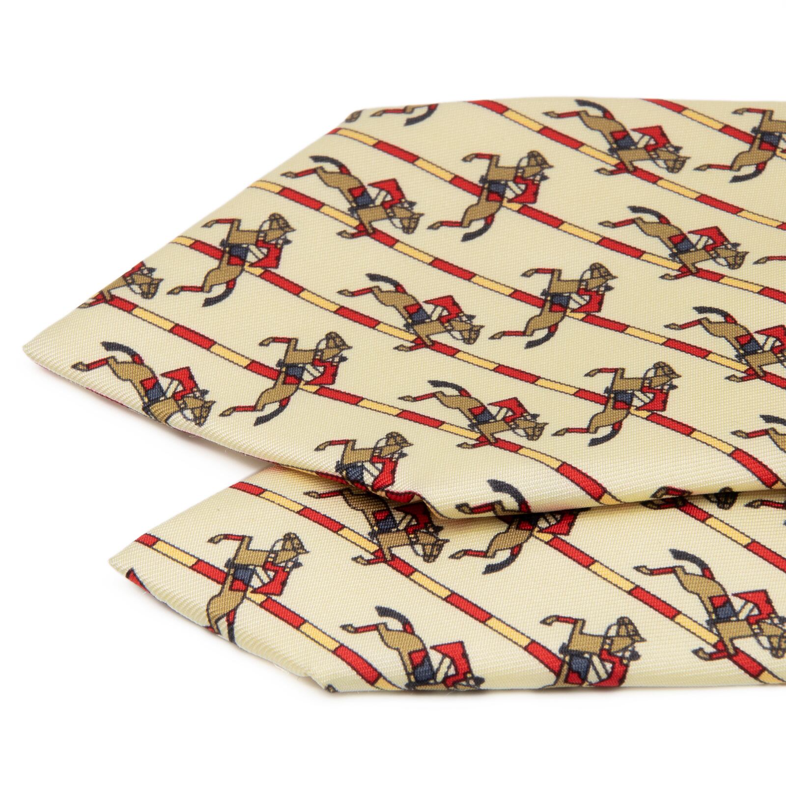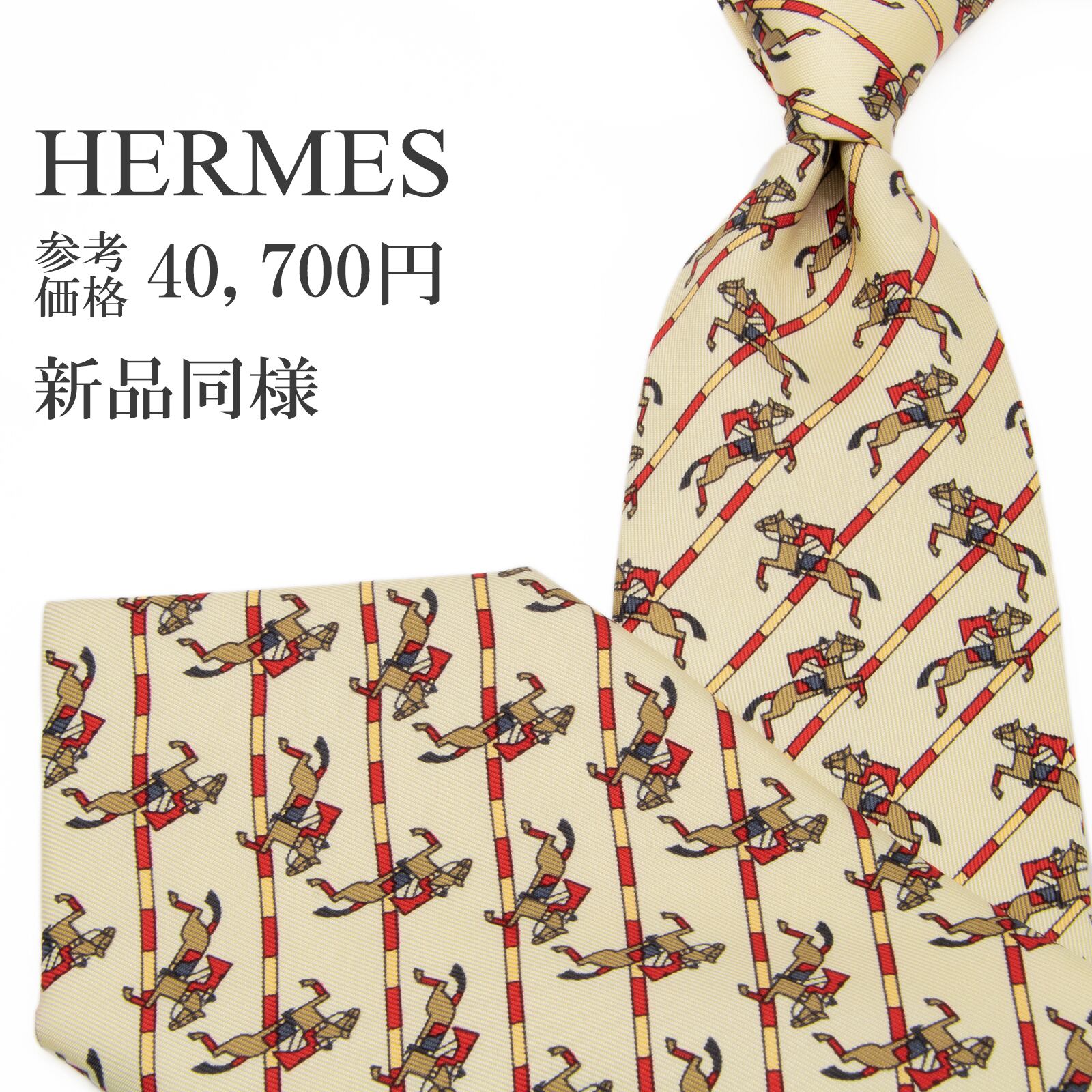 新品同様 送料無料 エルメス ネクタイ レギュラータイ シルク ベージュ 茶色 赤 パターンストライプ 乗馬 ホース ハイブランド 綺麗 P814
