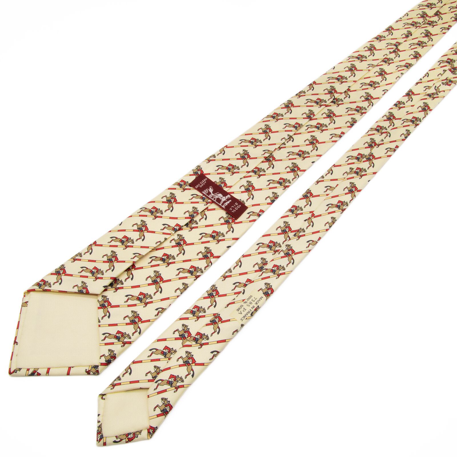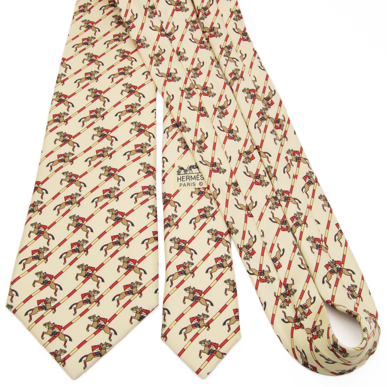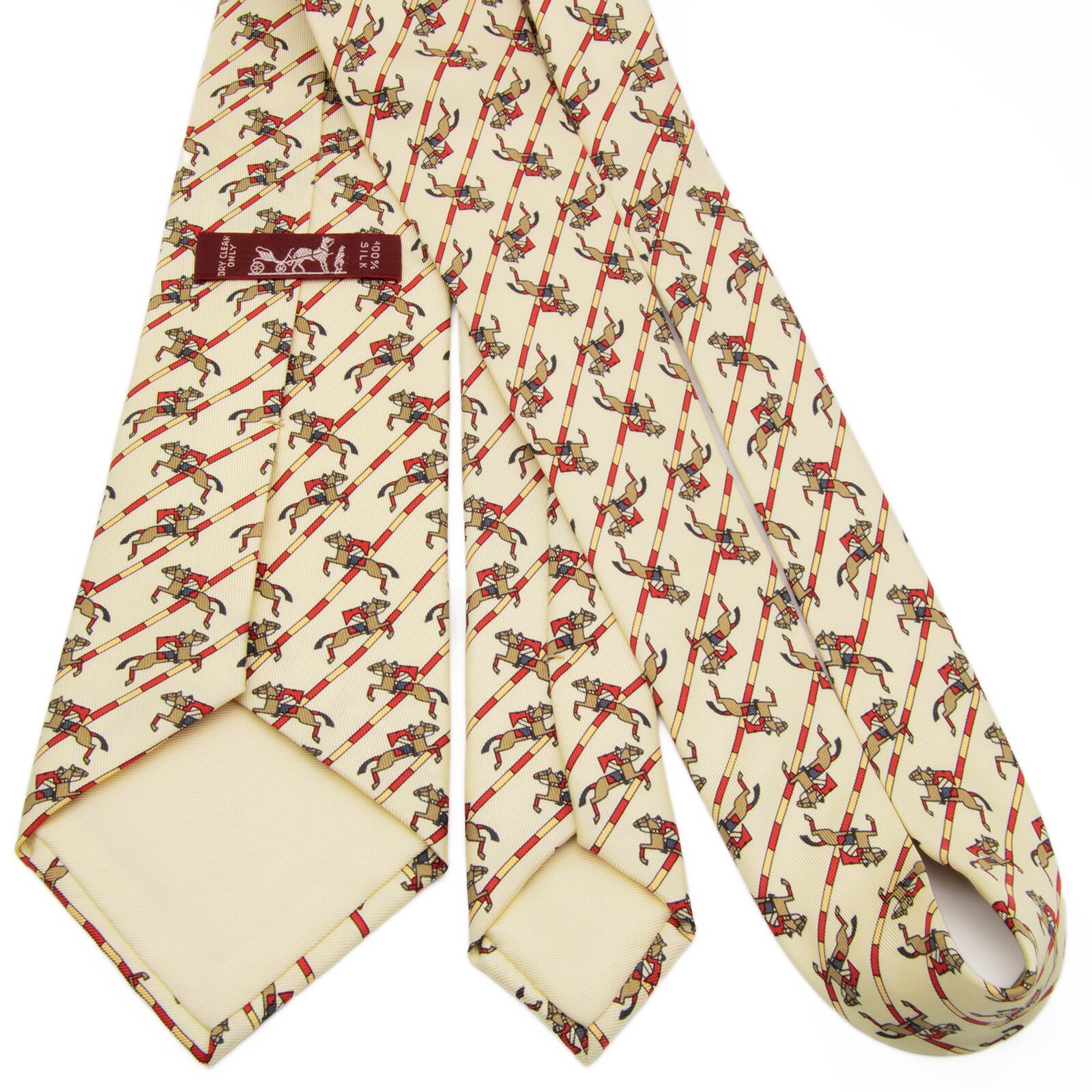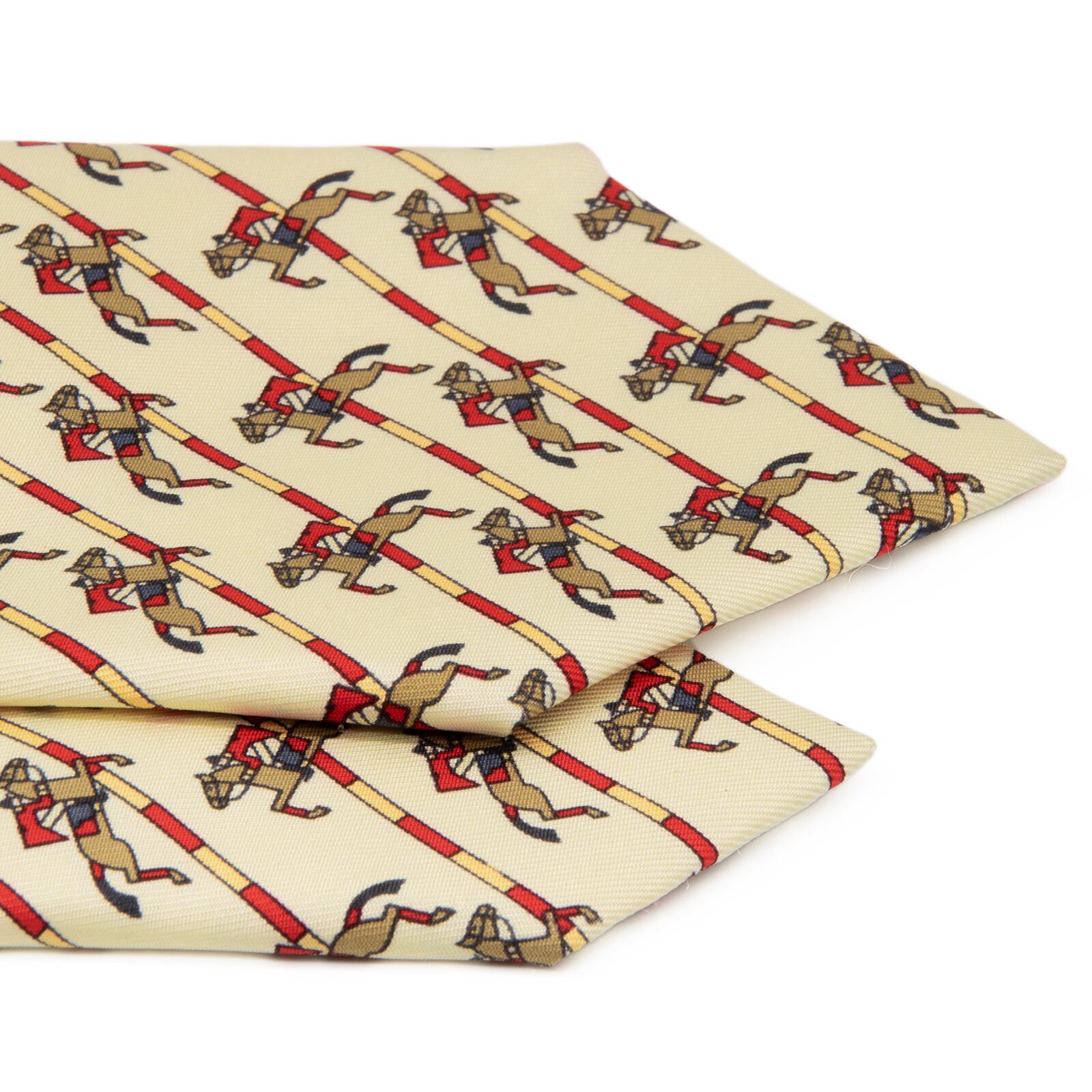 新品同様 送料無料 エルメス ネクタイ レギュラータイ シルク ベージュ 茶色 赤 パターンストライプ 乗馬 ホース ハイブランド 綺麗 P814
