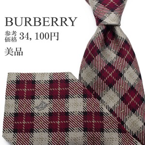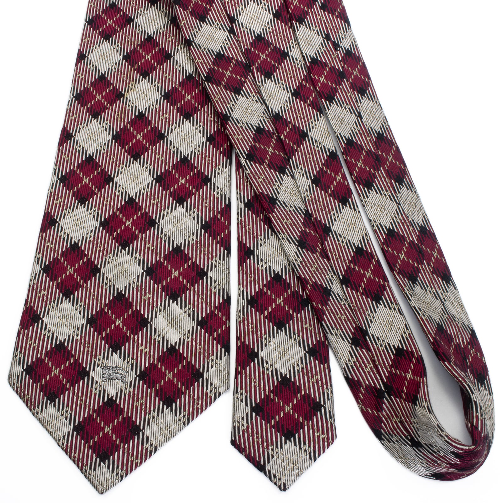 送料無料 バーバリー ネクタイ レギュラータイ ジャガード 赤紫色 ワインレッド ベージュ 黒 チェック 馬 ホースロゴ ハイブランド S612