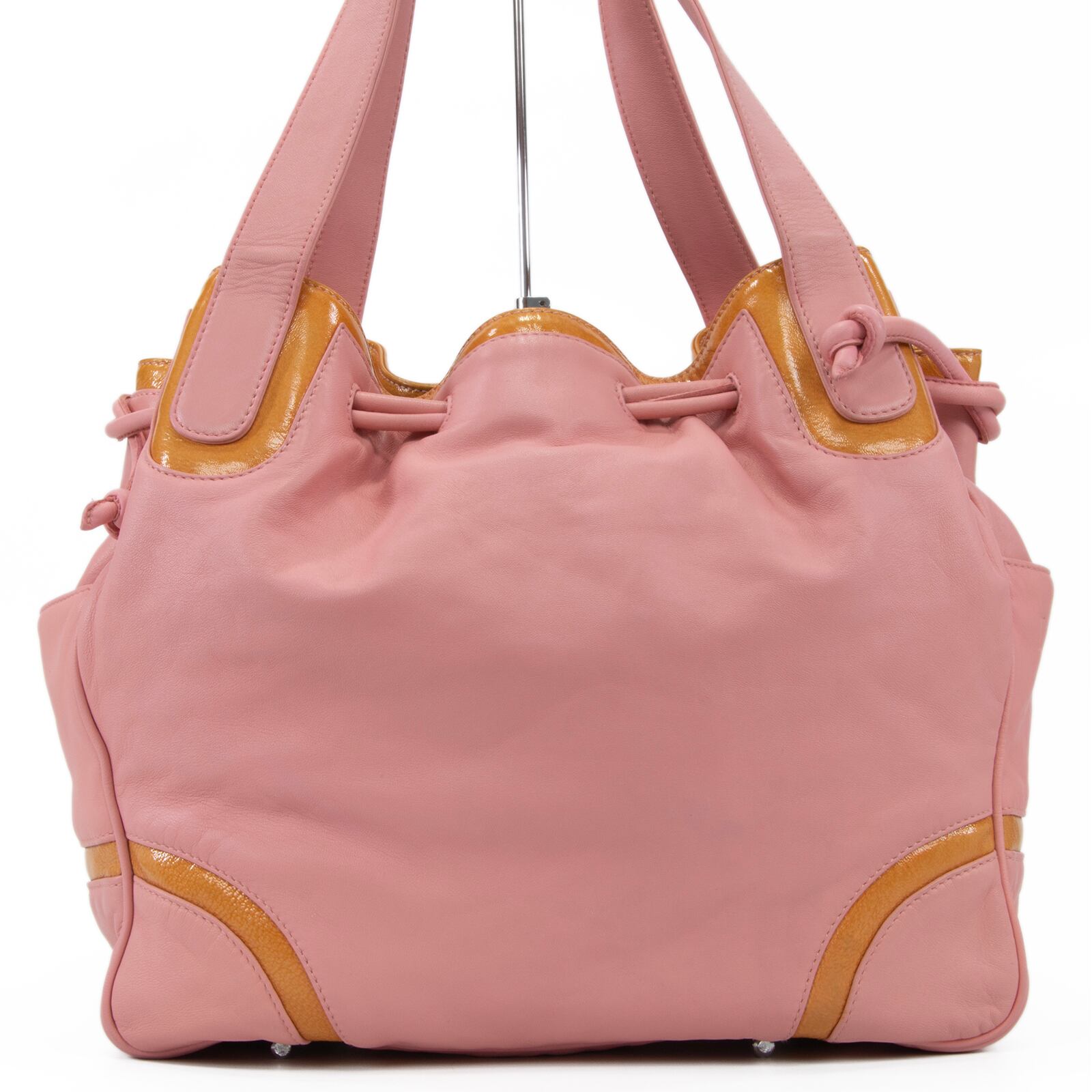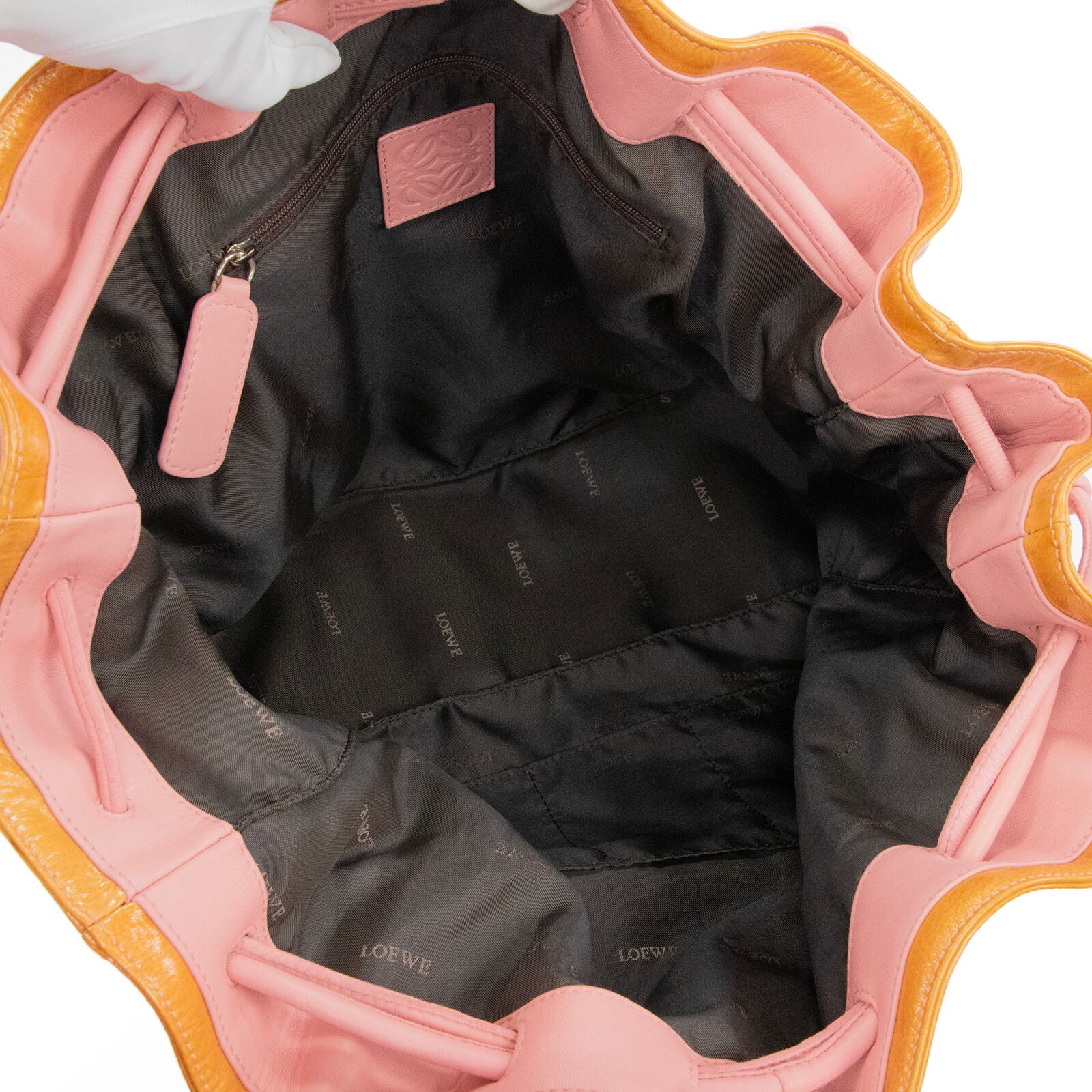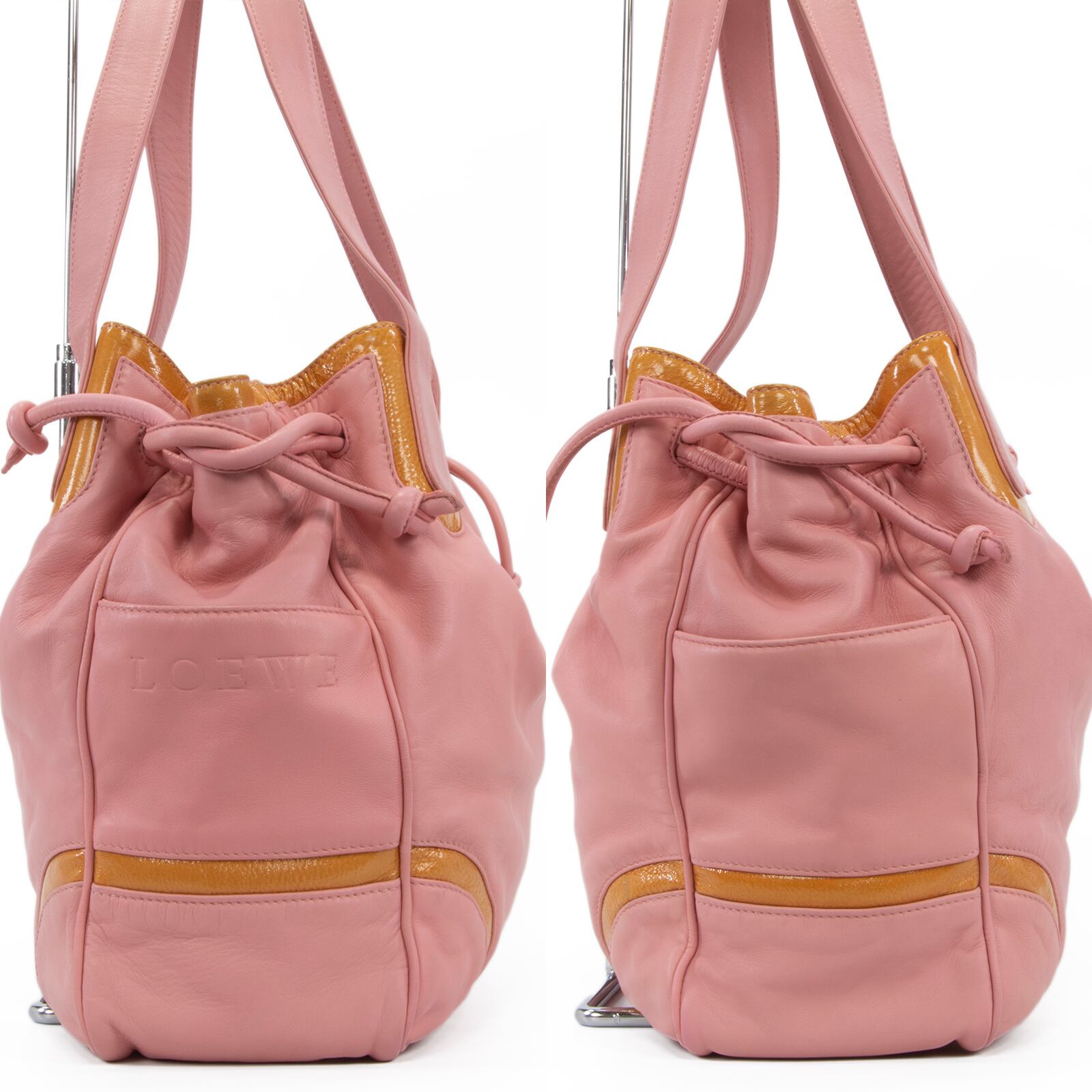 本物 送料無料 ロエベ ハンドバッグ ショルダーバッグ レディース アナグラム ピンク オレンジ レア ロゴ マーク かわいい 鞄 バック I303