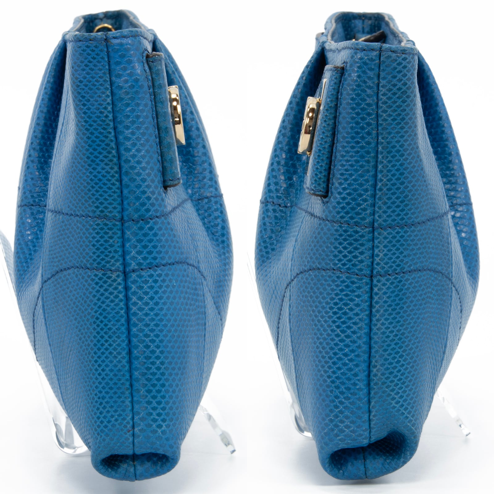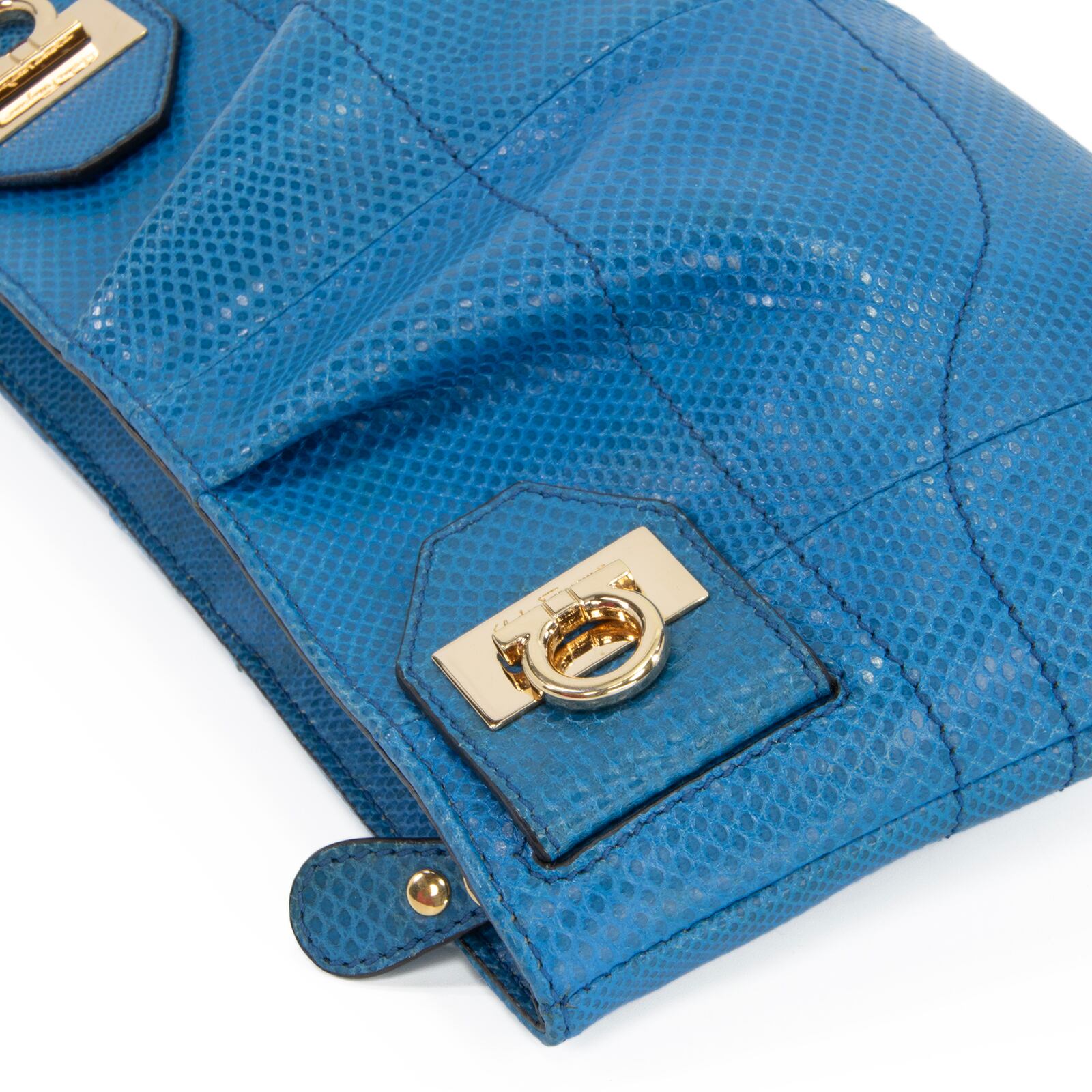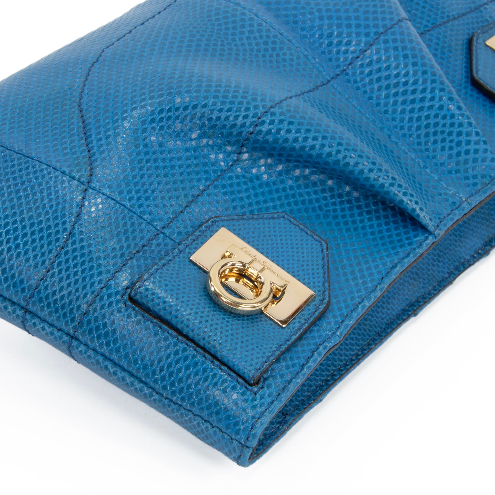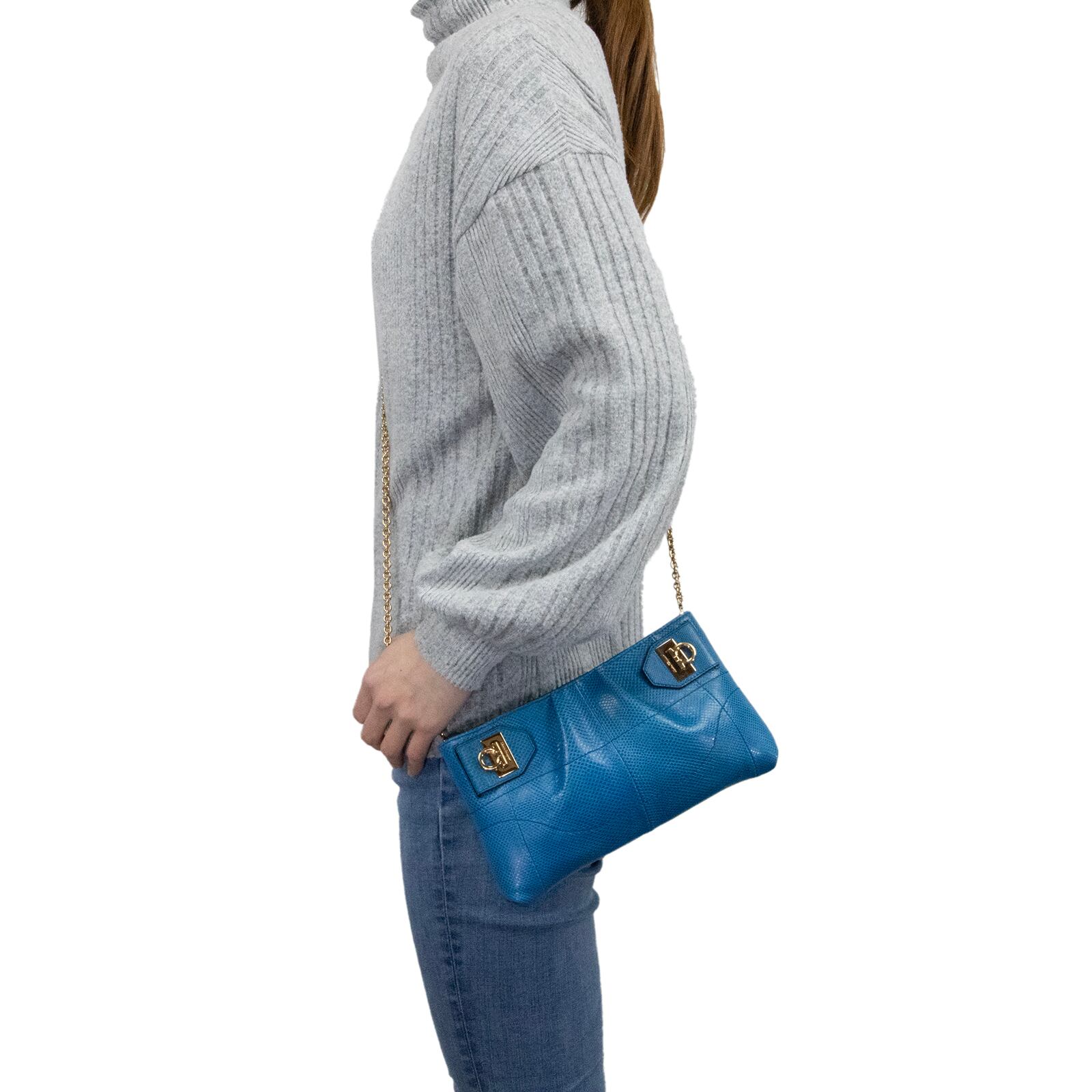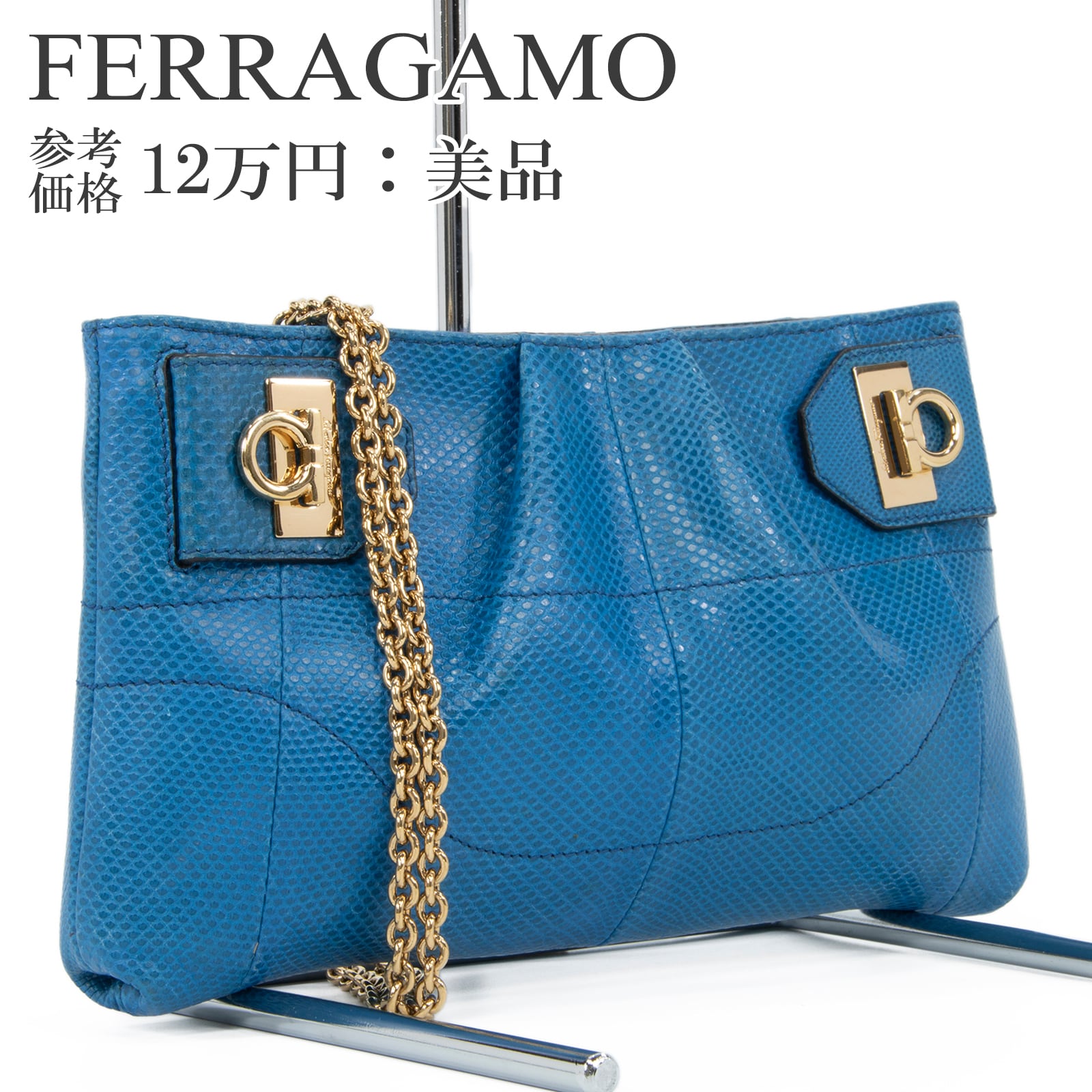 本物 送料無料 フェラガモ ショルダーバッグ レディース リザード型押し ガンチーニ 青 ブルー Y2K 小さめ パーティーバック チェーン I304