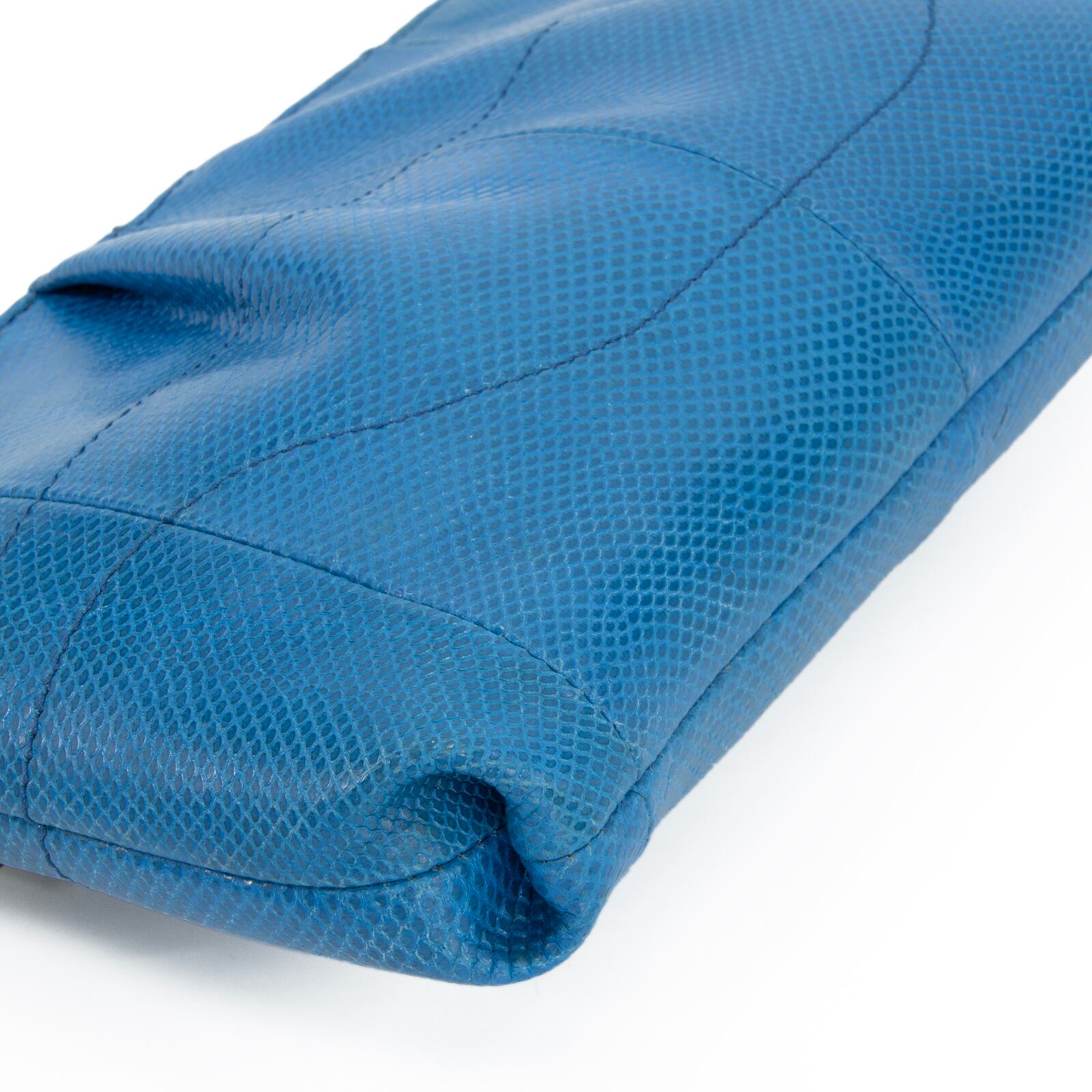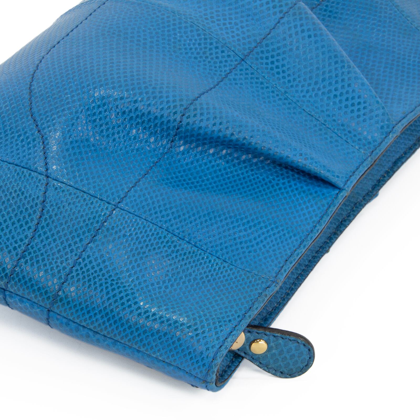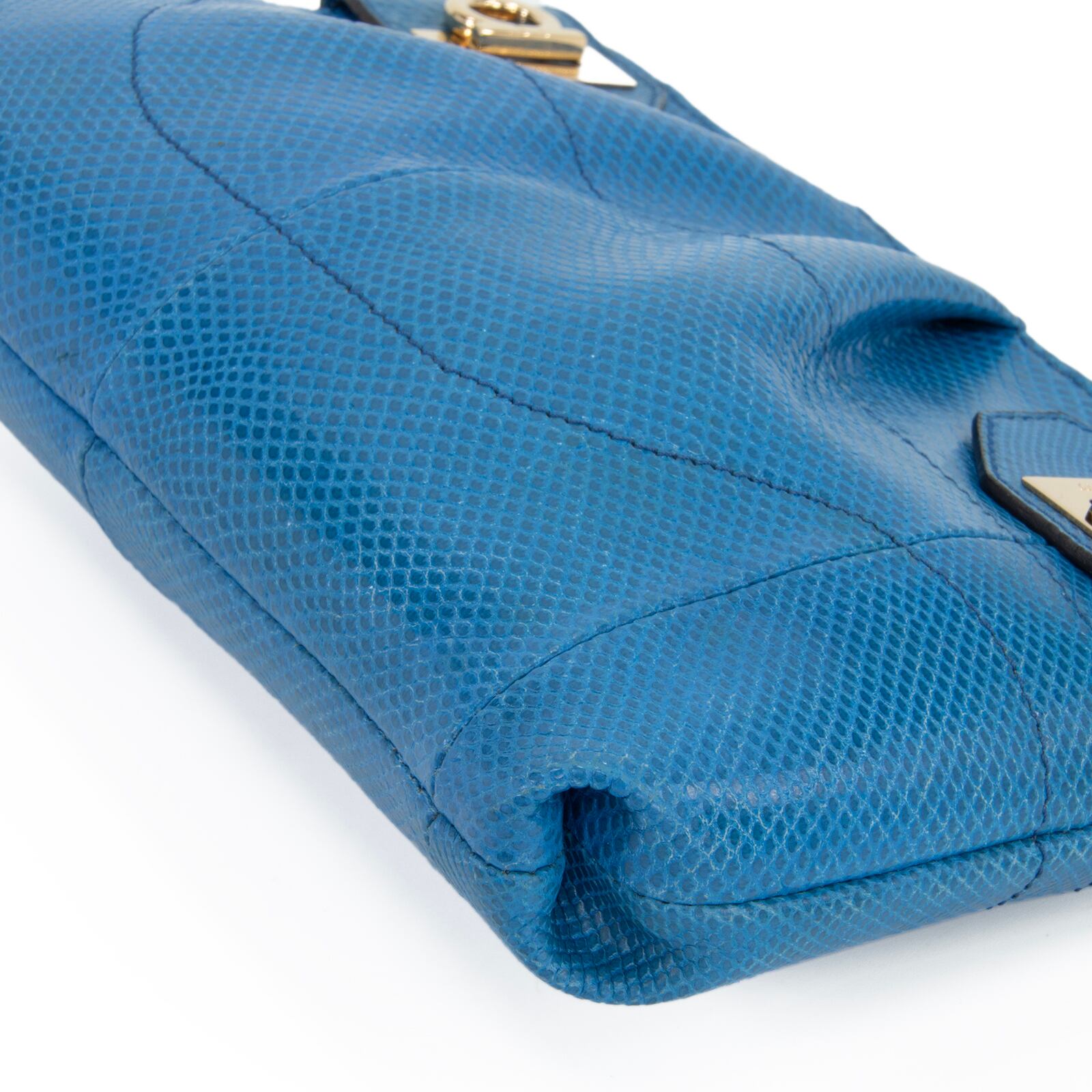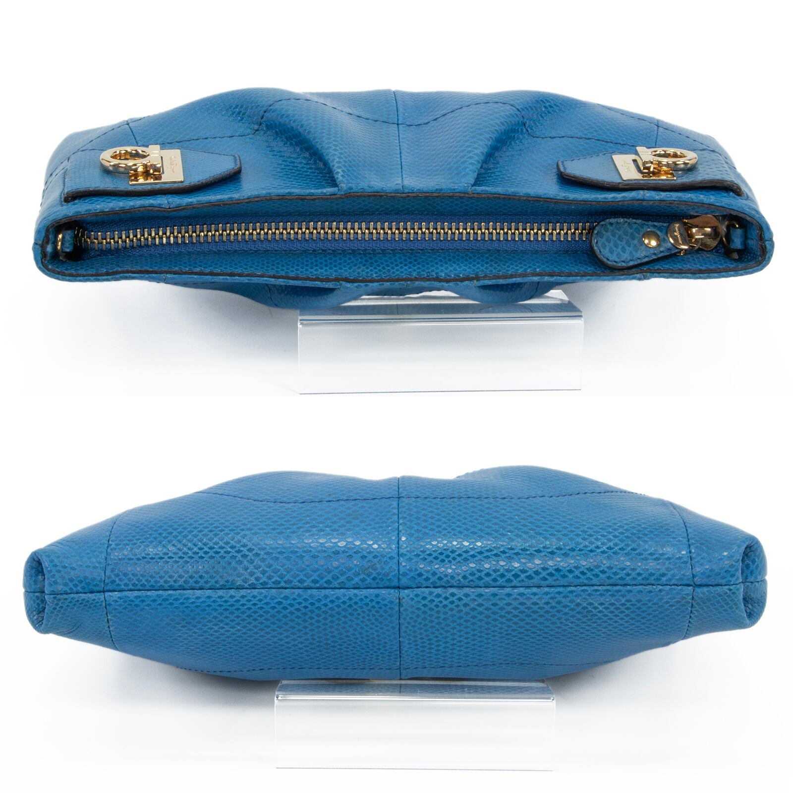 こちらは、爽やかで洗練されたブルーと繊細なリザード柄のレザーが絶妙に調和した、フェラガモのガンチーニ・ショルダーバッグでございます。