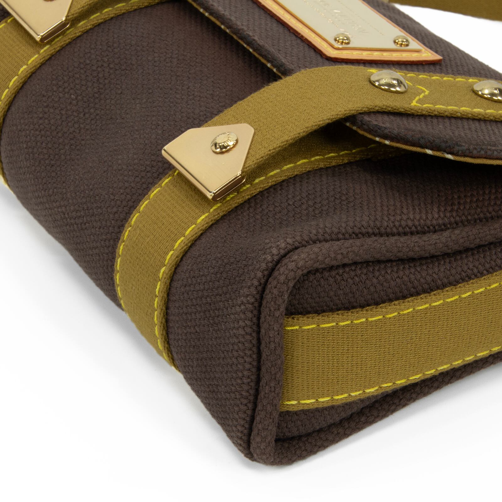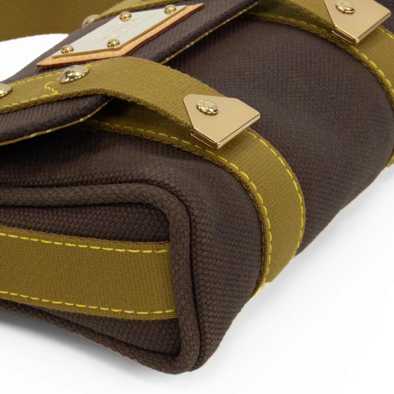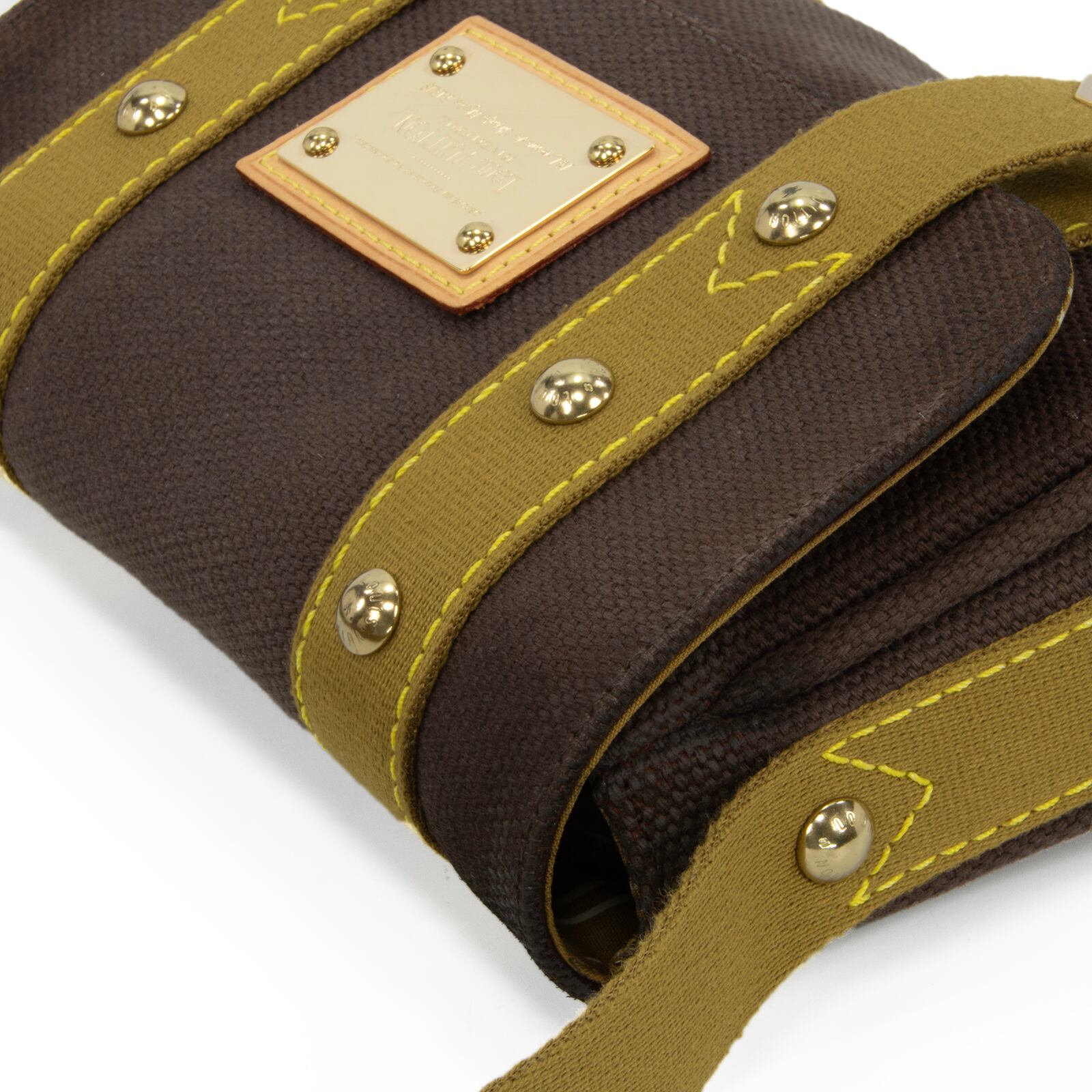 こちらは、キャンバス素材にゴールドのスタッズが都会的な輝きを放っている、ルイヴィトンのサックラバ・アンティグア・ショルダーバッグでございます。