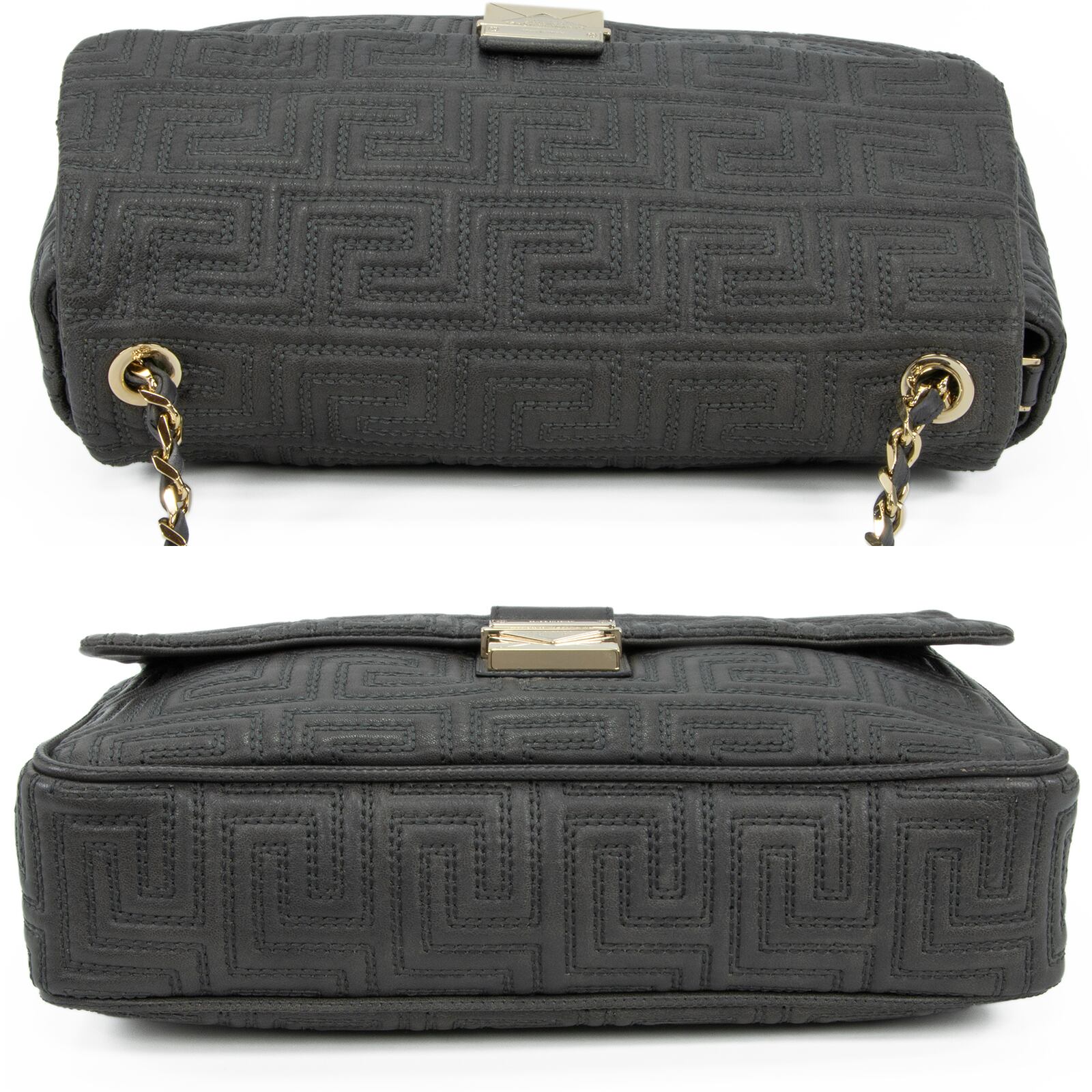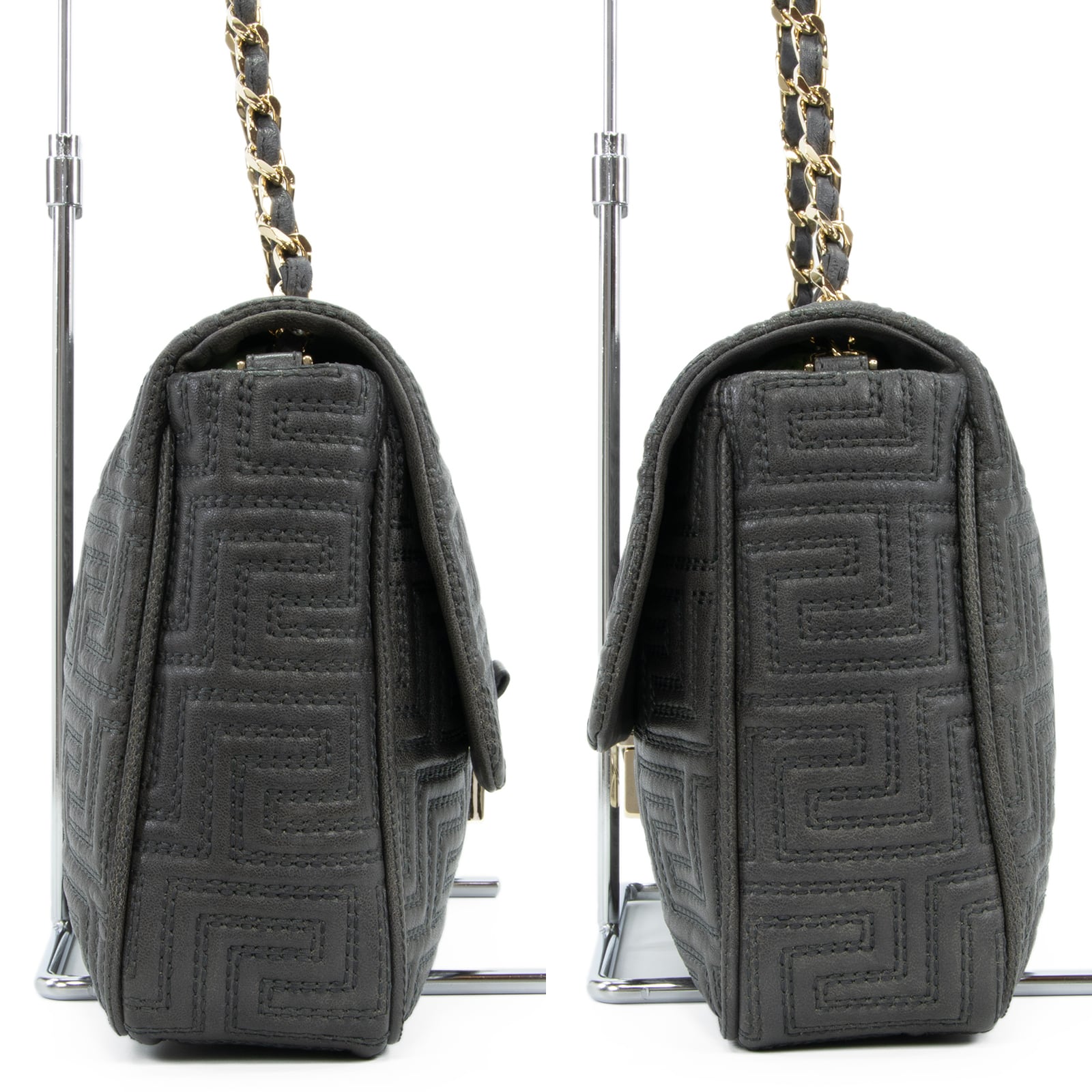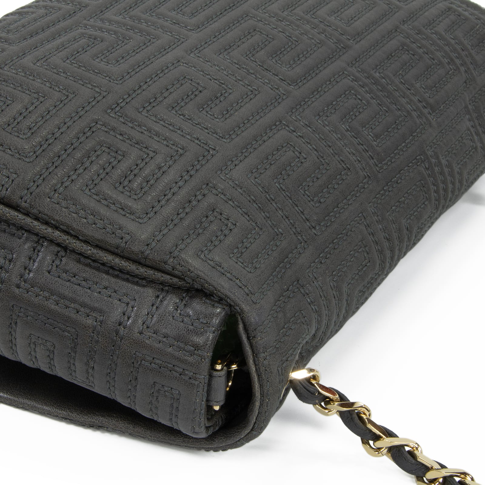 伝統的なグレカ柄をキルティングで表現した意匠に、ブランドの矜持を感じる逸品でございます。