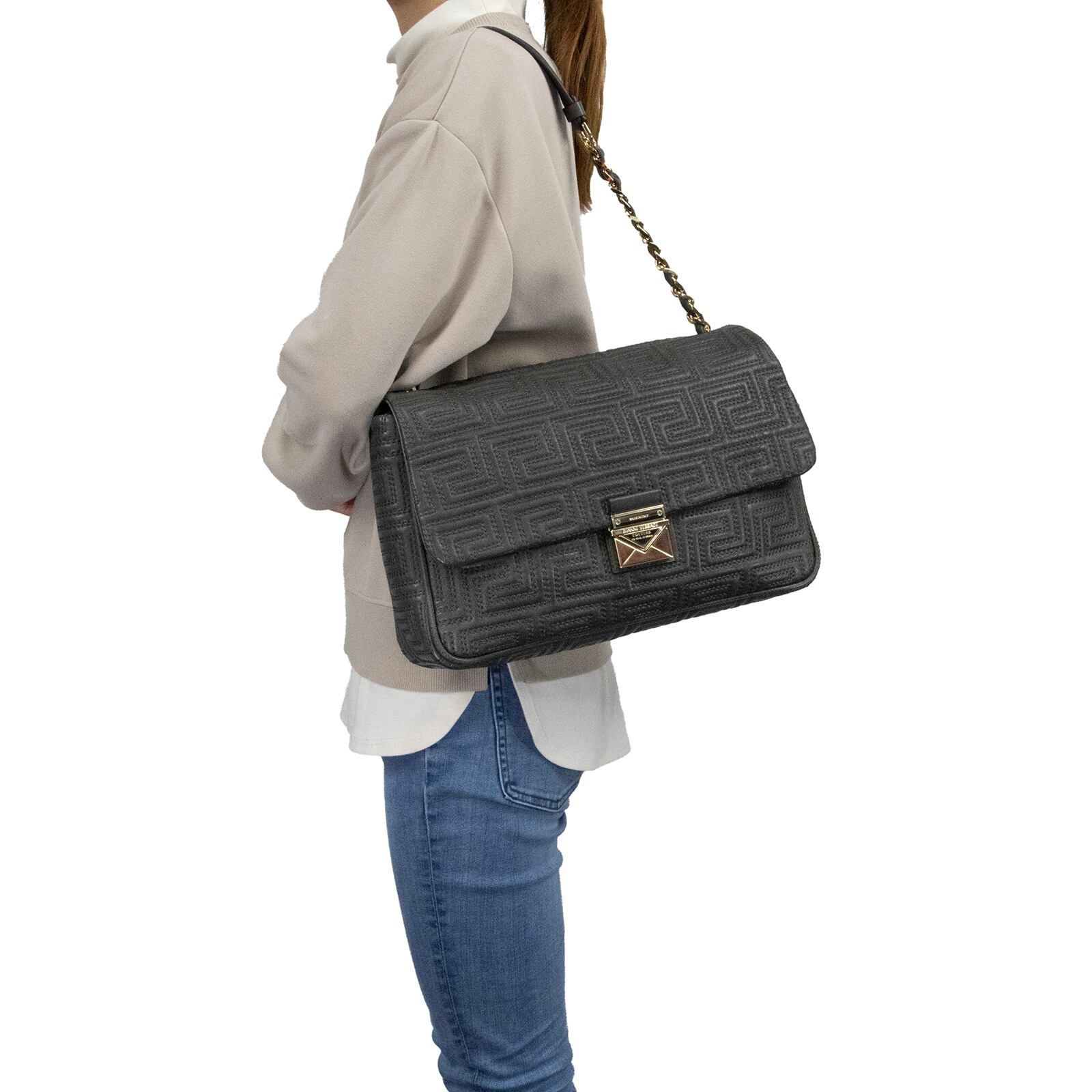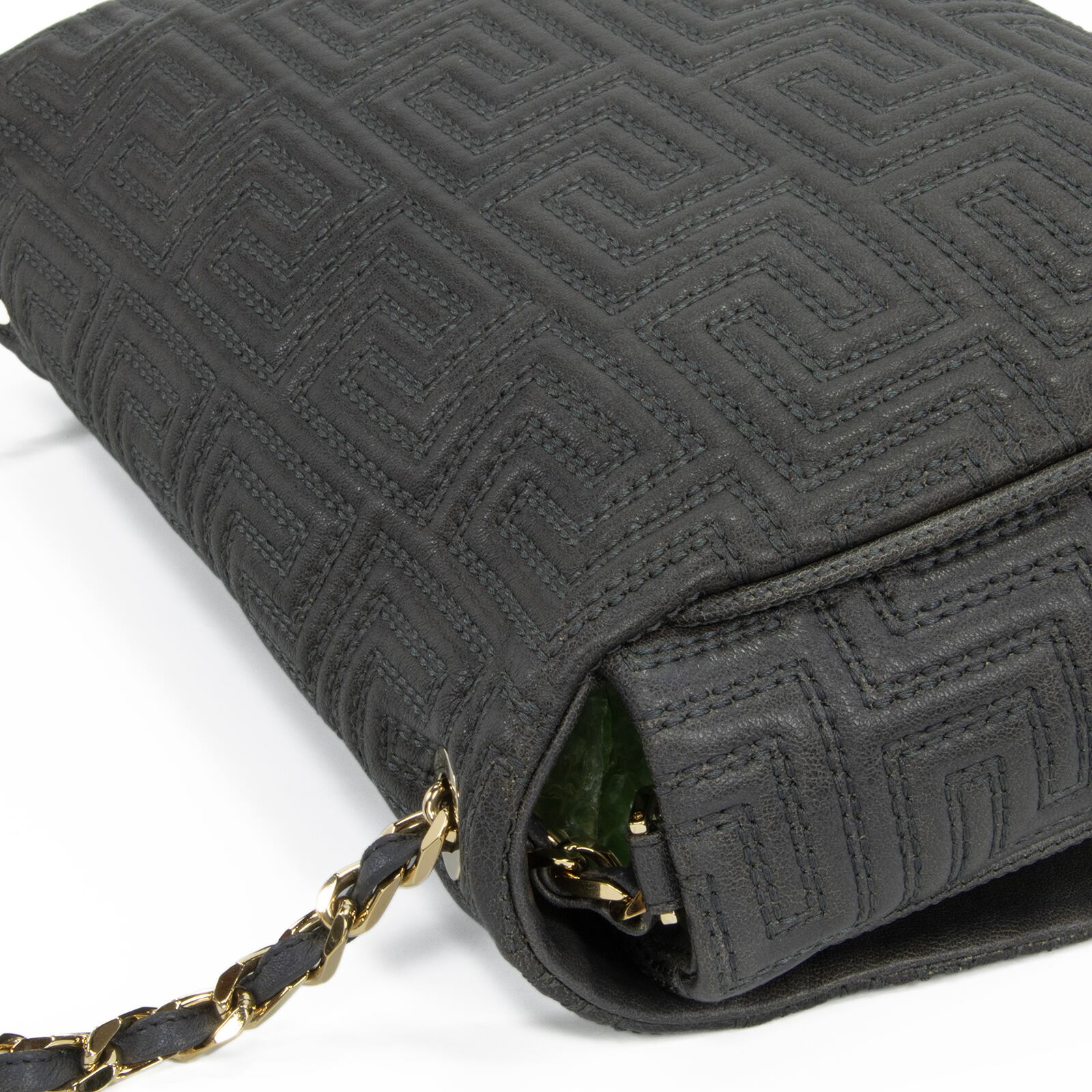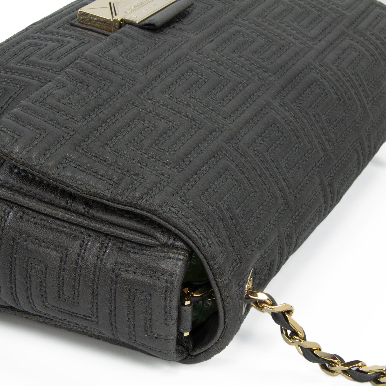 伝統的なグレカ柄をキルティングで表現した意匠に、ブランドの矜持を感じる逸品でございます。