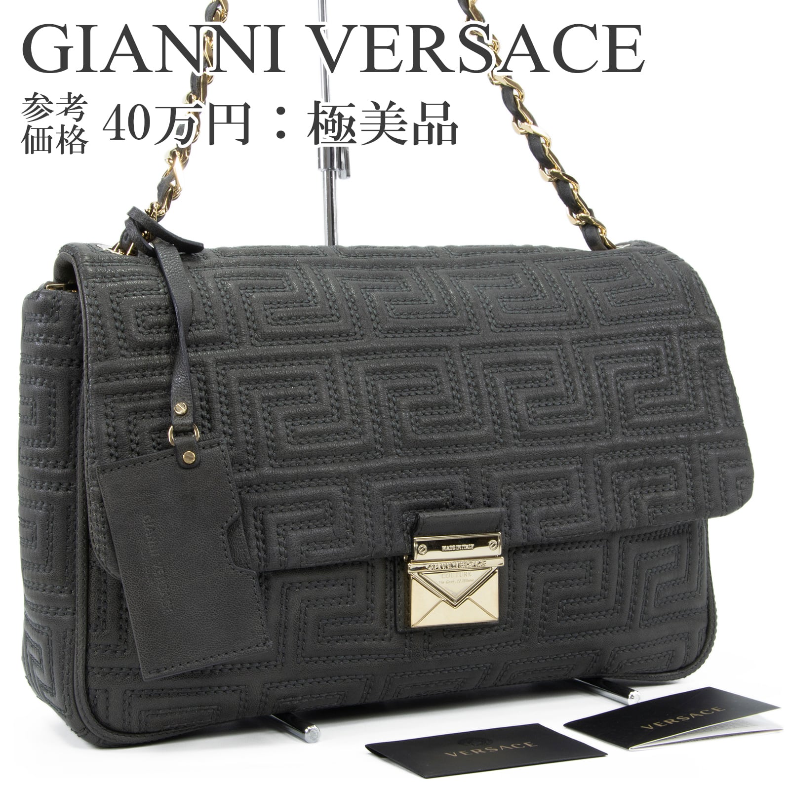 本物 送料無料 ジャンニヴェルサーチェ ショルダーバッグ レディース クチュール グレー レア グレカ柄 チェーン ロゴ 綺麗 鞄 バック I308