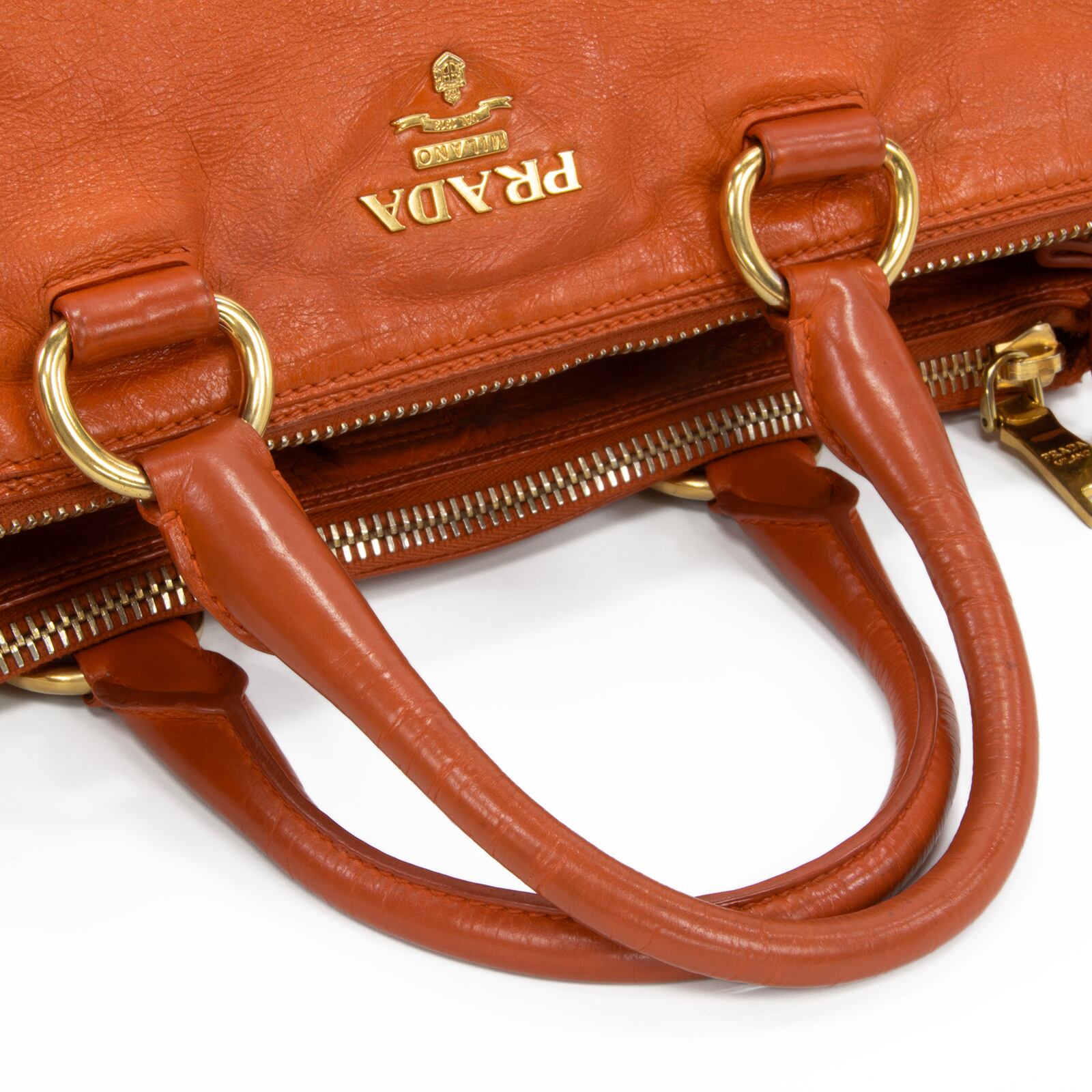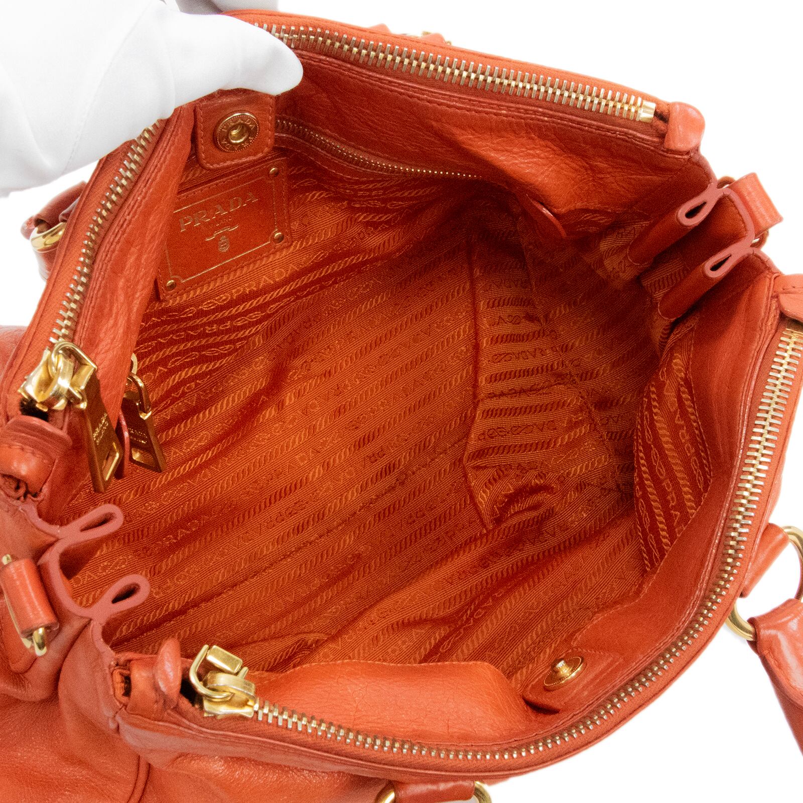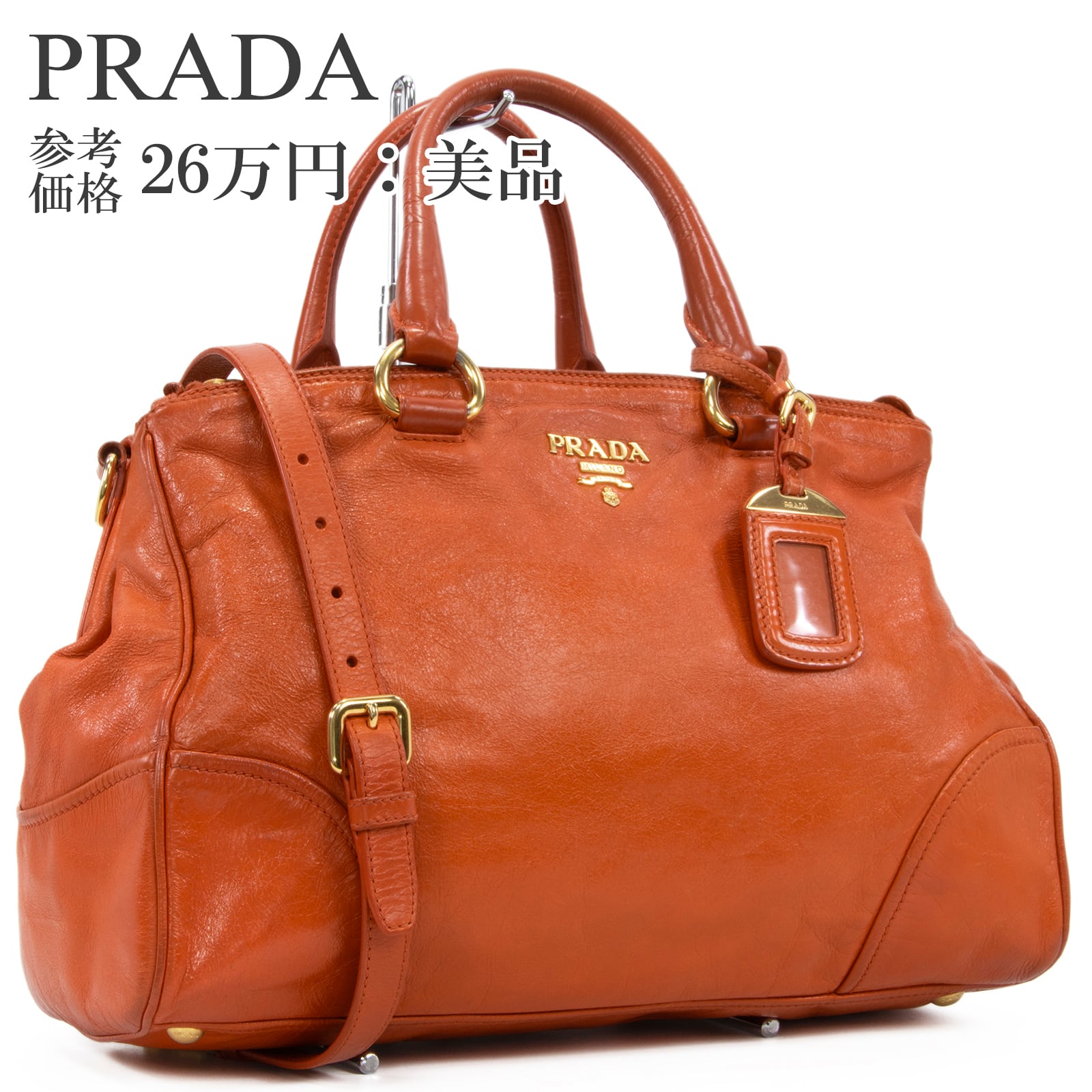 本物 送料無料 プラダ 2WAYショルダーバッグ ハンドバッグ レディース オレンジ レア 斜め掛け ロゴ マーク 革 レザー 綺麗 鞄 バック I310