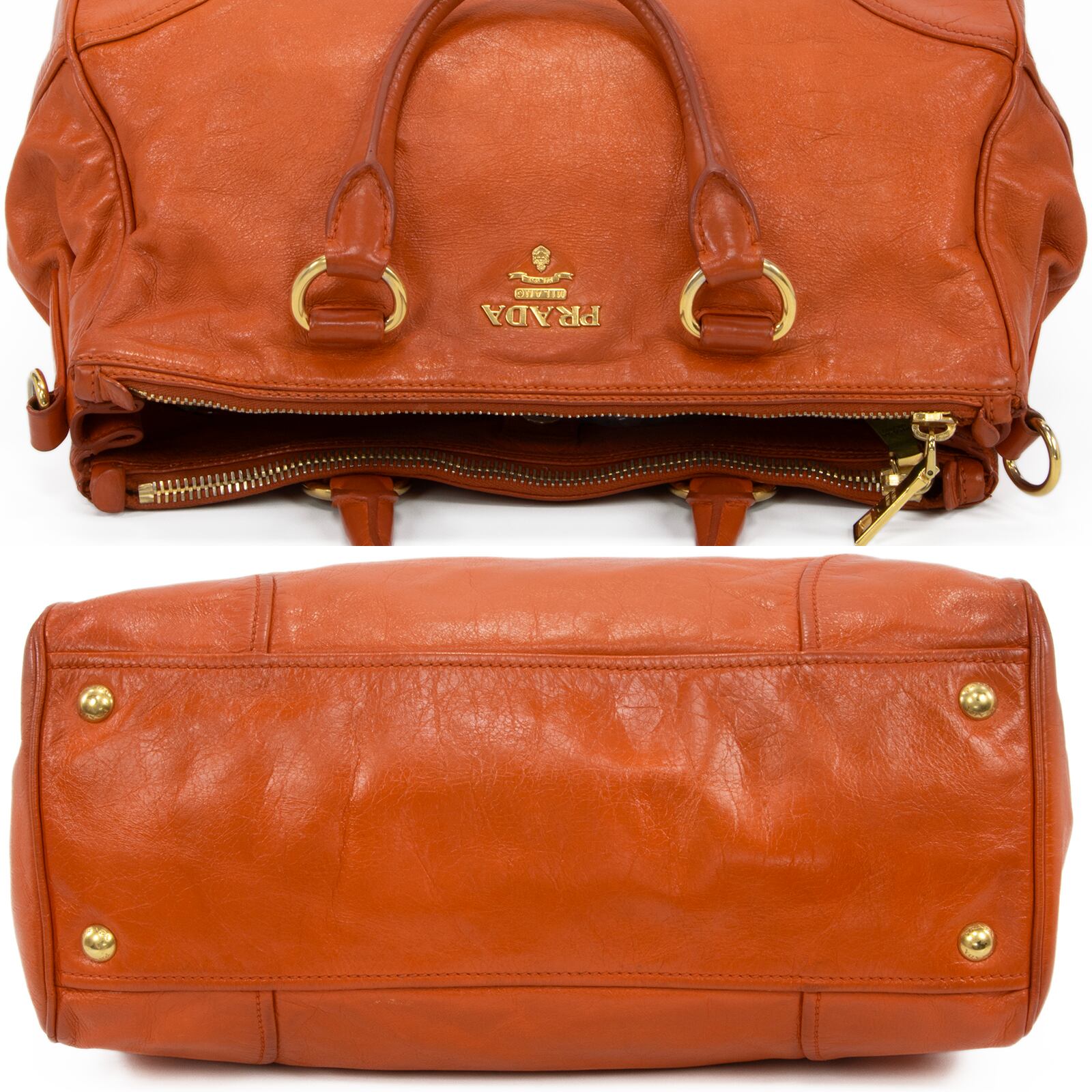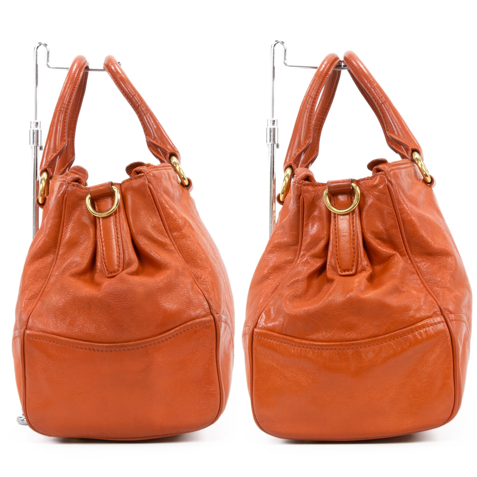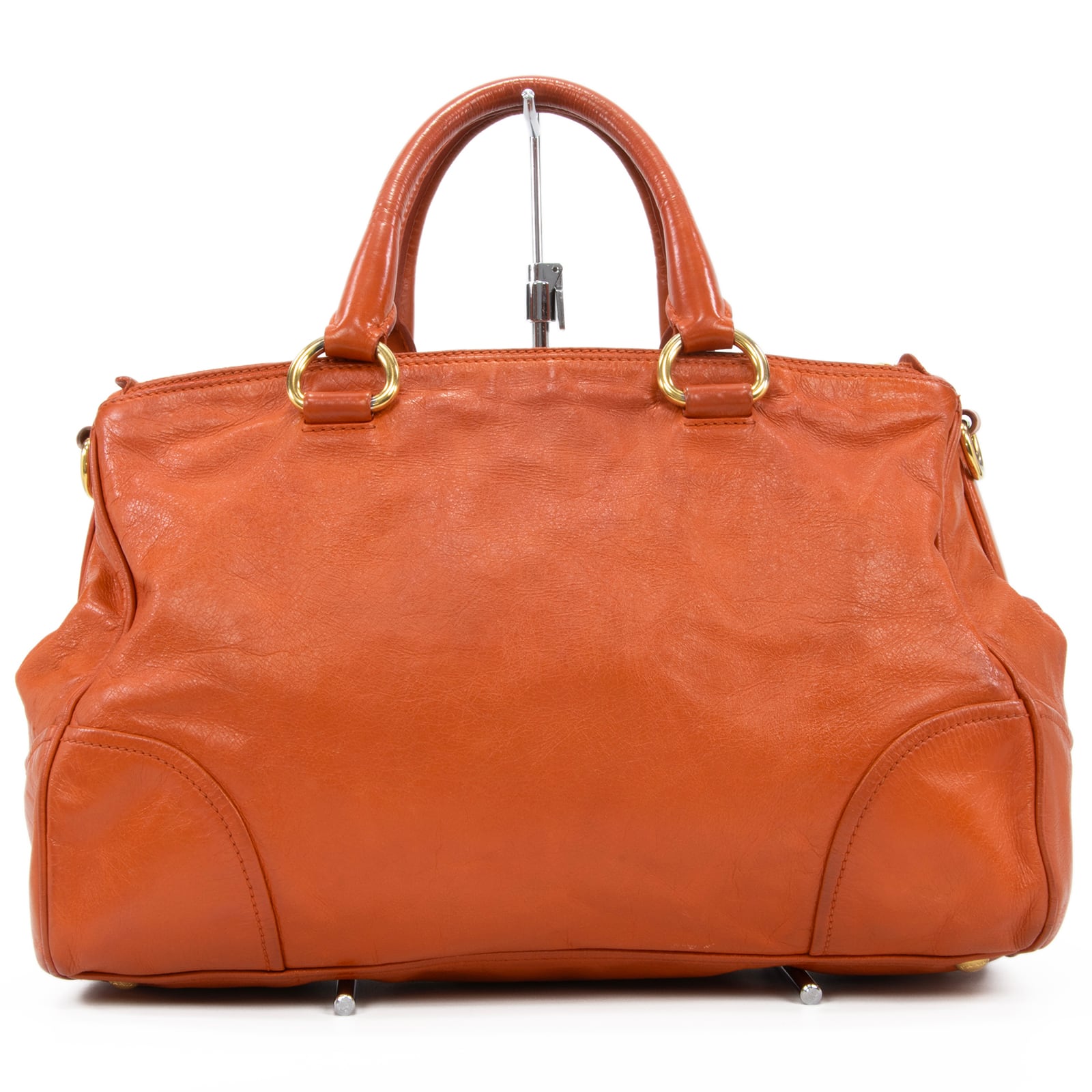 本物 送料無料 プラダ 2WAYショルダーバッグ ハンドバッグ レディース オレンジ レア 斜め掛け ロゴ マーク 革 レザー 綺麗 鞄 バック I310