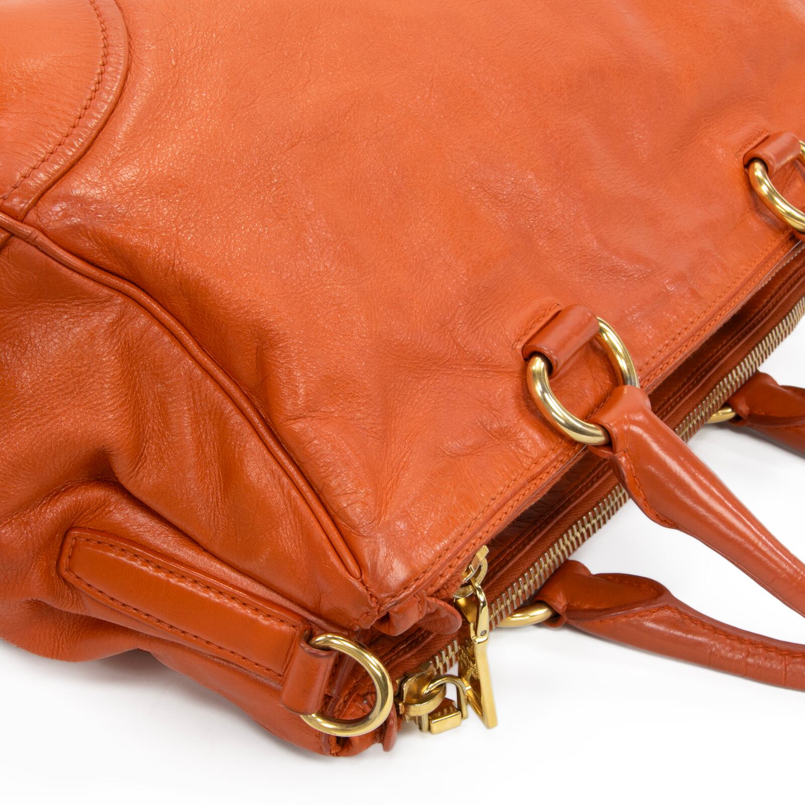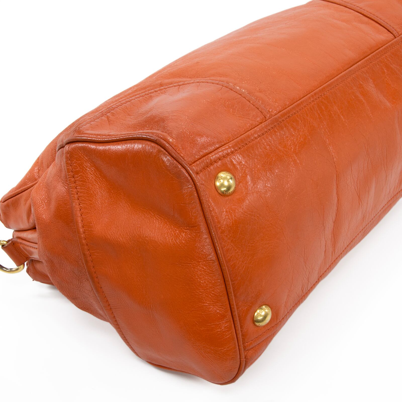 こちらは、鮮やかなオレンジカラーが周囲の視線を惹きつける、プラダのヴィッテロ シャイン・2WAYショルダーバッグでございます。