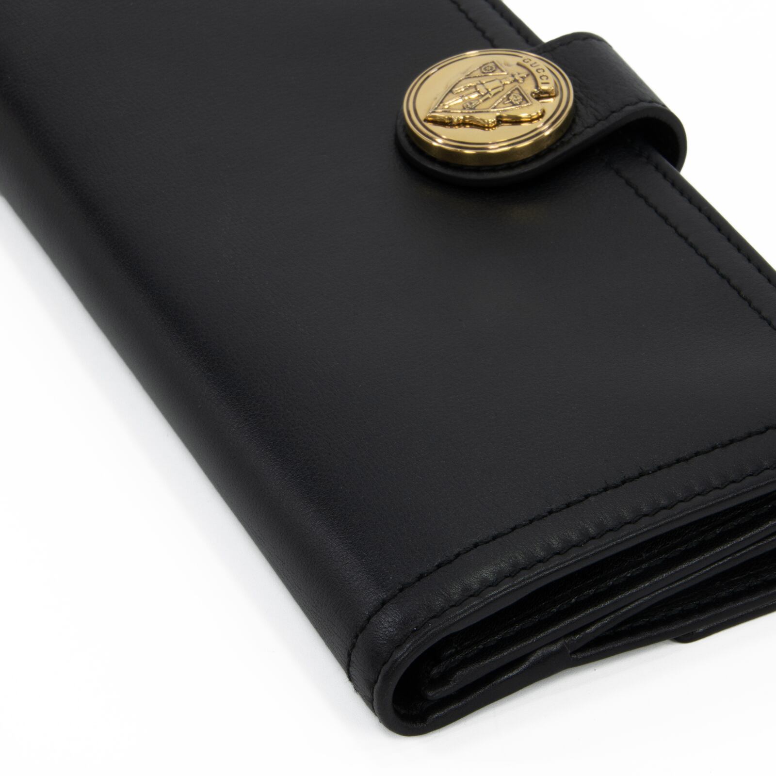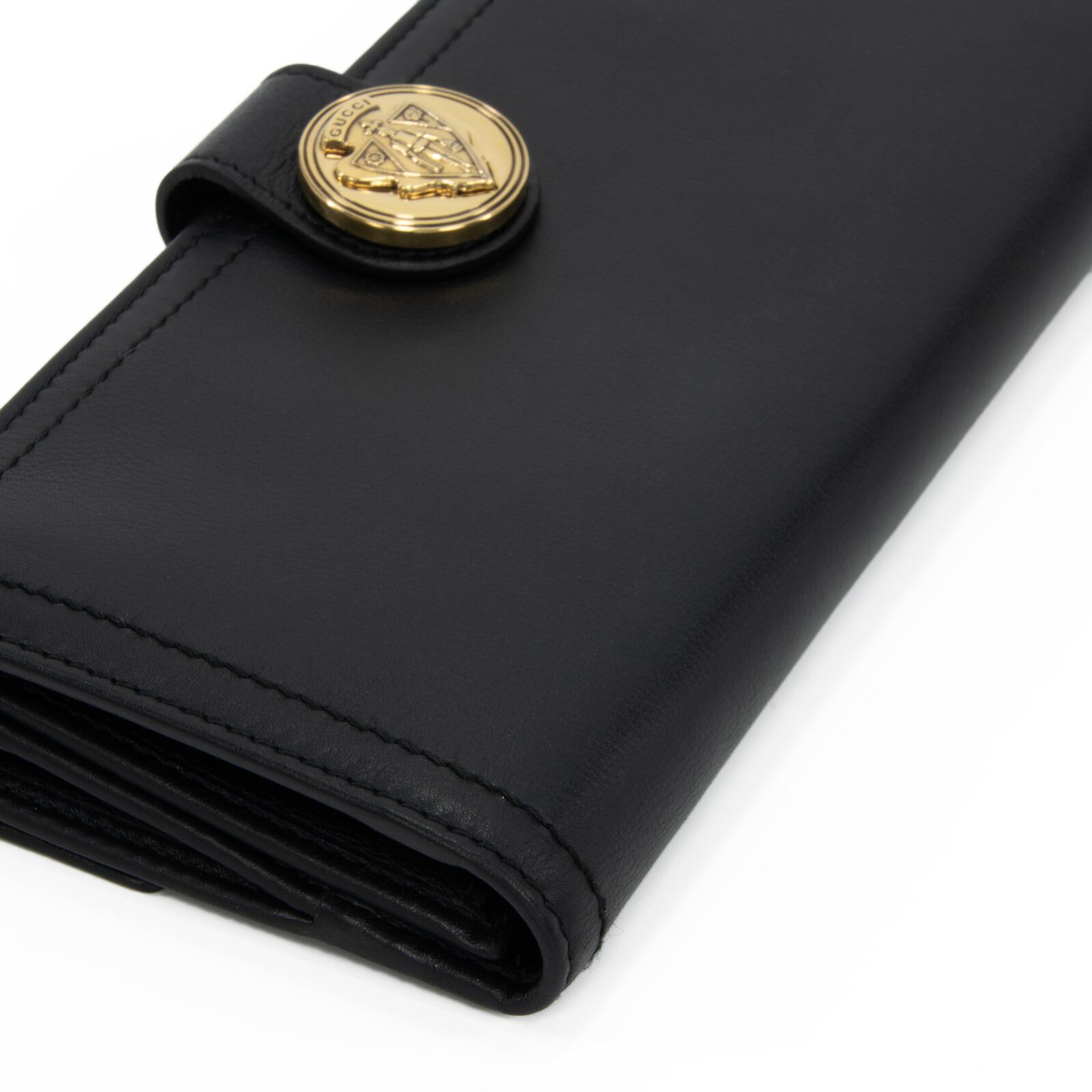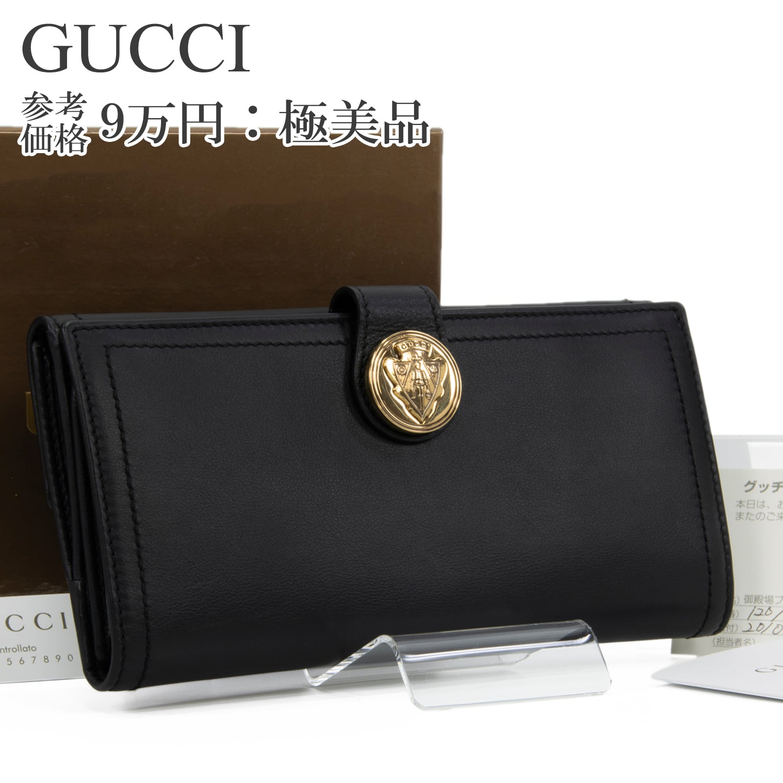 本物 送料無料 グッチ 長財布 二つ折り財布 メンズ レディース ヒステリア 黒 ブラック 珍しい 紋章 クレスト ロゴ 本革 レザー 綺麗 C249