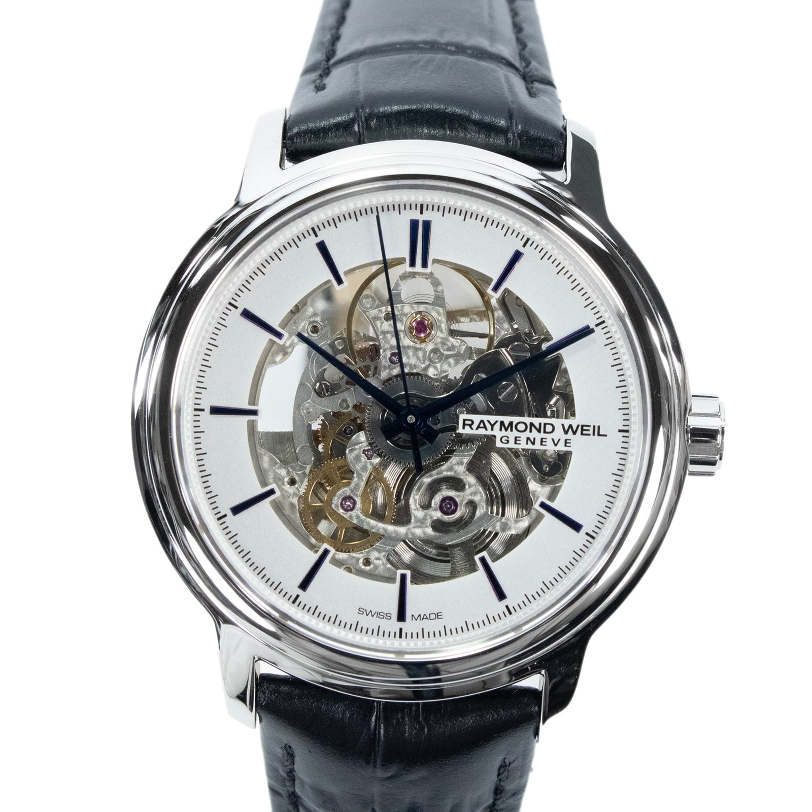 こちらは、芸術的なスケルトンデザインが魅了する、レイモンドウェイルのマエストロ・腕時計でございます。