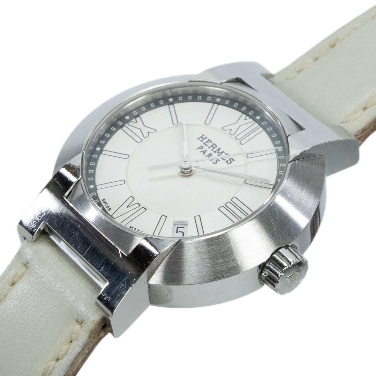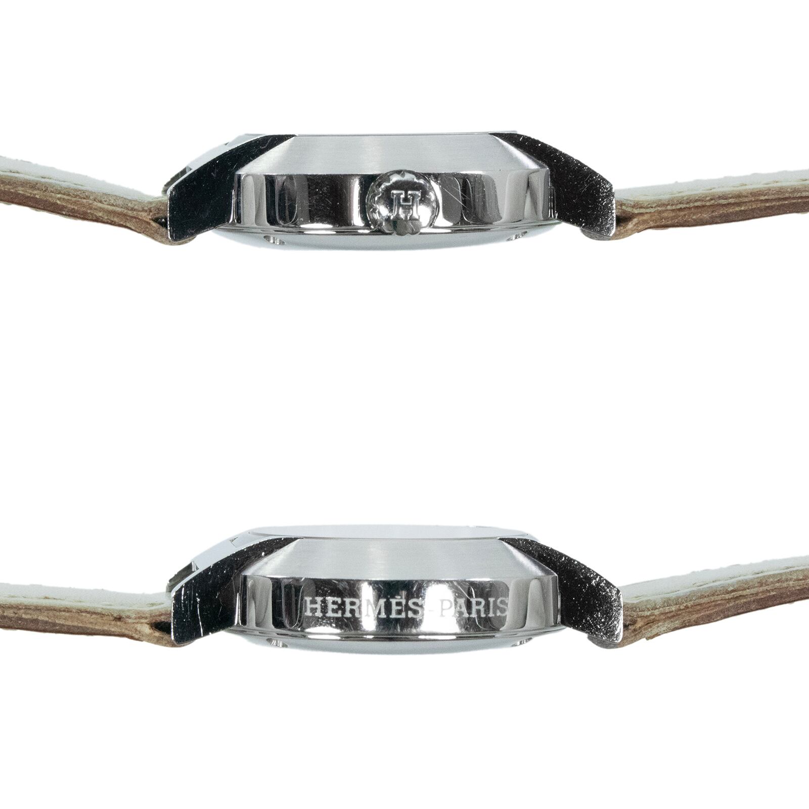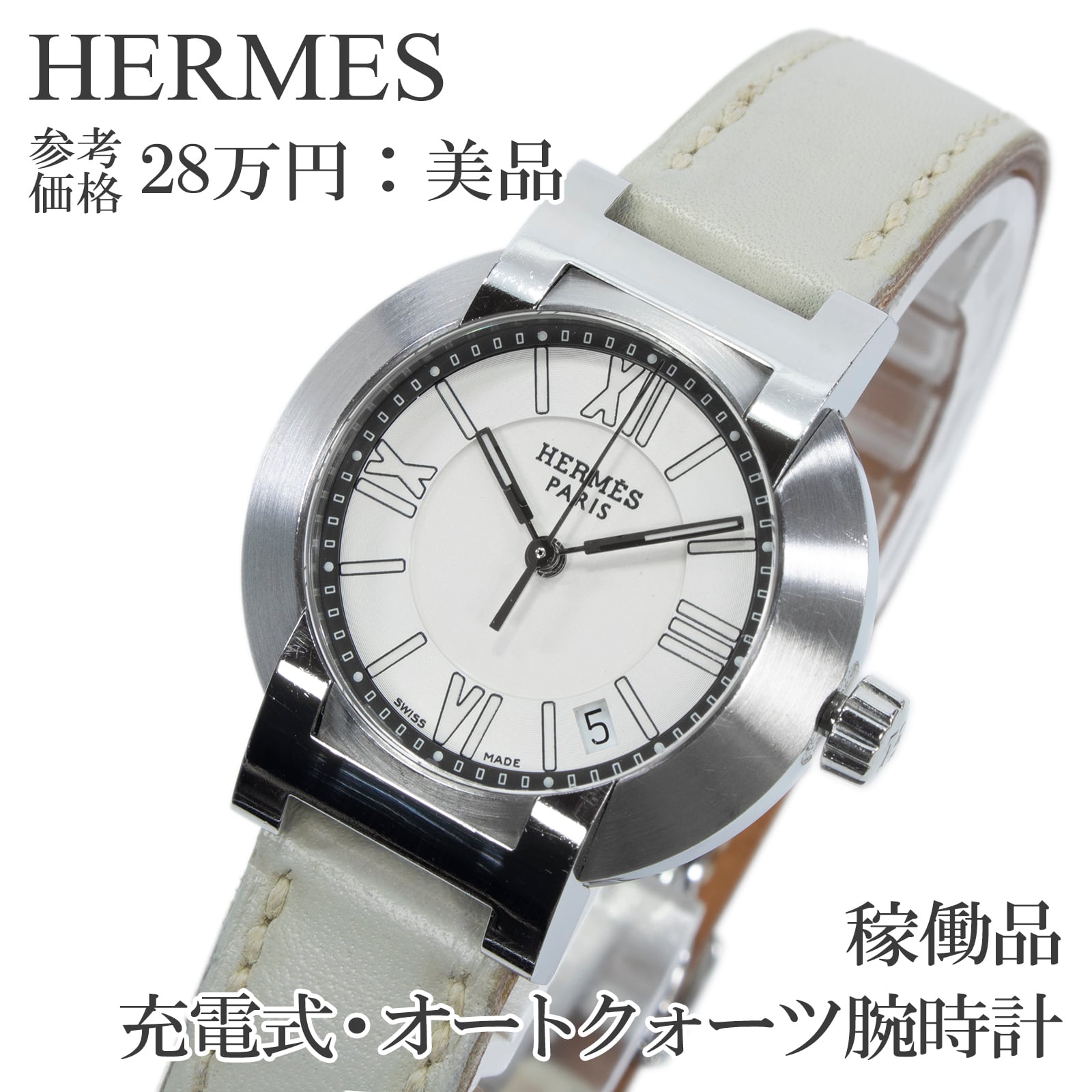 稼働品 送料無料 エルメス 腕時計 オートクォーツ レディース ノマード N01.210 白 ホワイト シルバー 小さめ H文字ラグ ロゴ 綺麗 Q222