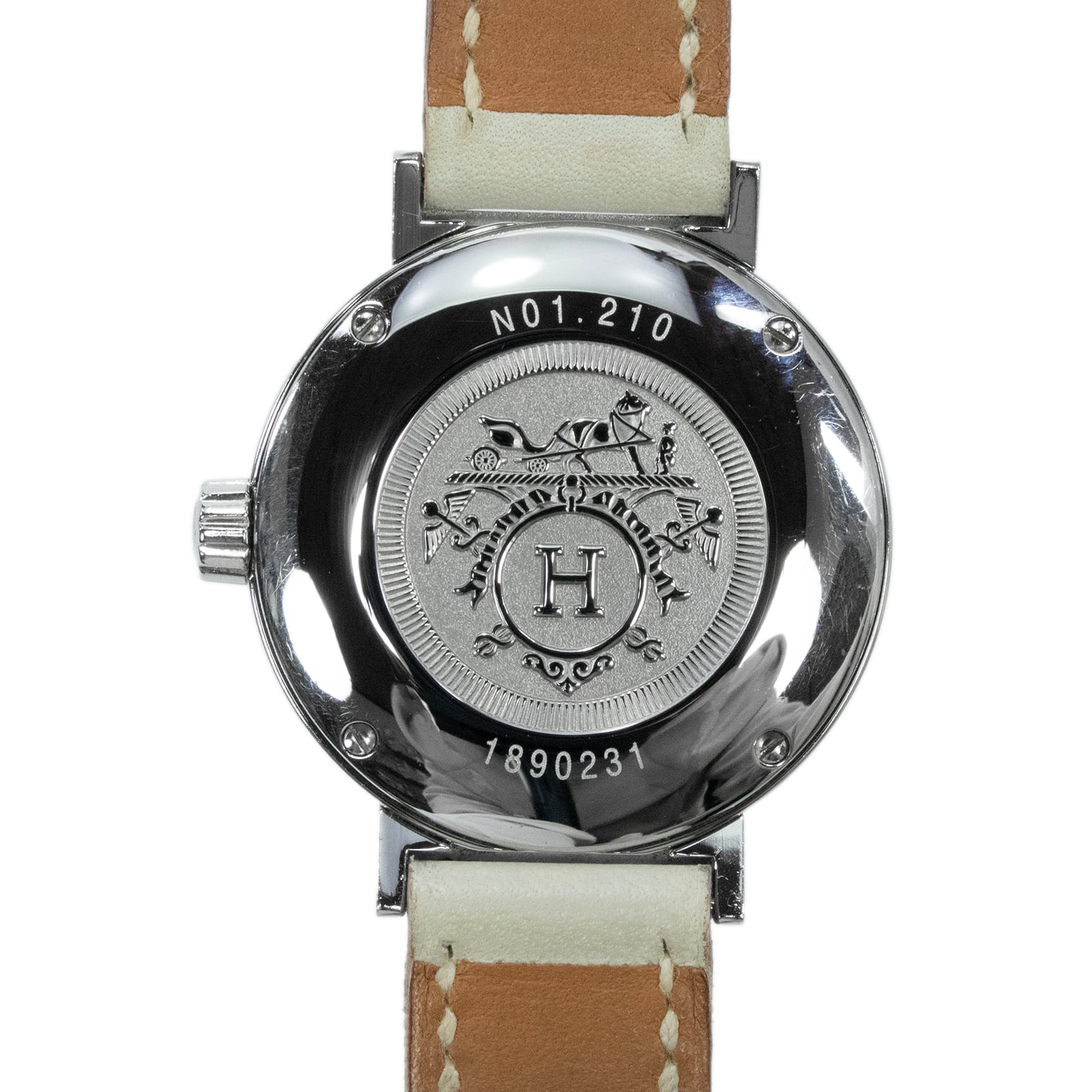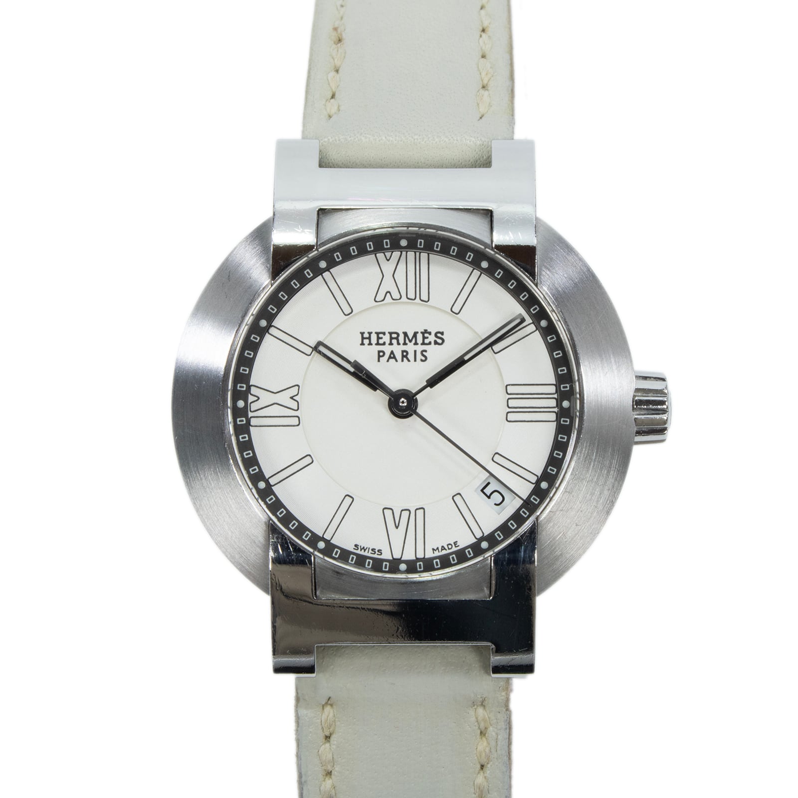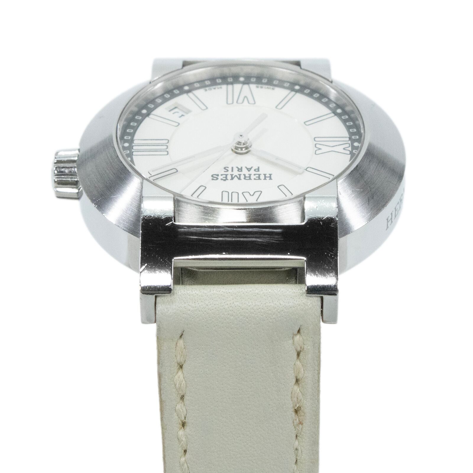 稼働品 送料無料 エルメス 腕時計 オートクォーツ レディース ノマード N01.210 白 ホワイト シルバー 小さめ H文字ラグ ロゴ 綺麗 Q222