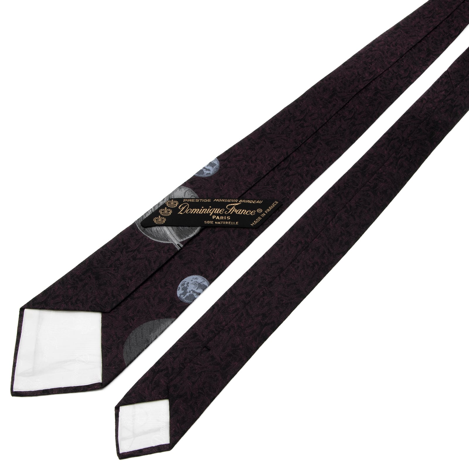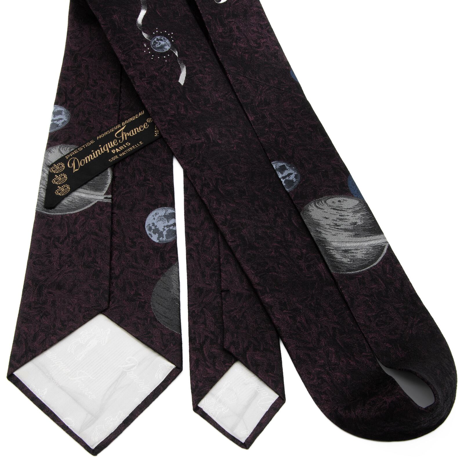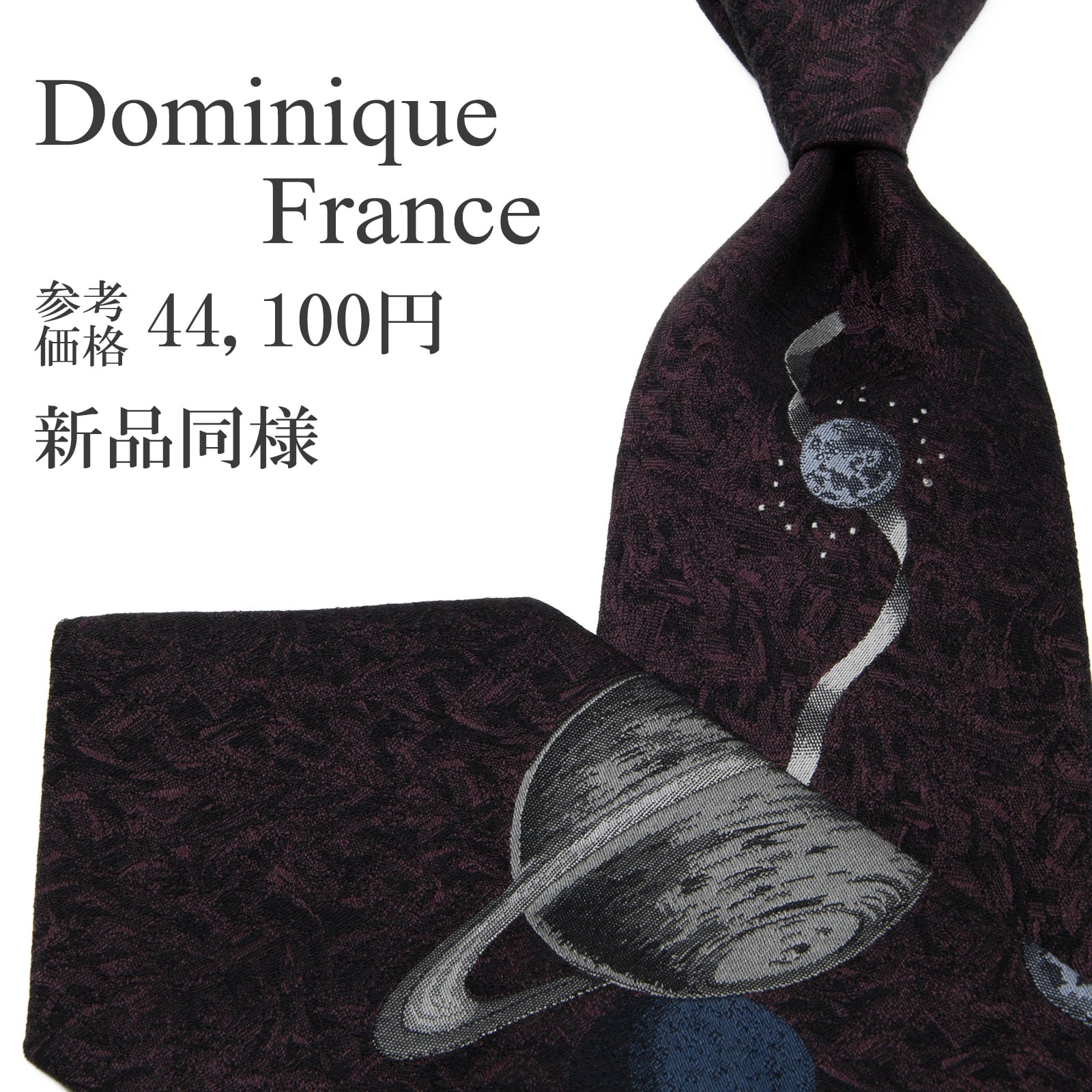 新品同様 送料無料 ドミニックフランス ネクタイ レギュラータイ ジャガード 紫 黒 ブラック グレー 水色 クラウン 惑星 太陽 宇宙 P599