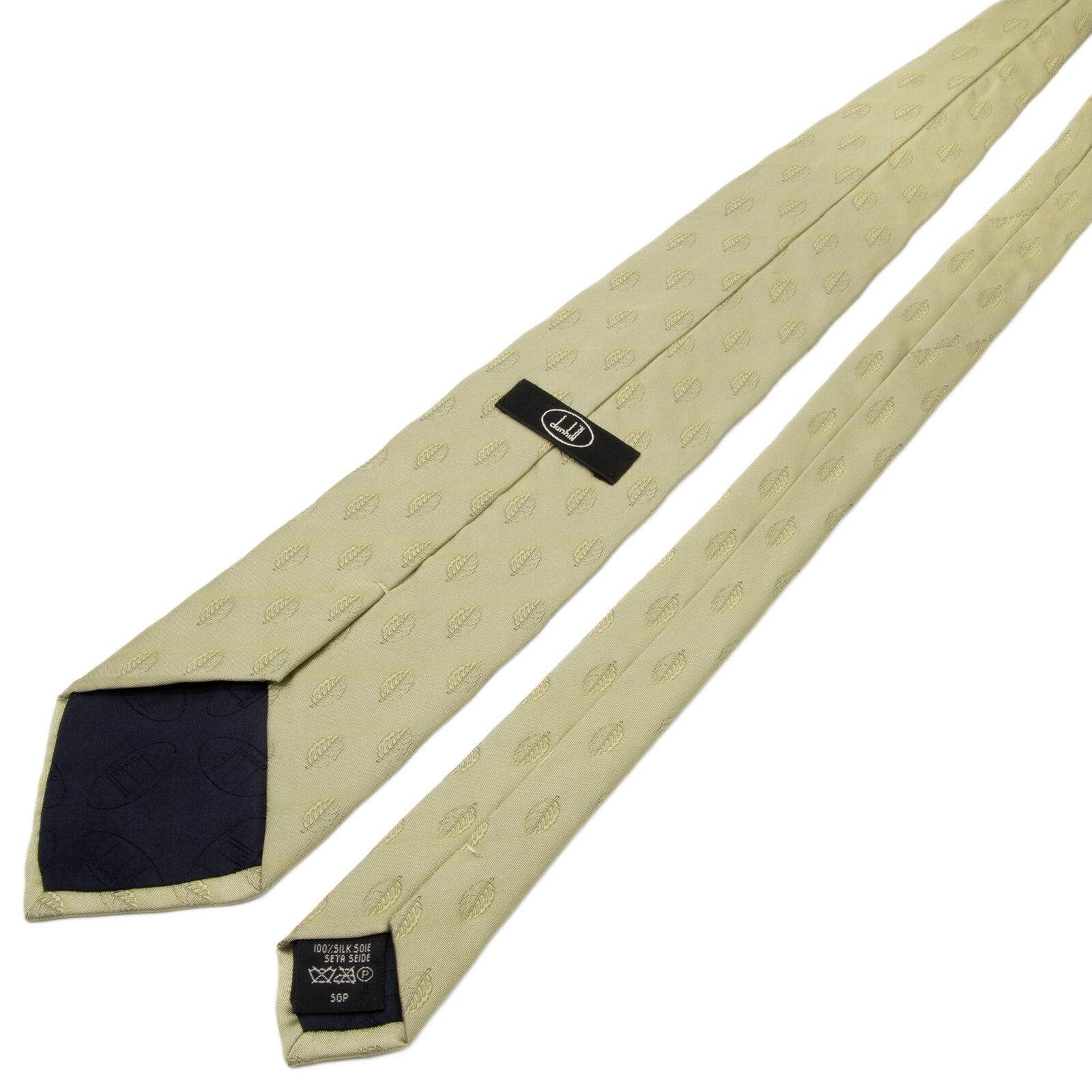 送料無料 ダンヒル ネクタイ ジャガード 金色 シャンパンゴールド 小紋 総柄 Y2K 00s ロゴ マーク 葉っぱ リーフ ハイブランド 綺麗 P779