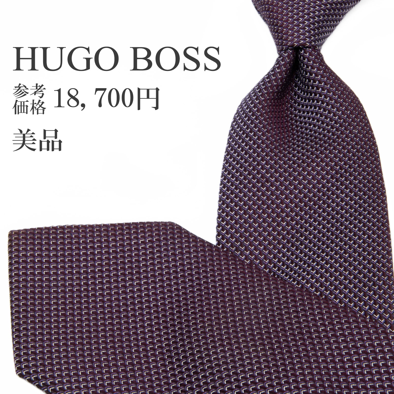 送料無料 ヒューゴボス ネクタイ レギュラータイ ジャガード ワインレッド 紫 パープル シルバー ソリッド 無地 光沢 シンプル 綺麗 P787